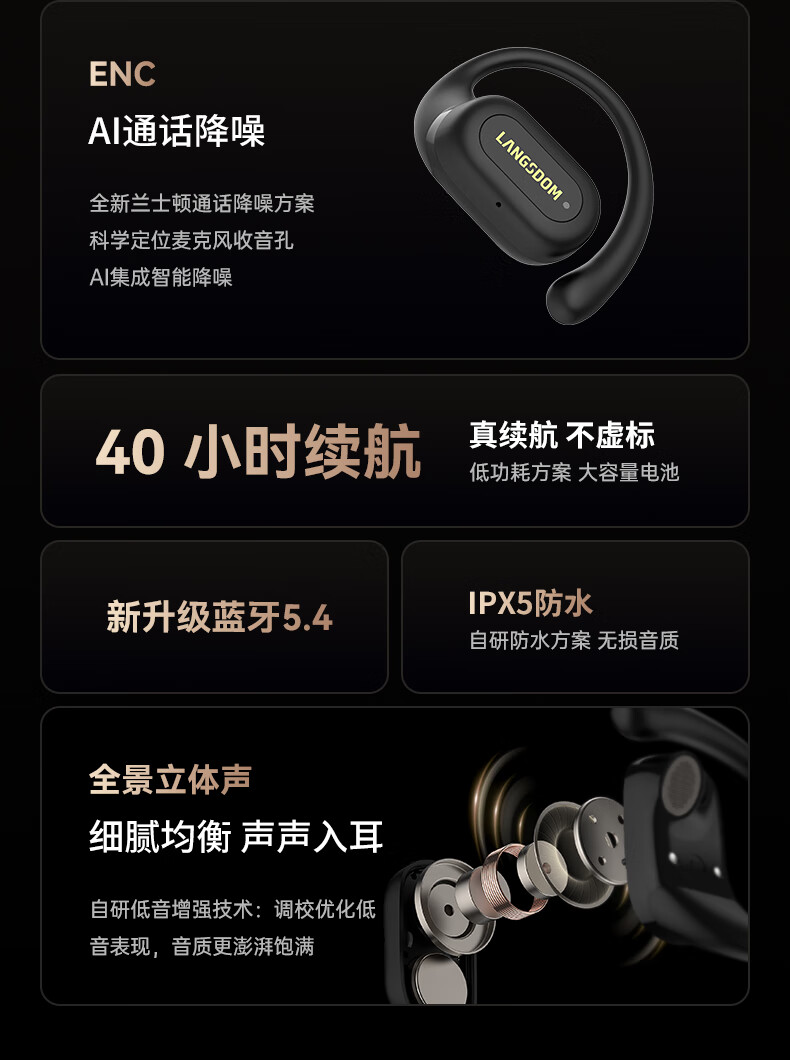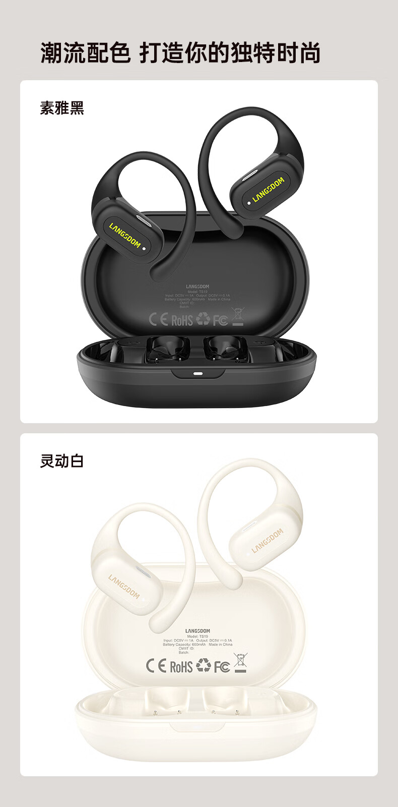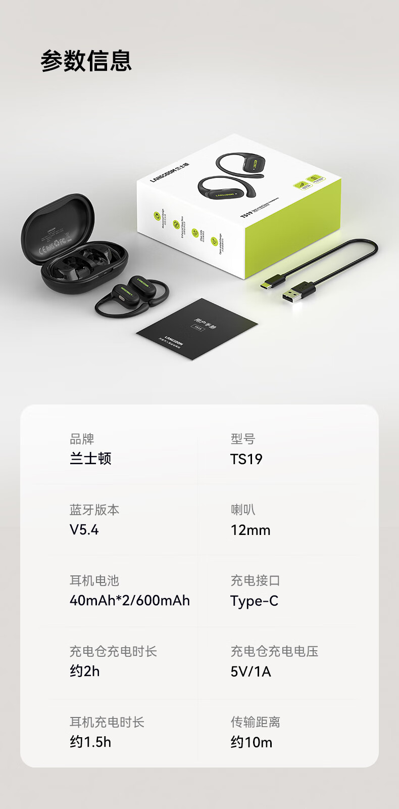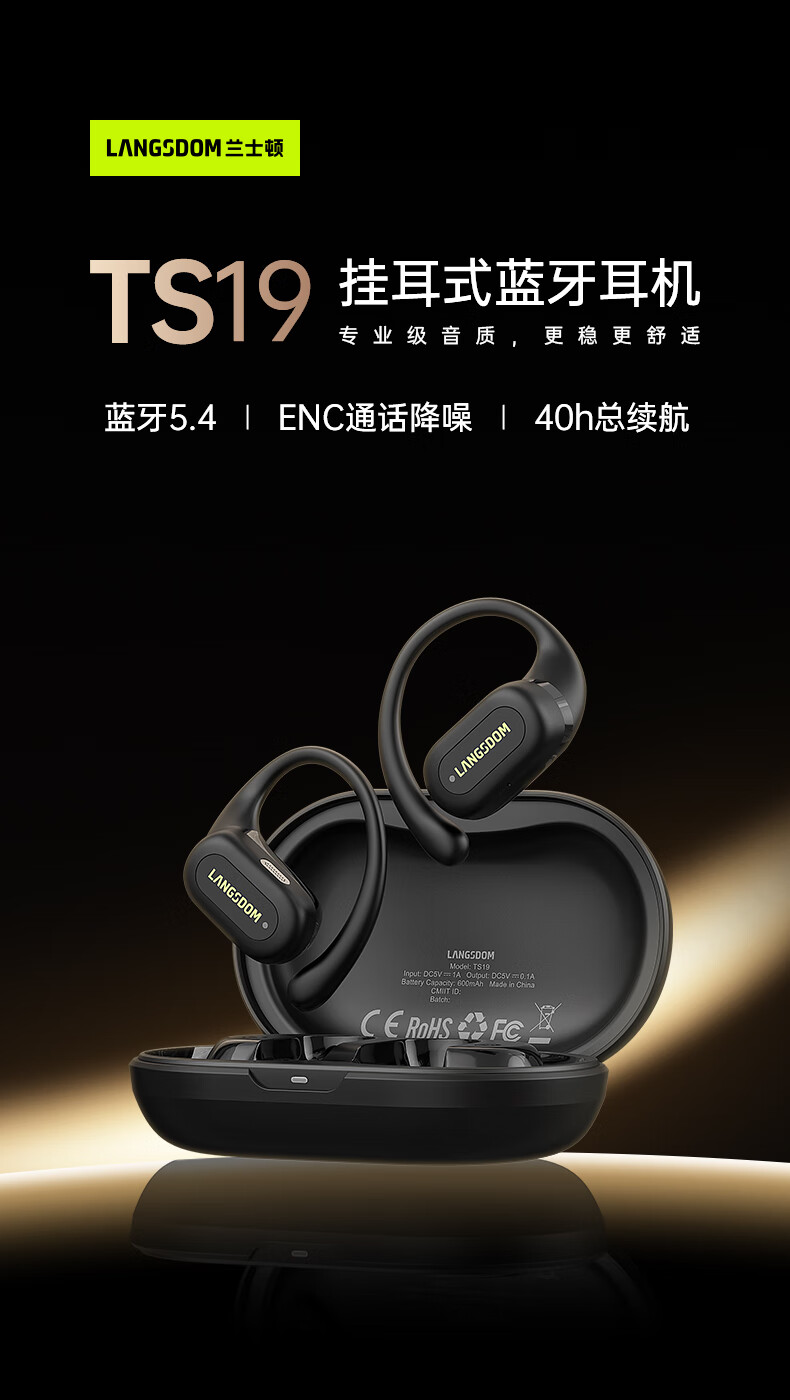 【小家电】兰士顿蓝牙耳机挂耳式骨传导概念开放不入耳通话降噪运动跑步骑行TS19 HF