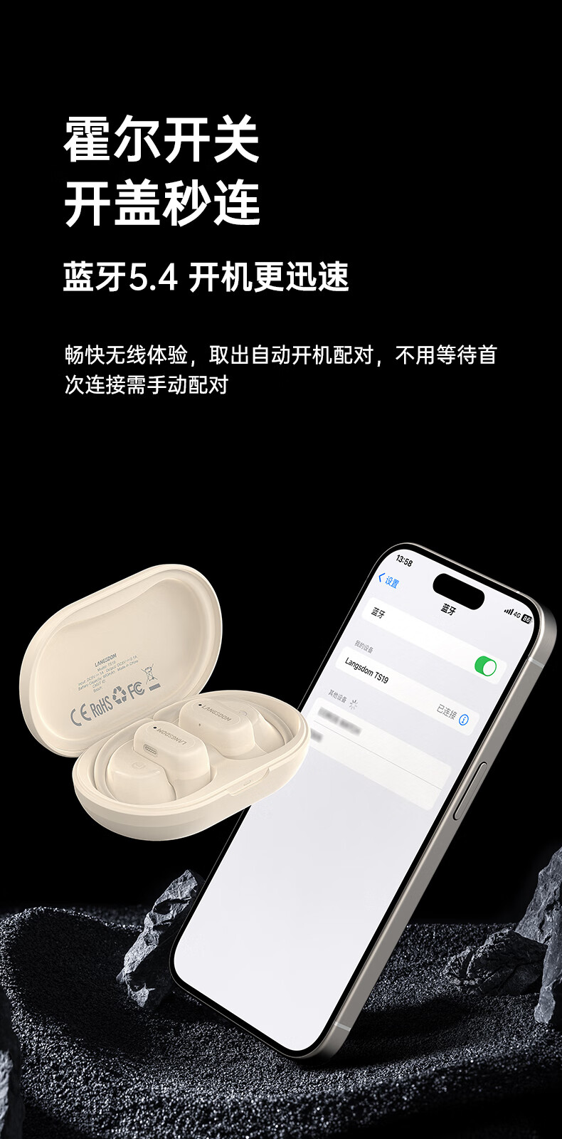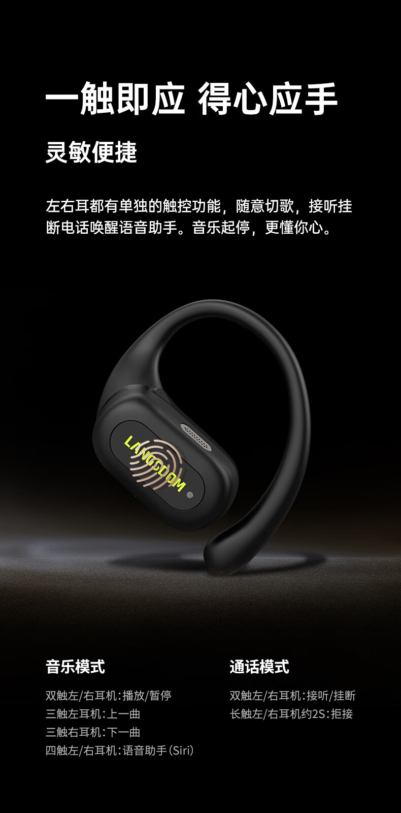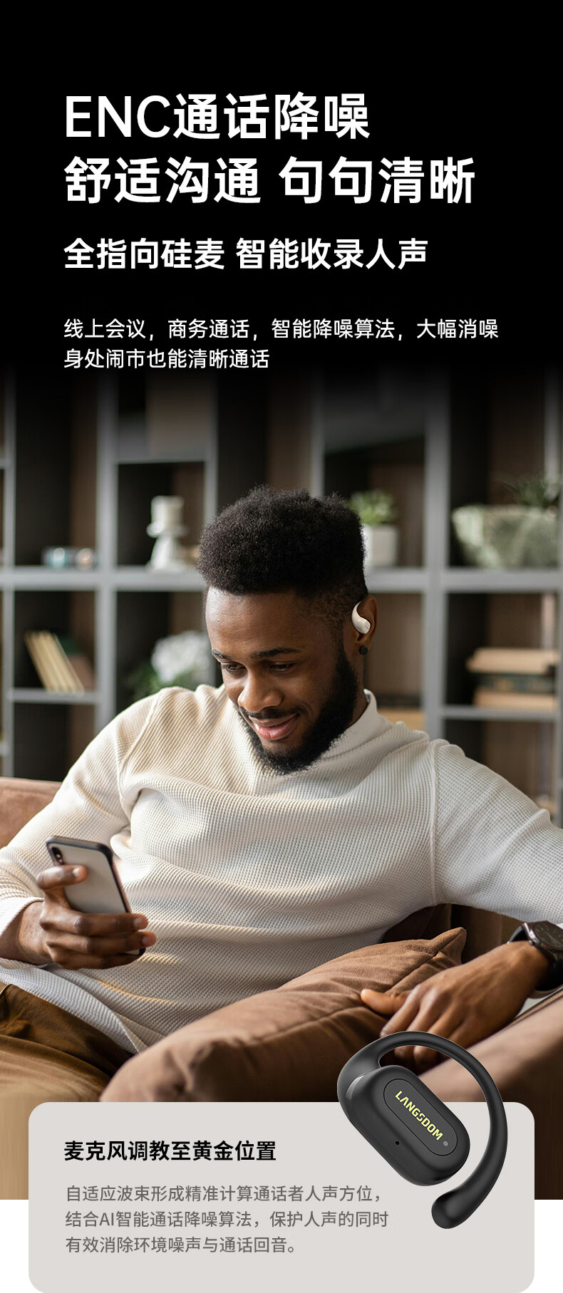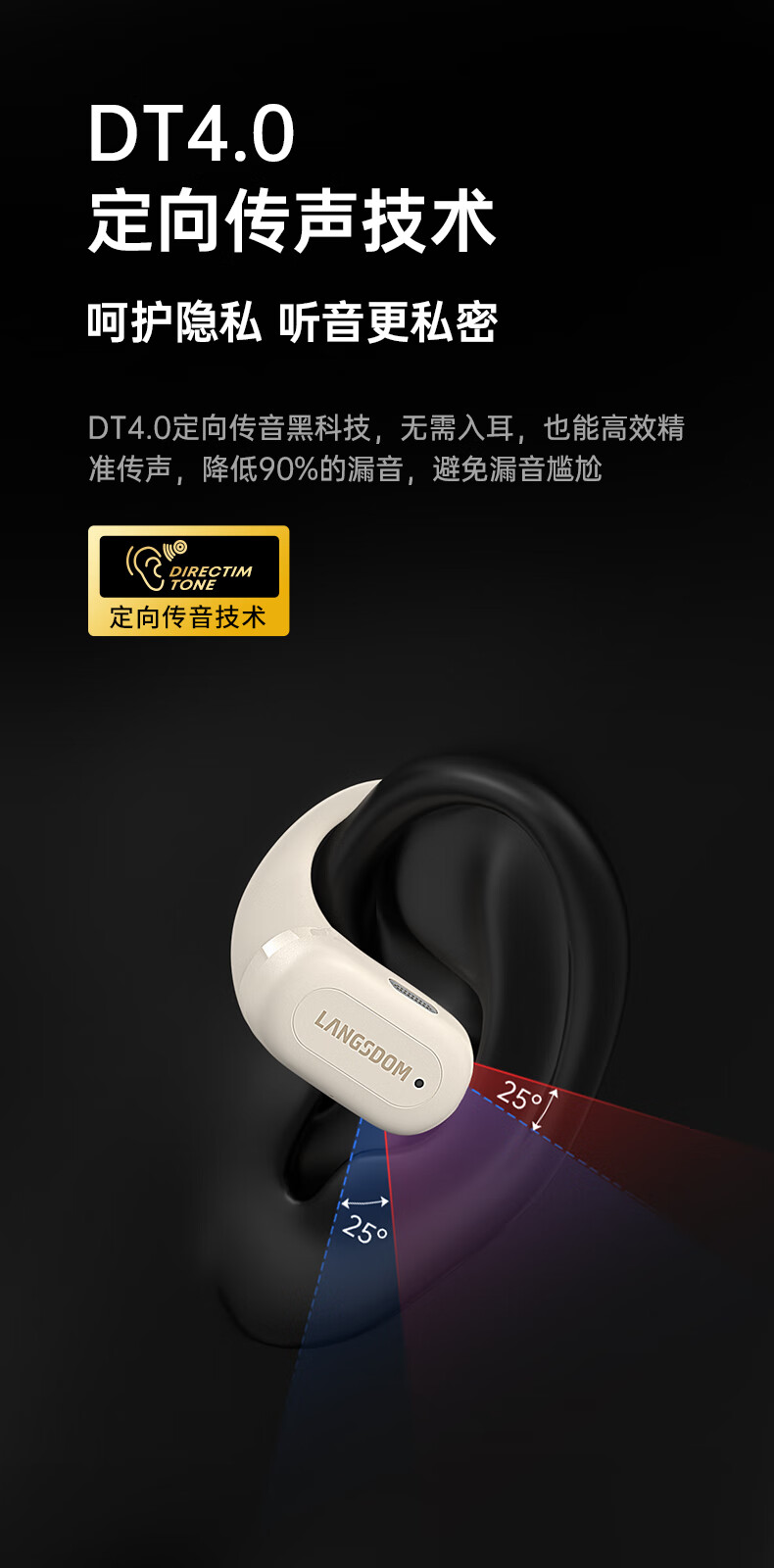 【小家电】兰士顿蓝牙耳机挂耳式骨传导概念开放不入耳通话降噪运动跑步骑行TS19 HF