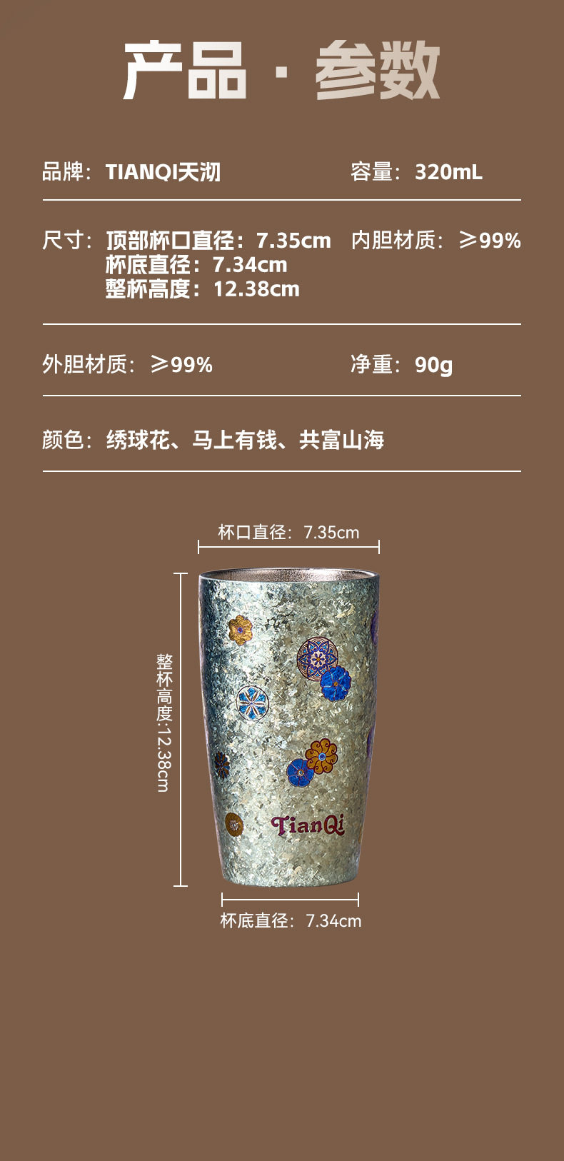 【4月优享预售】天沏Ultra系列纯钛马克杯-马上有钱钛杯水杯320ml
