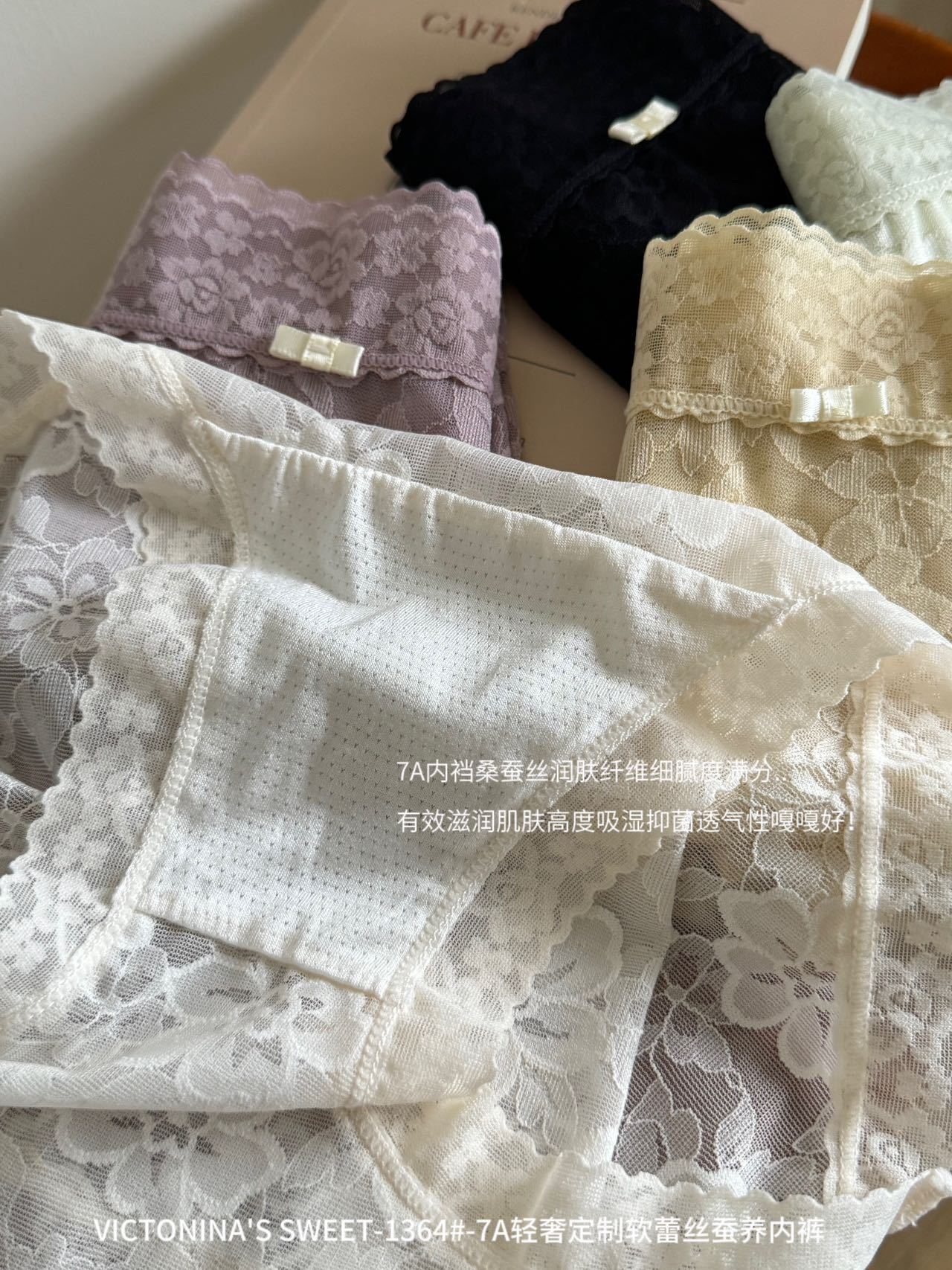 颜值控必囤!新品上新7A轻奢软蕾丝蚕养内裤女 抗菌底裆蚕丝养护 中腰透气性感女士内裤三角裤礼盒装