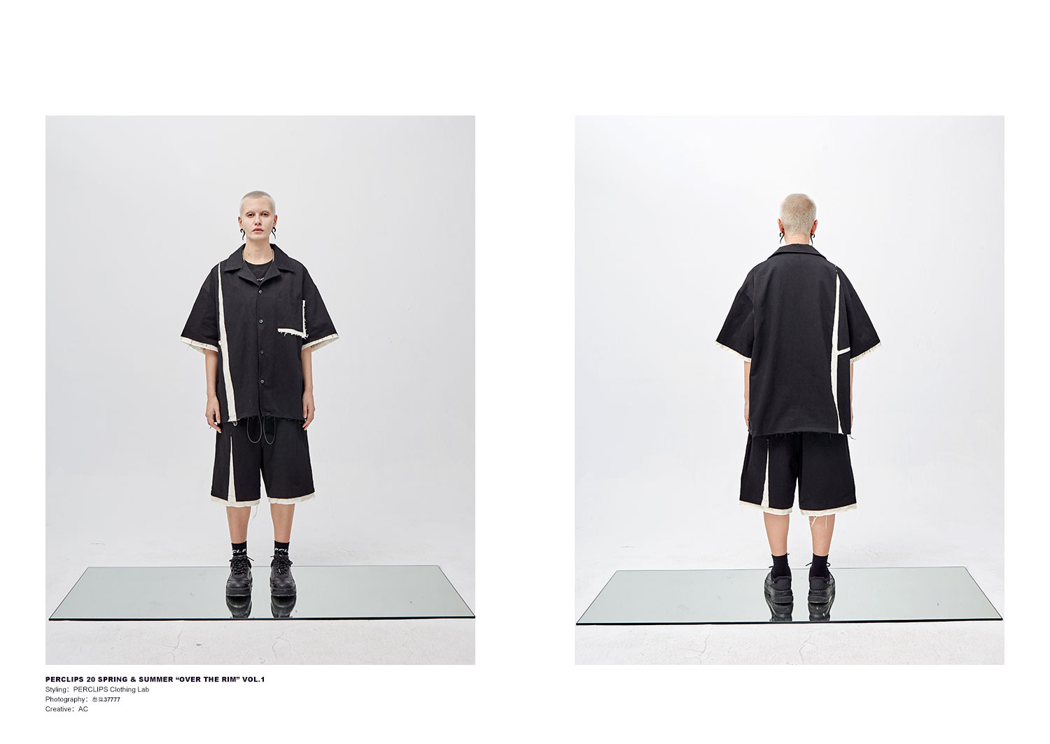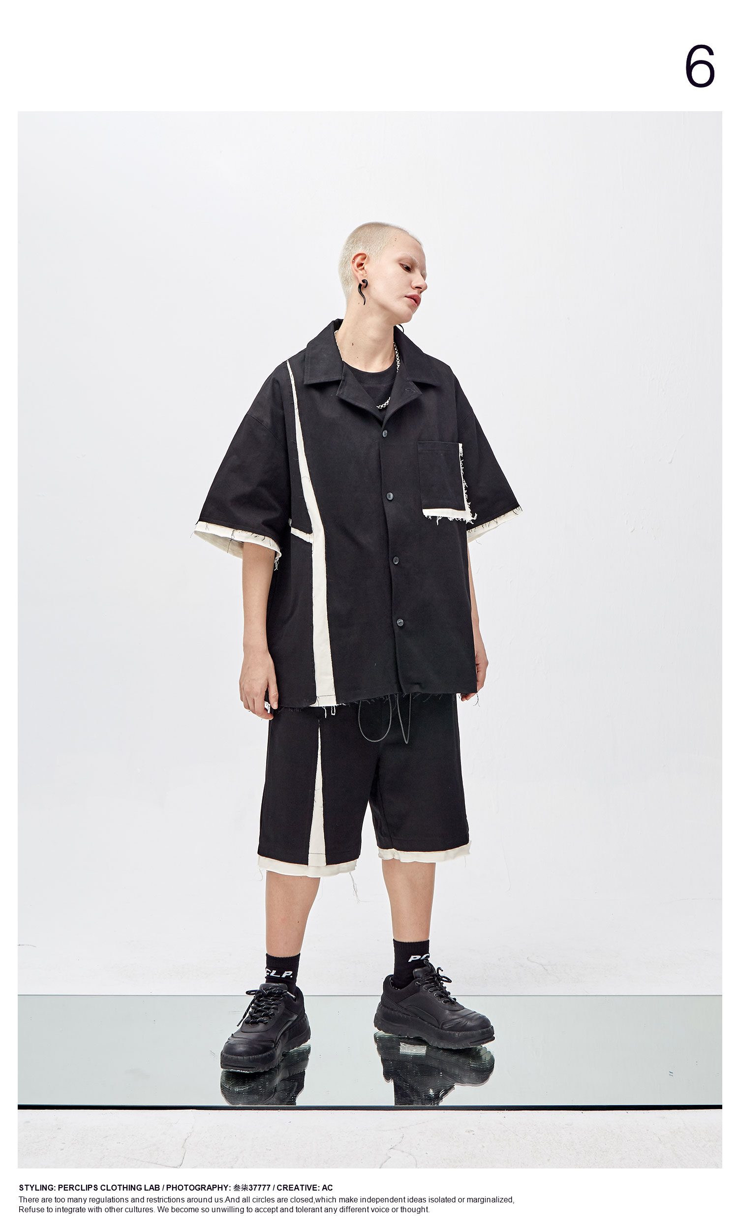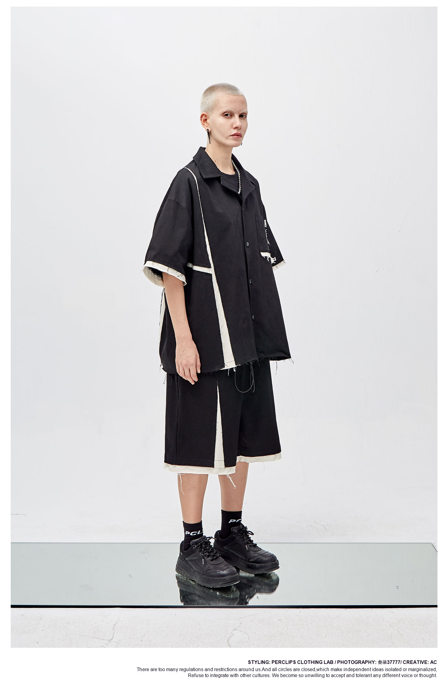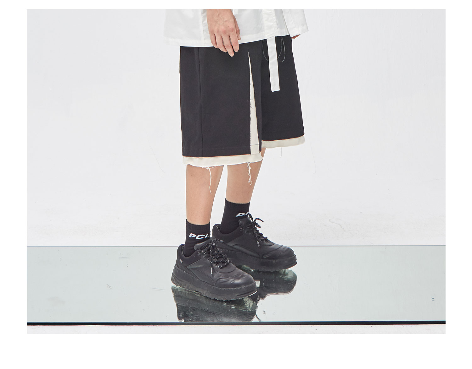 PCLP(PERCLIPS) 解构破坏短裤 拼接毛边不规则剪裁五分裤