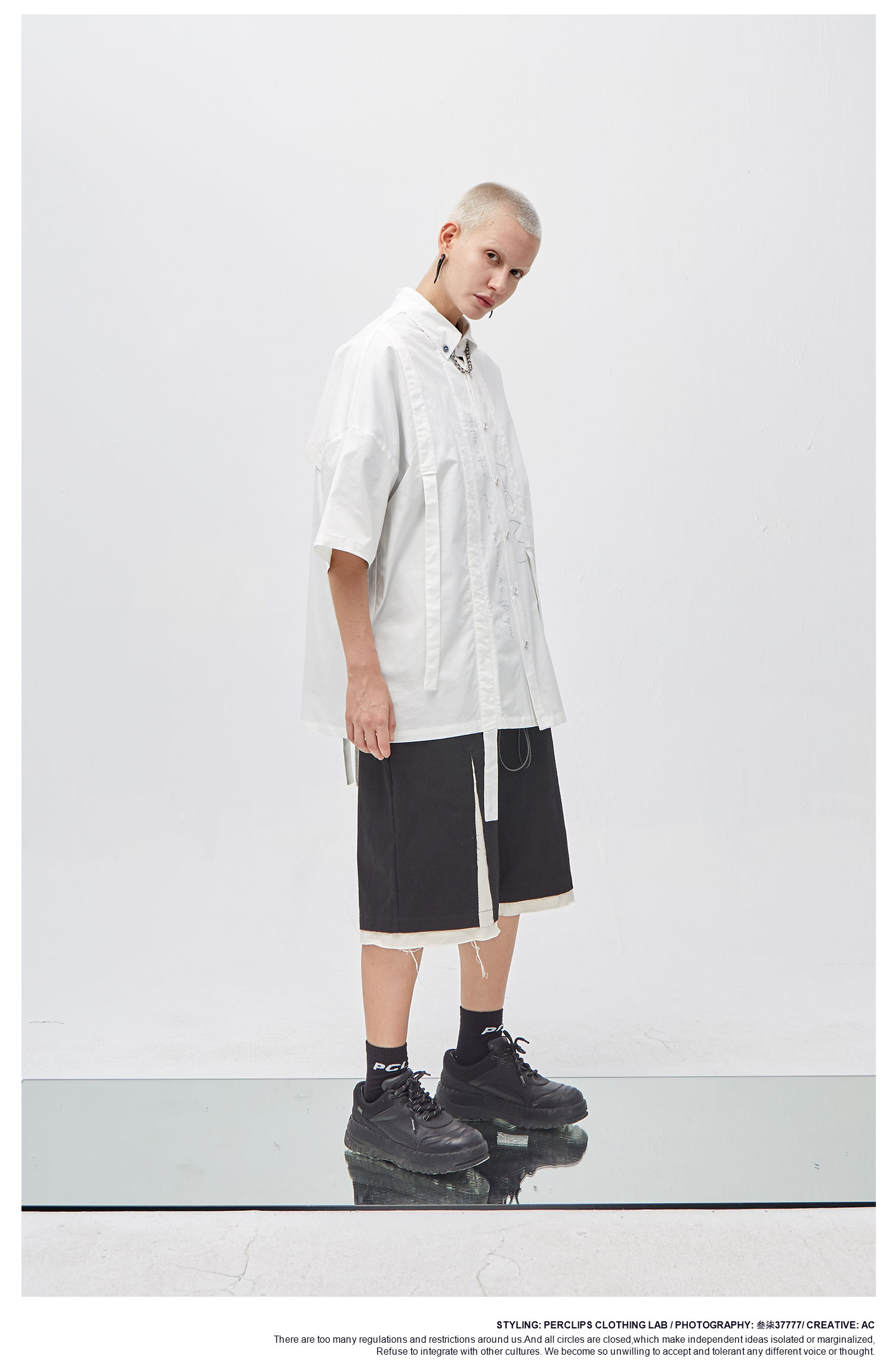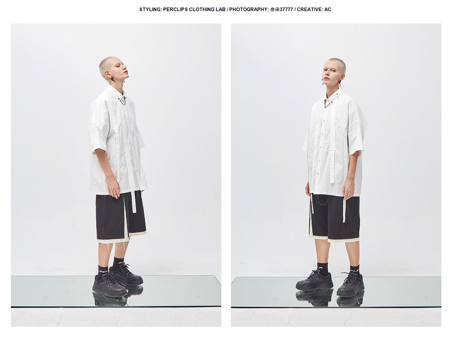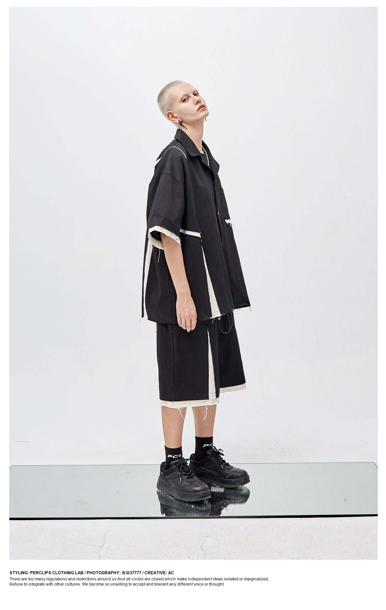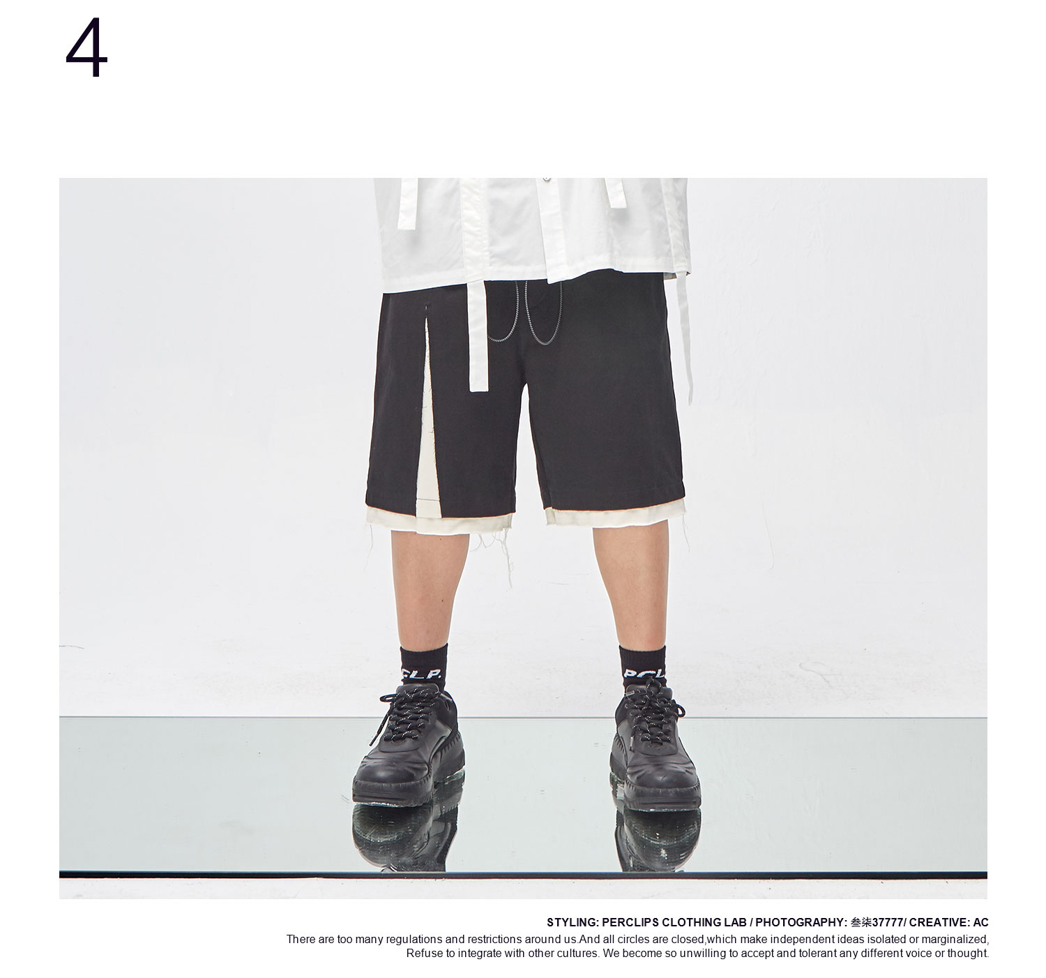 PCLP(PERCLIPS) 解构破坏短裤 拼接毛边不规则剪裁五分裤