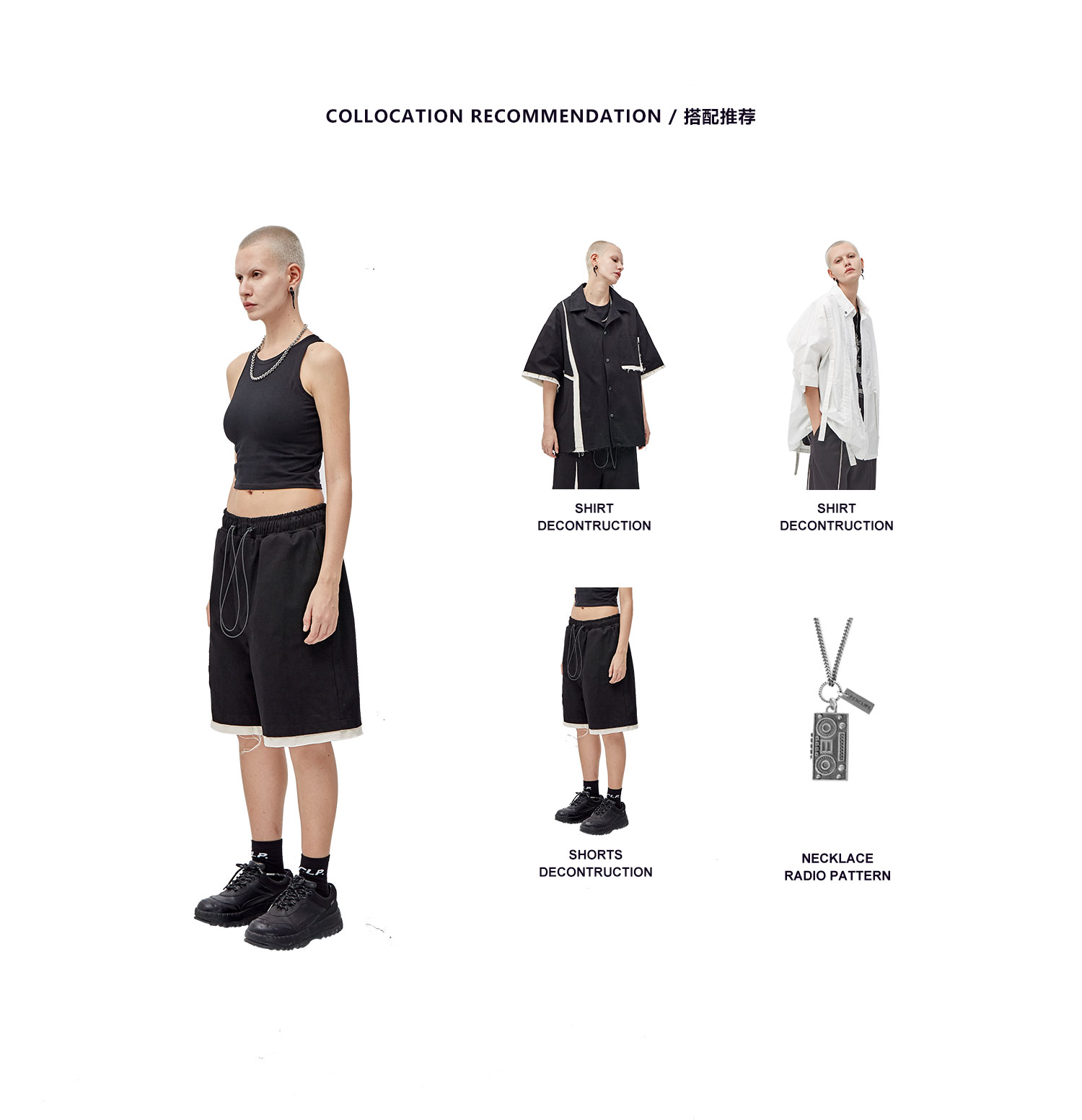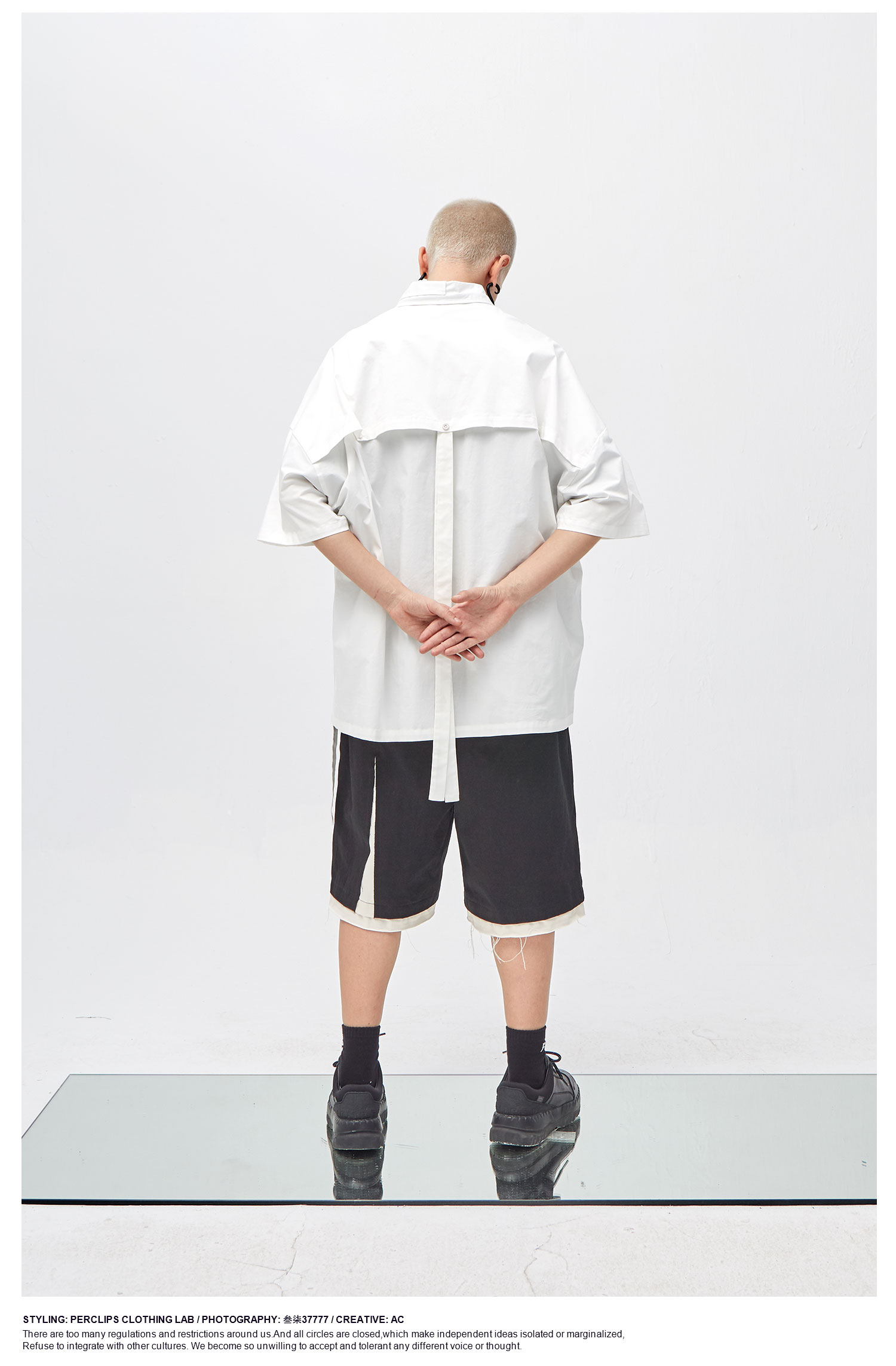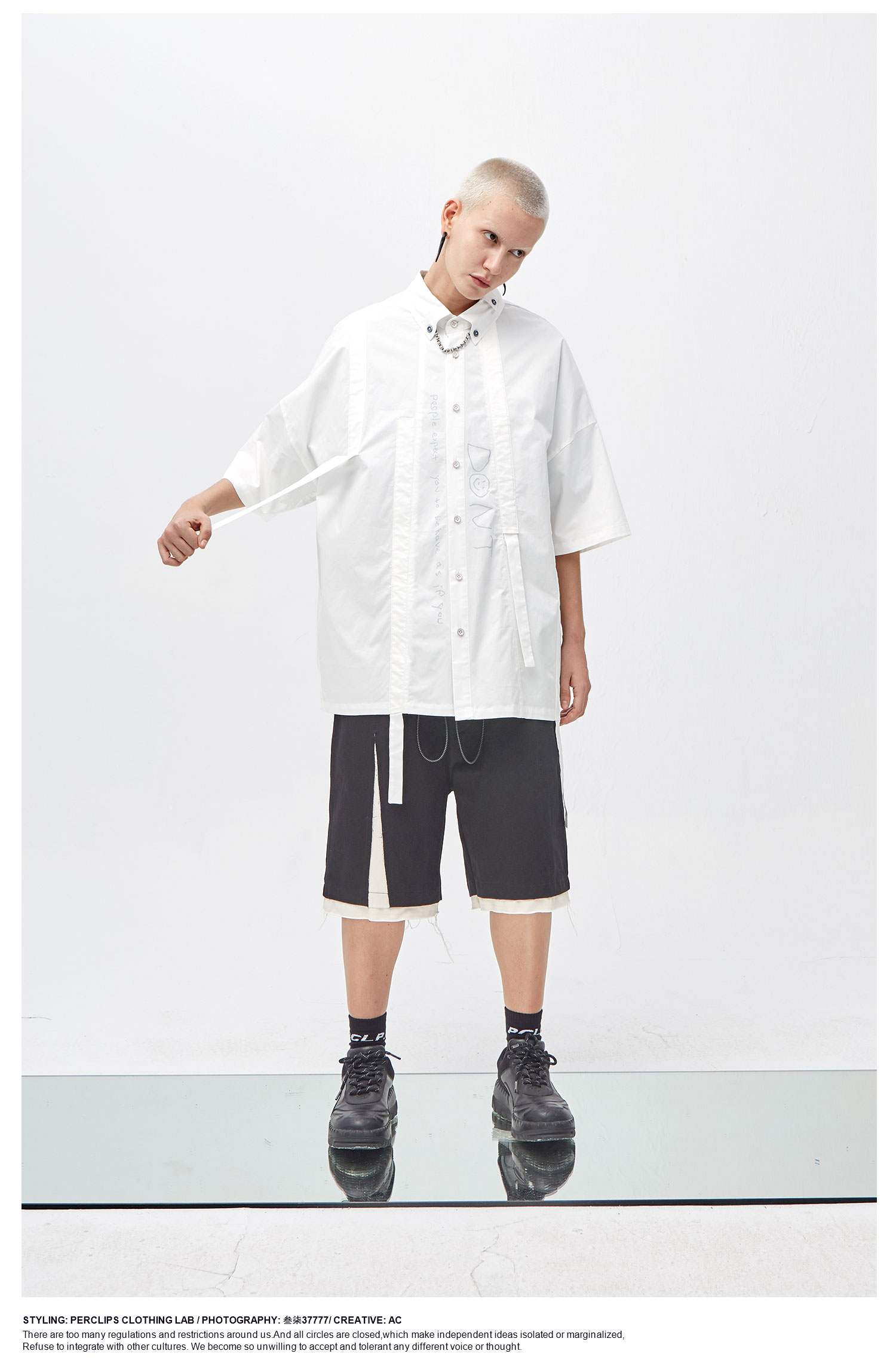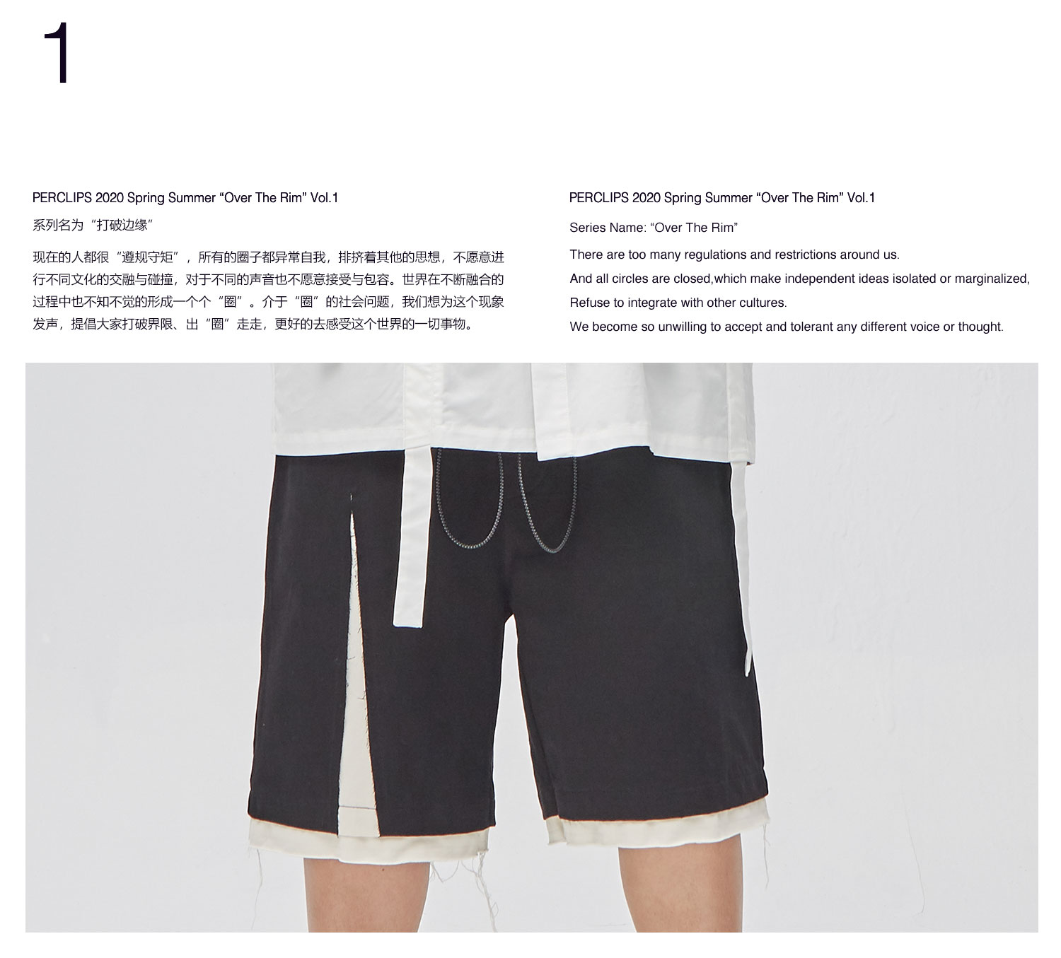 PCLP(PERCLIPS) 解构破坏短裤 拼接毛边不规则剪裁五分裤