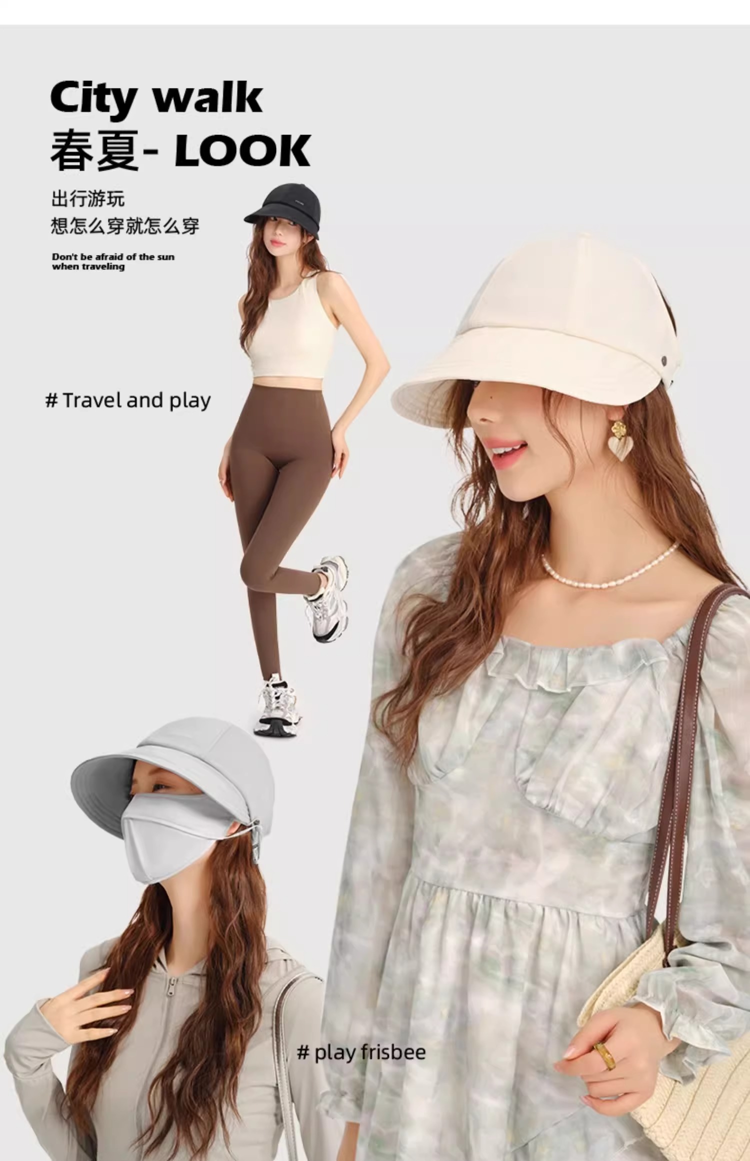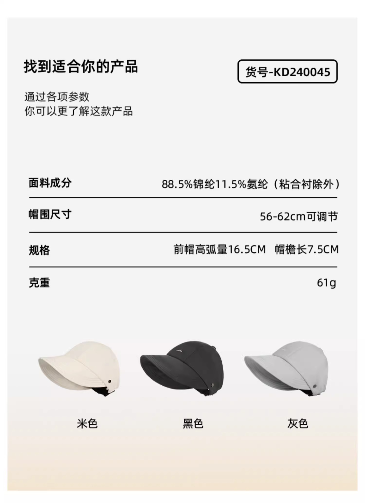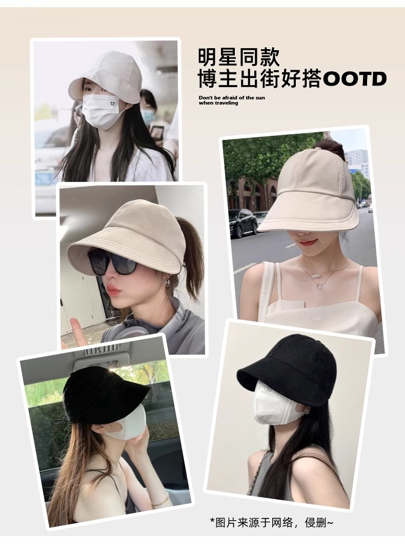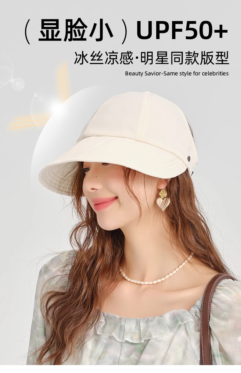 【CACUSS防晒】冰丝半空顶防晒帽 UPF50+明星同款 清凉透气可露马尾 长帽檐大头围显脸小