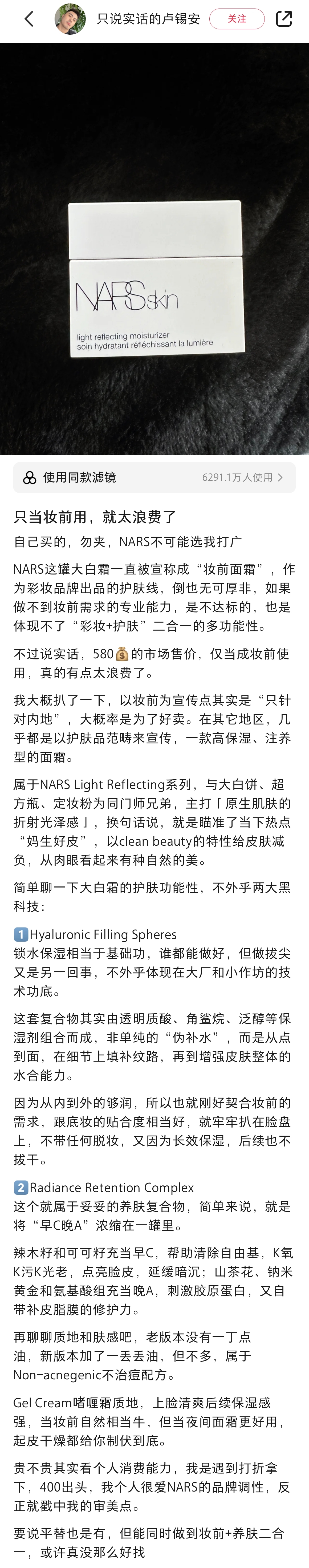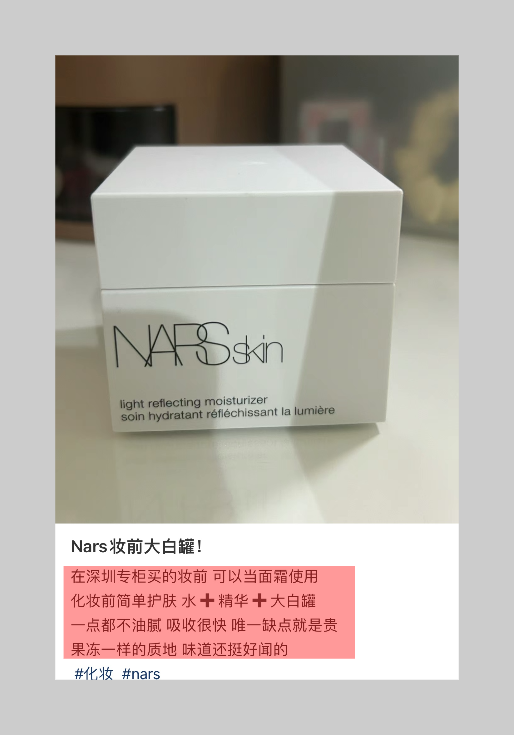 NARS这罐大白霜一直被宣称成“妆前面霜”