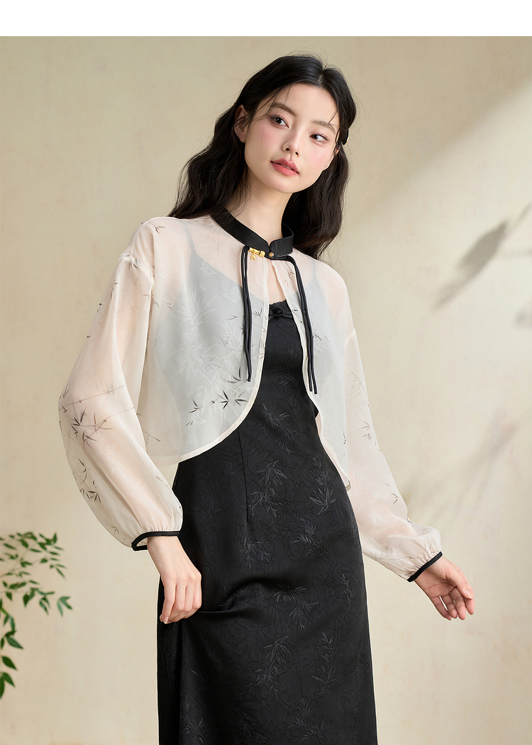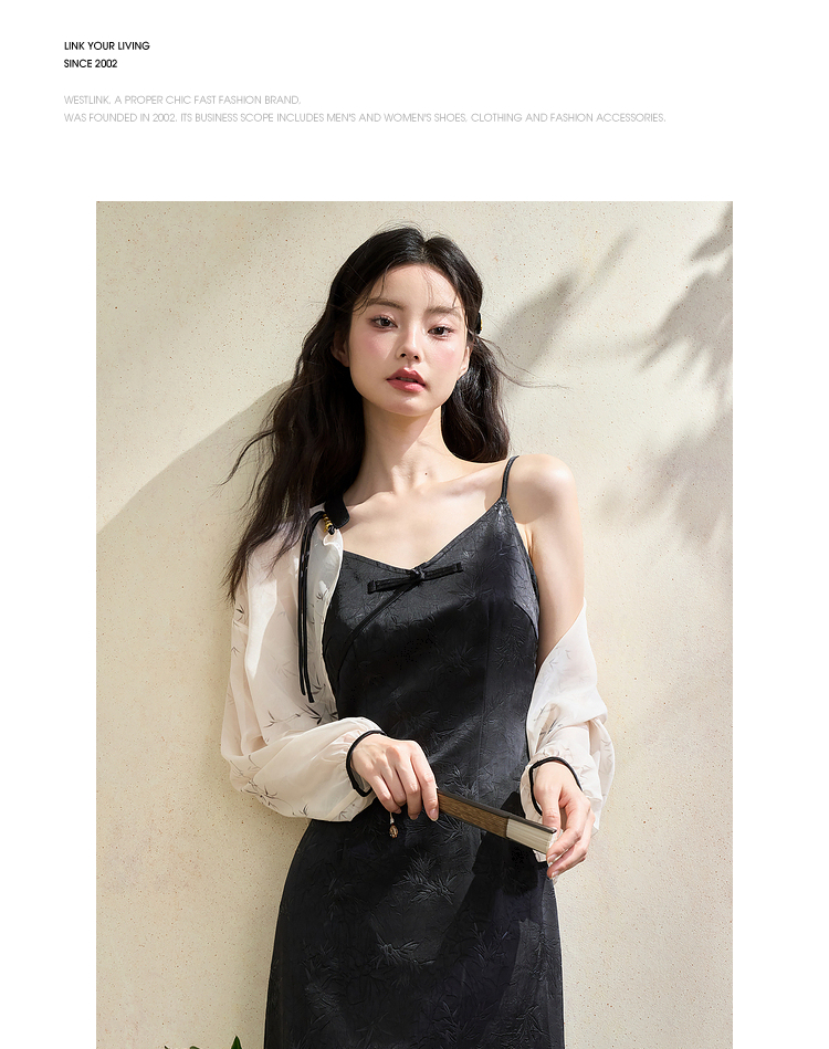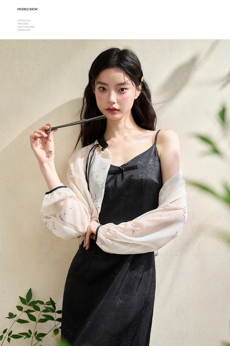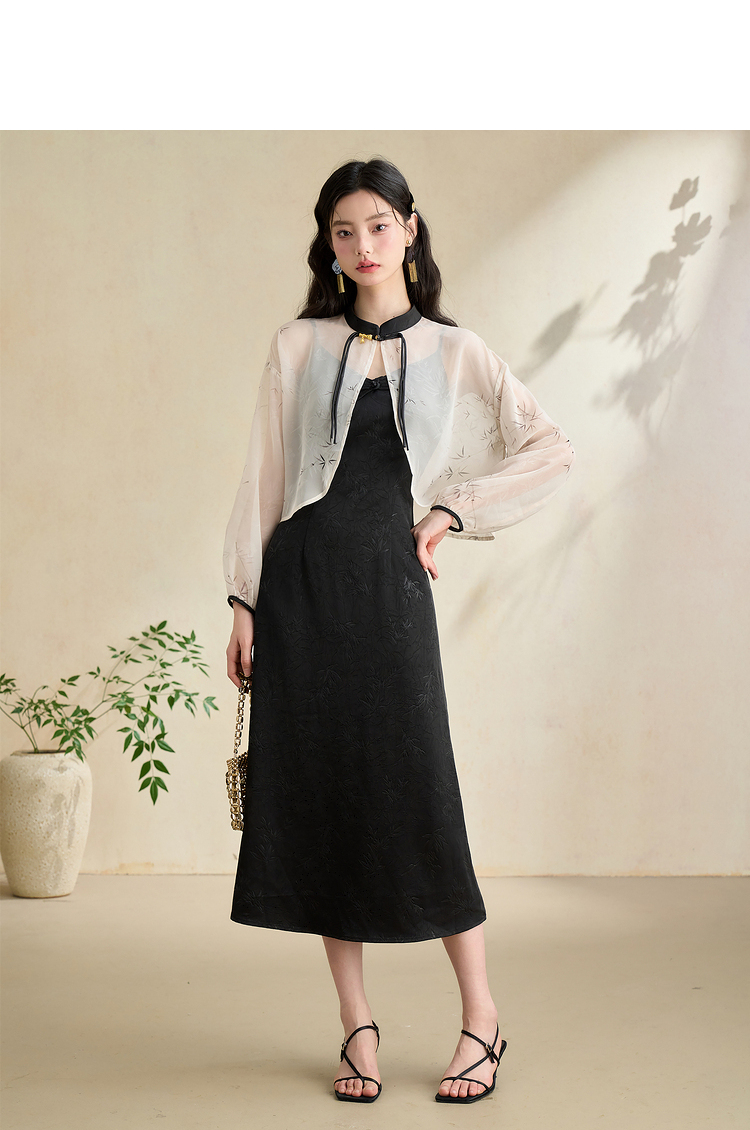 新中式国风套装女立领盘扣轻薄衬衫搭吊带裙两件套V2641972