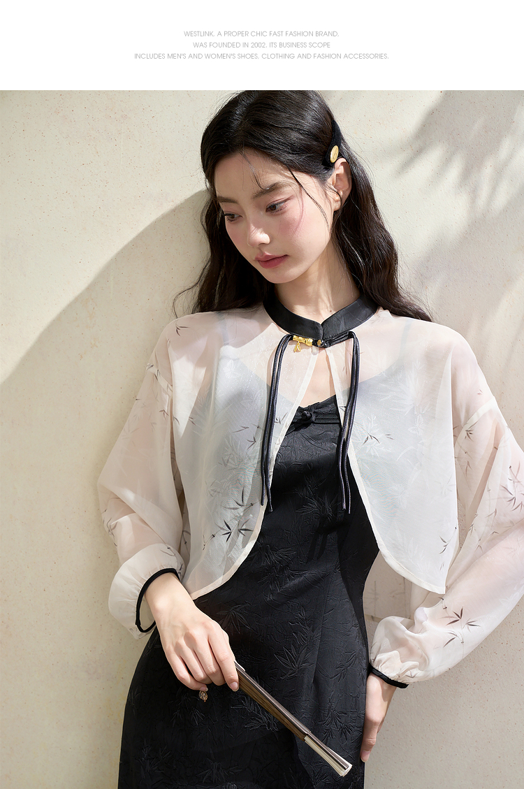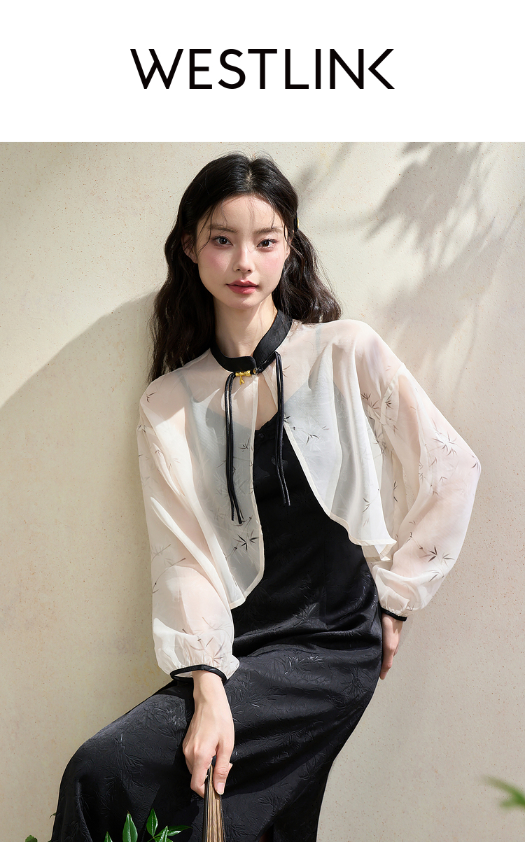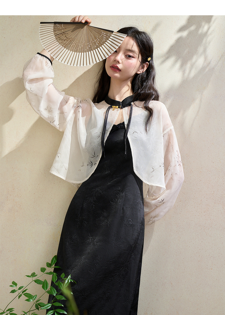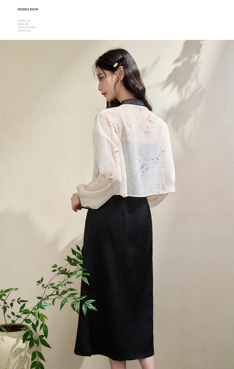 新中式国风套装女立领盘扣轻薄衬衫搭吊带裙两件套V2641972