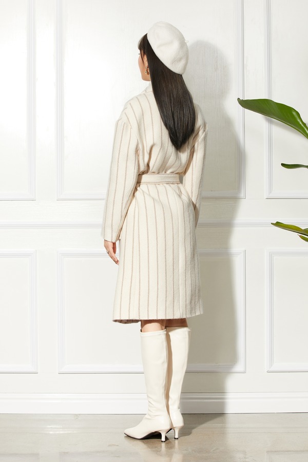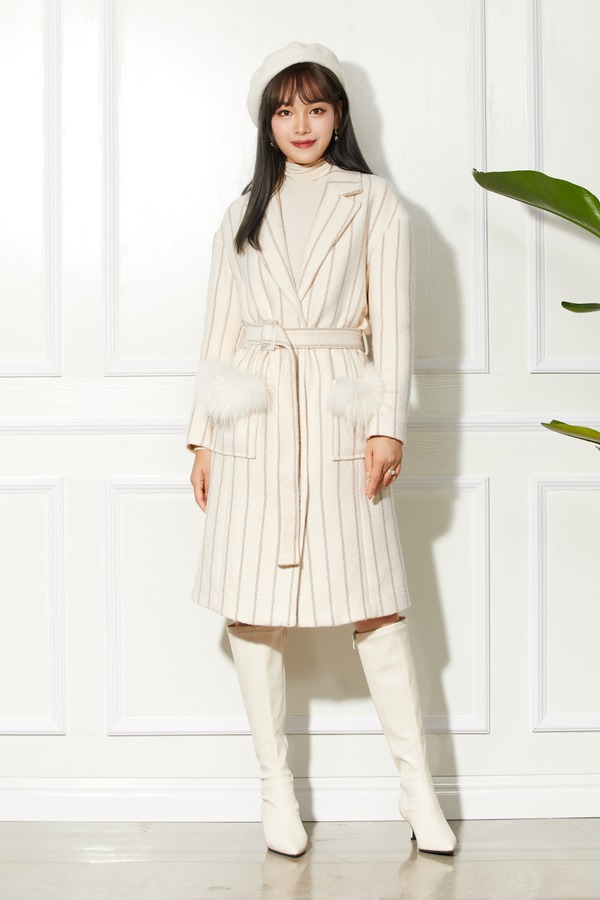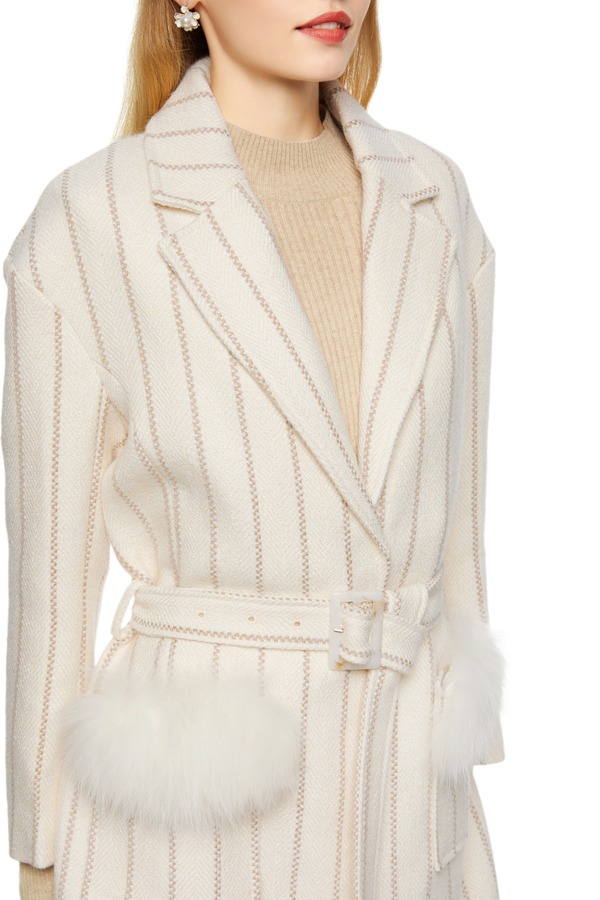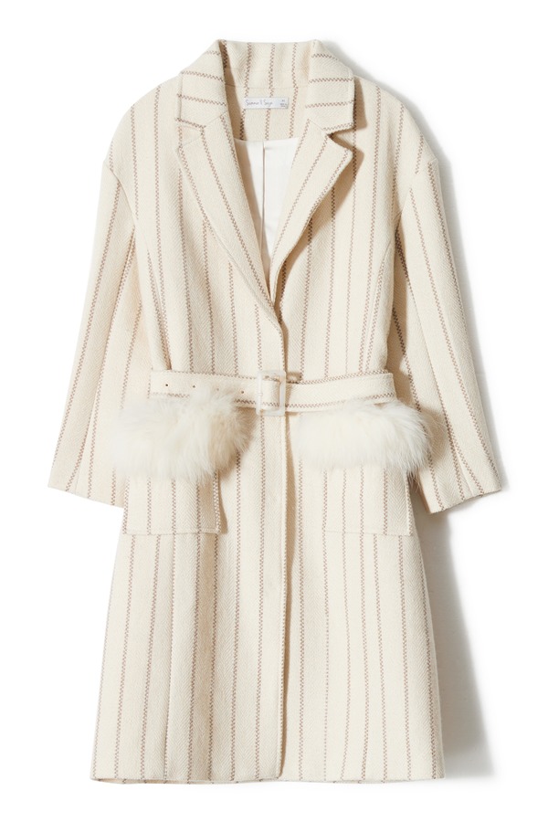 SUMMER & SAGE 毛绒装饰束腰羊毛大衣 8161