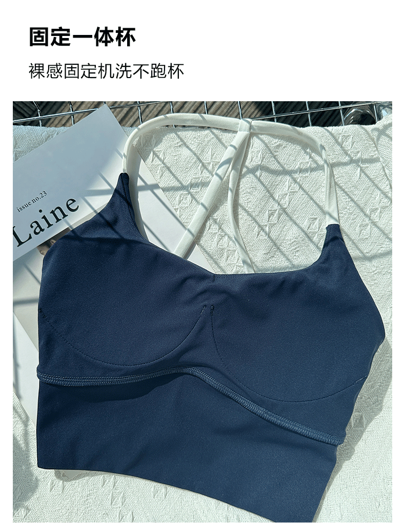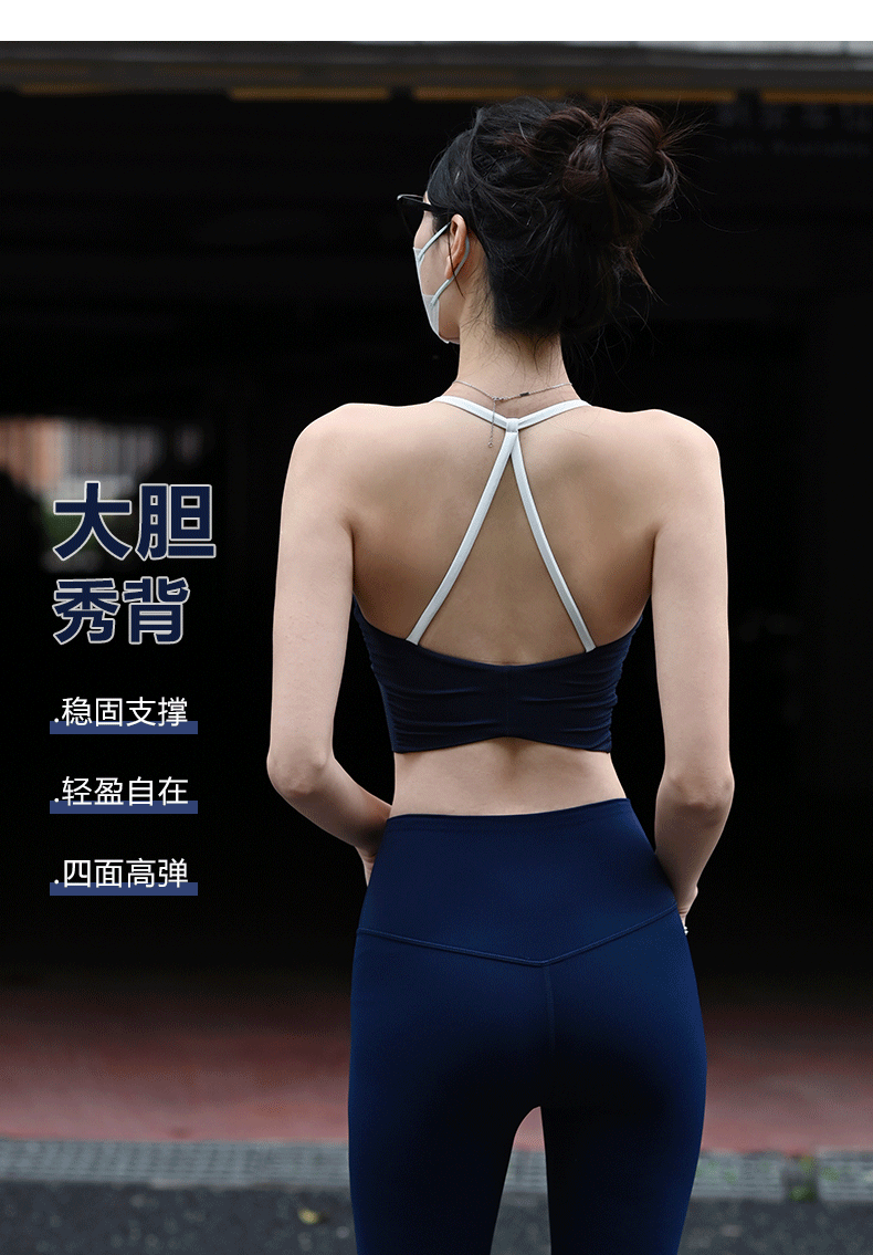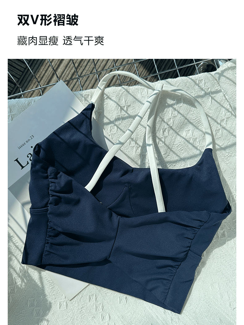Beemen固定杯交叉美背运动文胸室内外跑步瑜伽健身