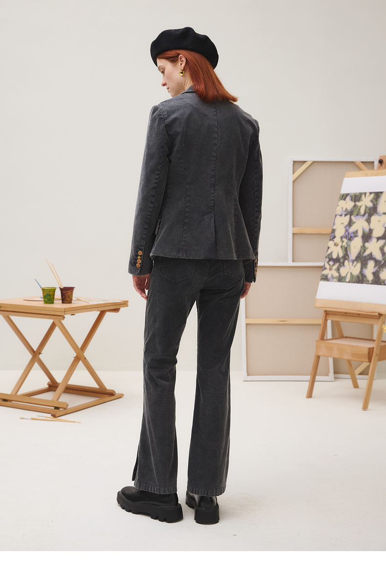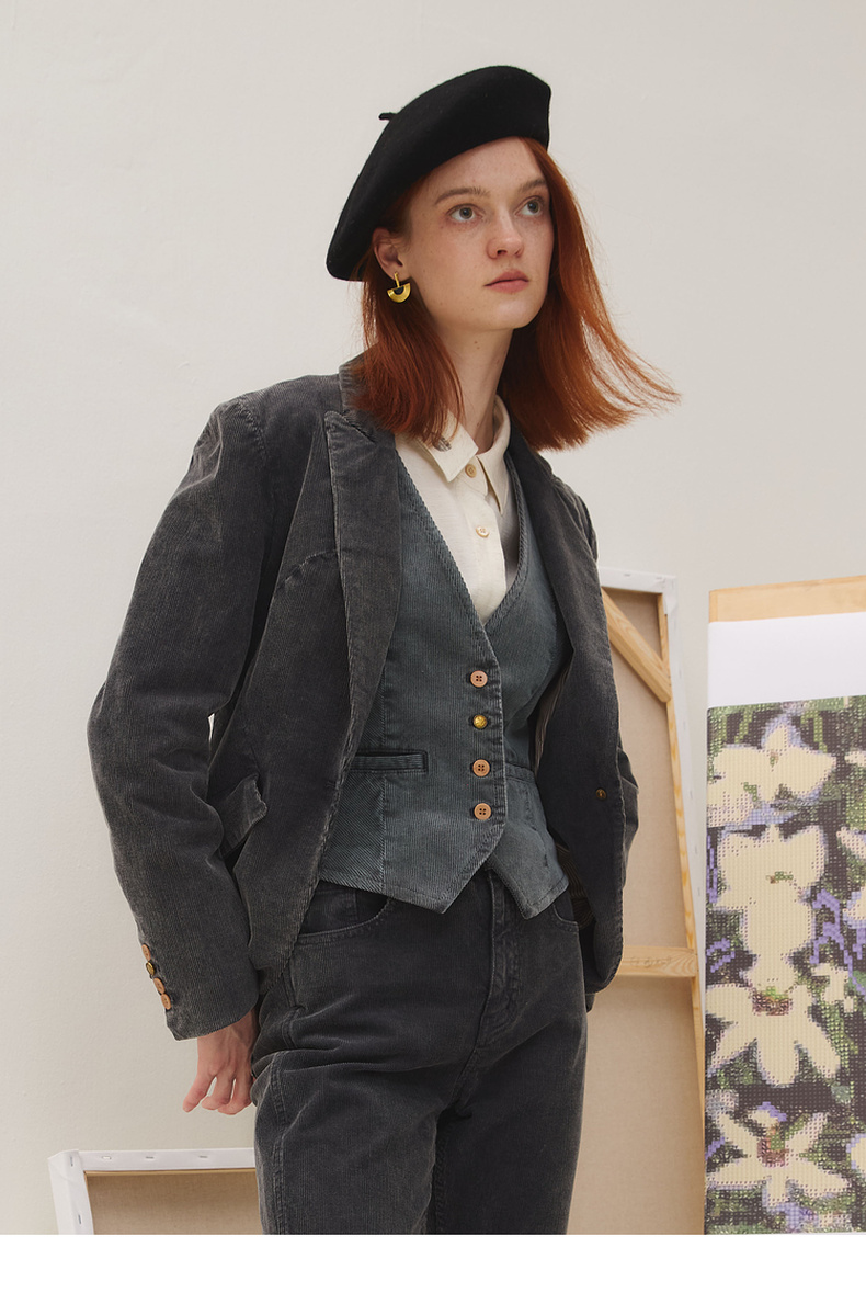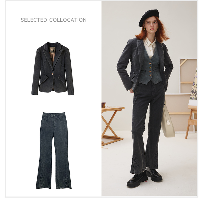 谜底西装外套长袖女2025秋季新品复古修身文艺牛仔西服253MW1232