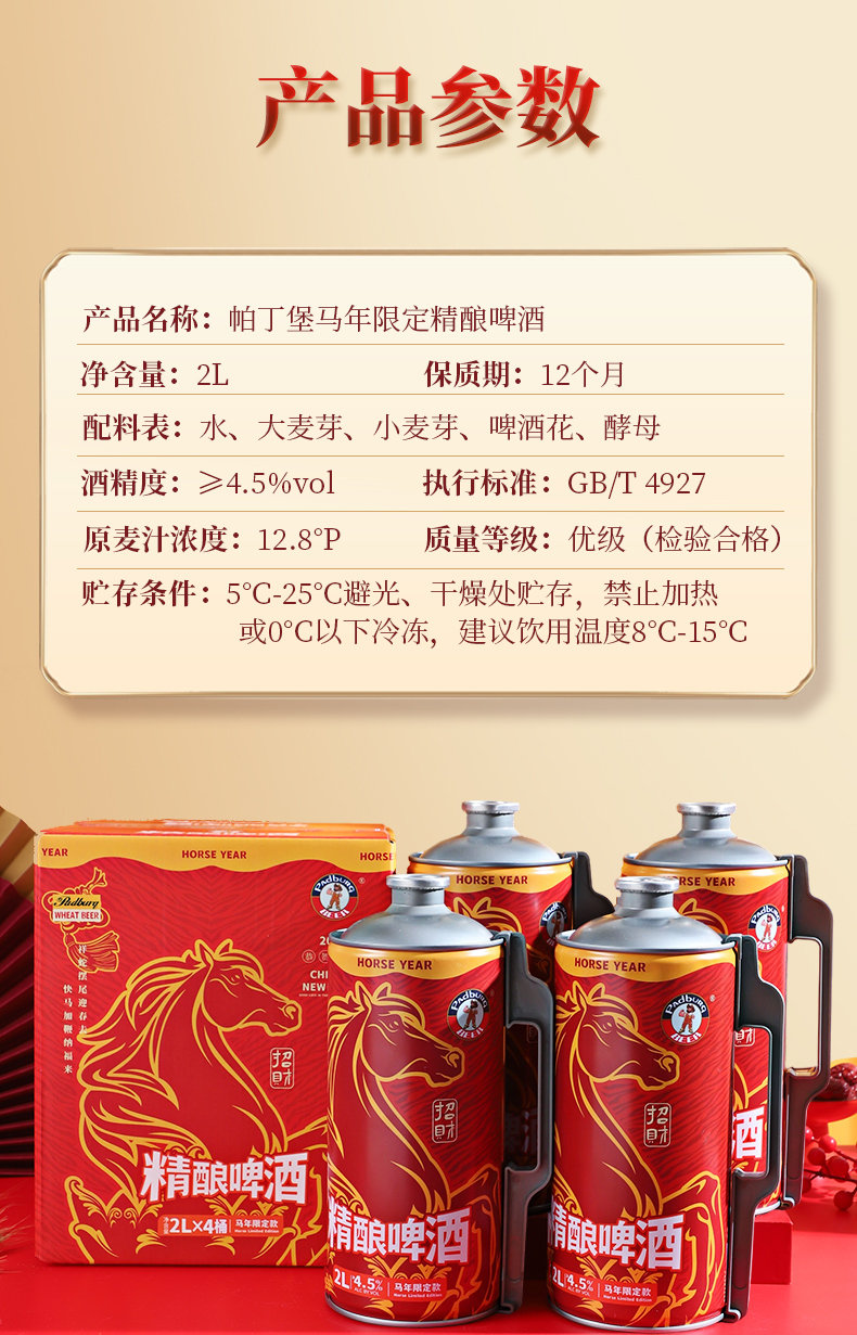 (马年新包装)帕丁堡马年限定精酿啤酒2L*4瓶【臻选好酒】