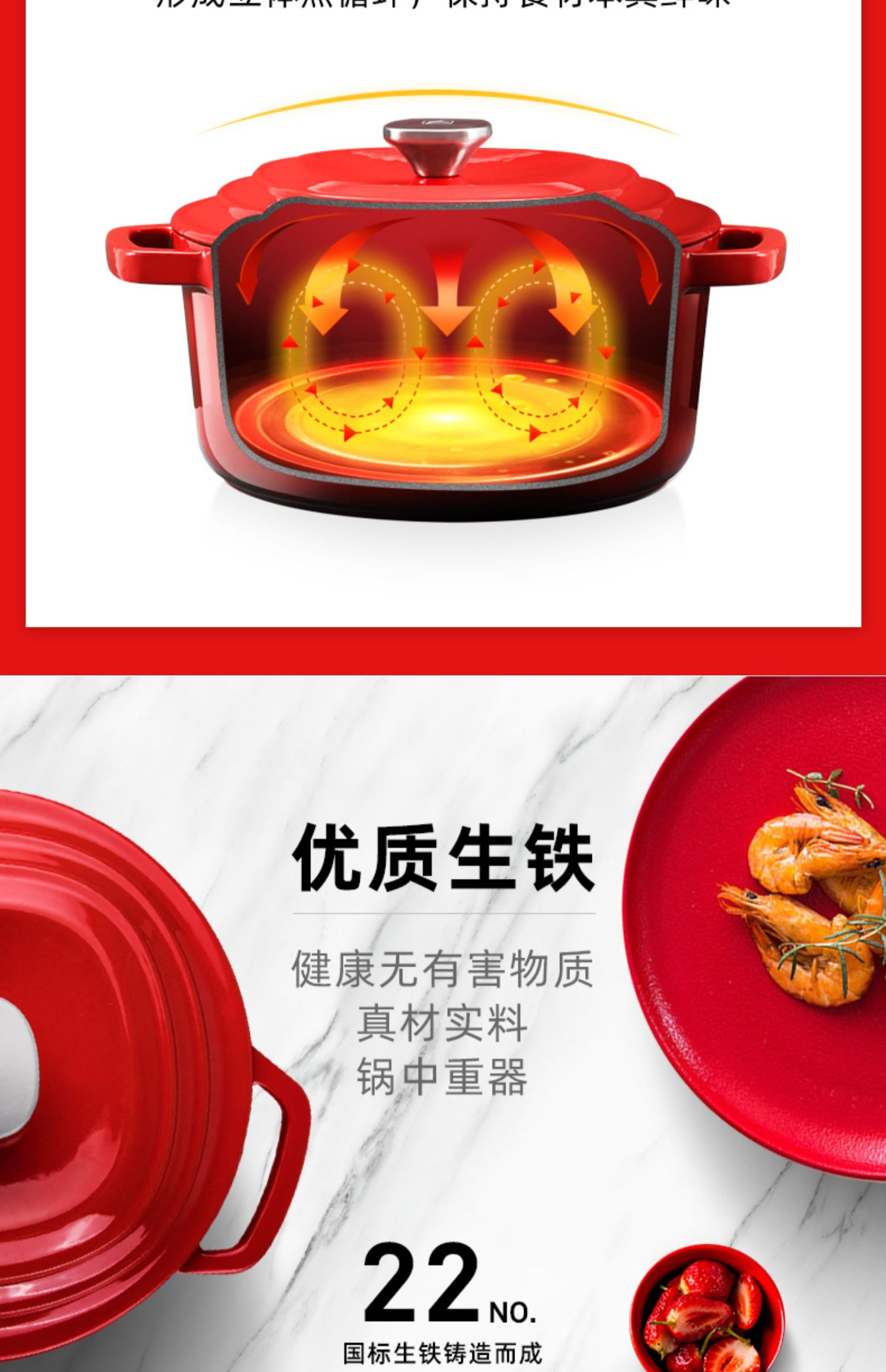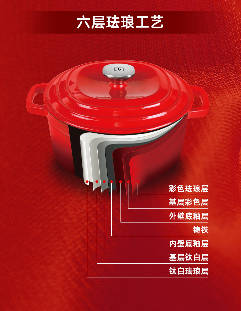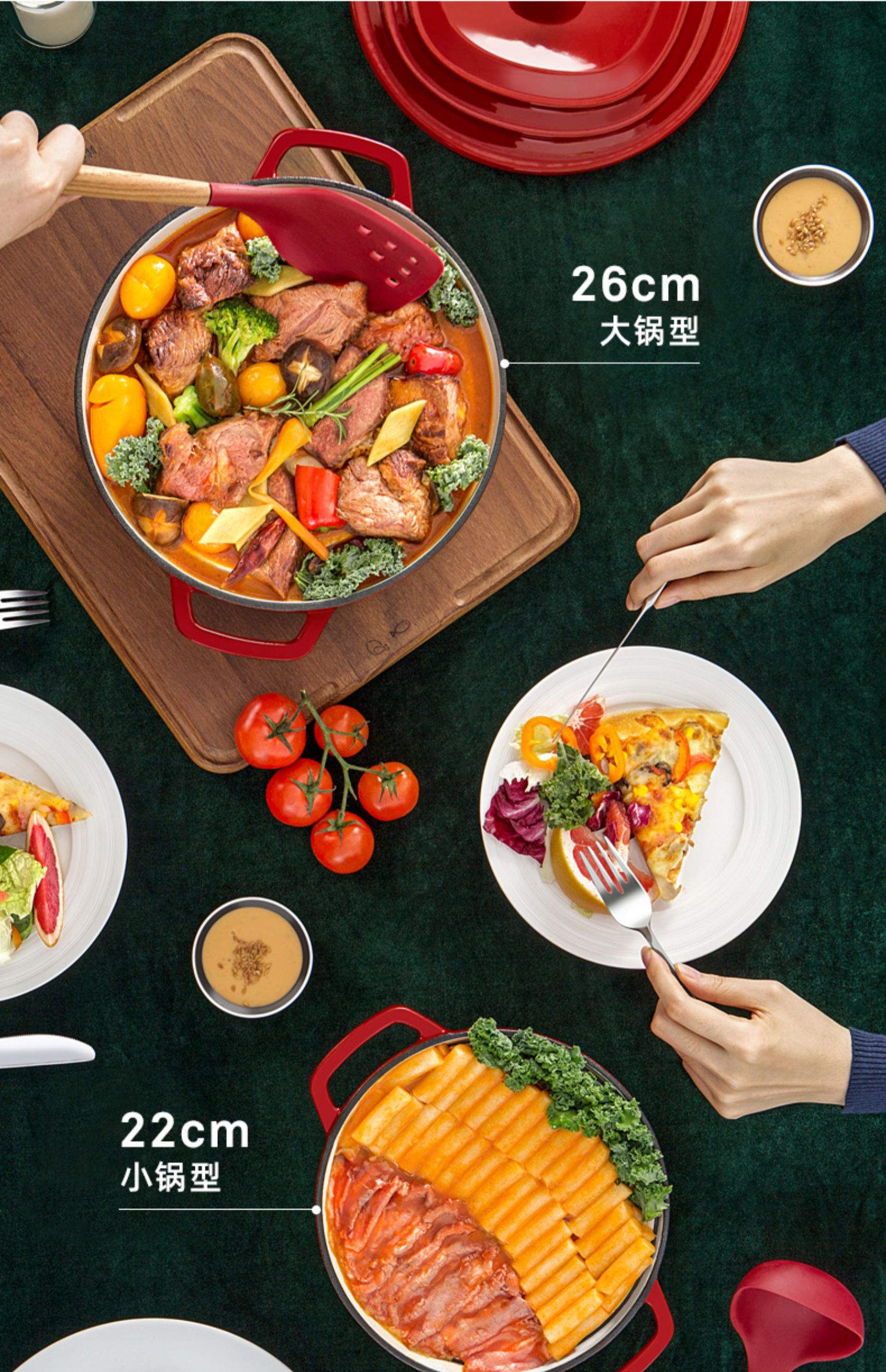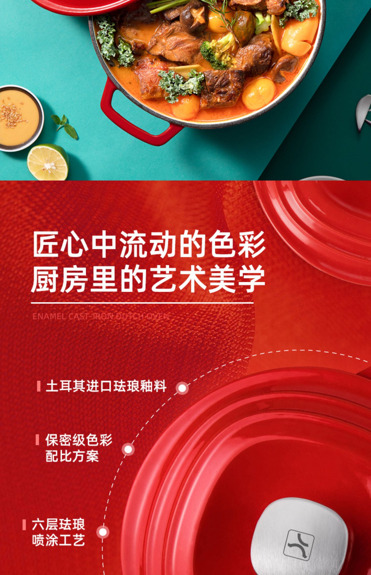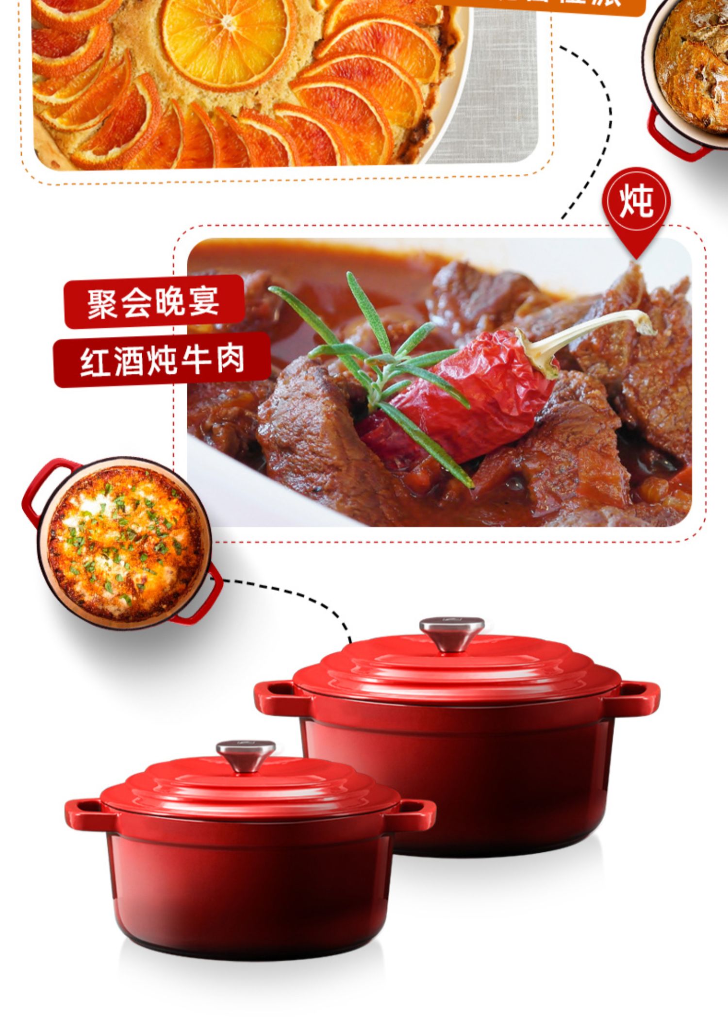 美珑美利 缤彩C+珐琅铸铁锅汤锅提香红26cm