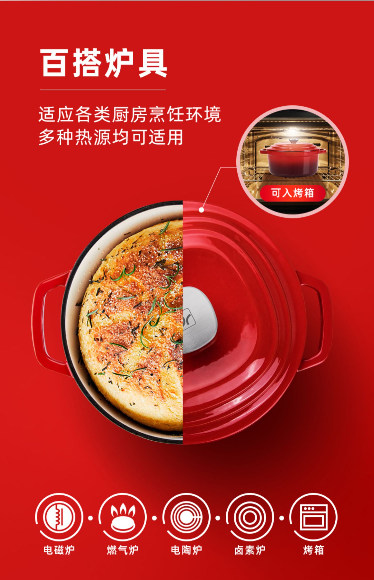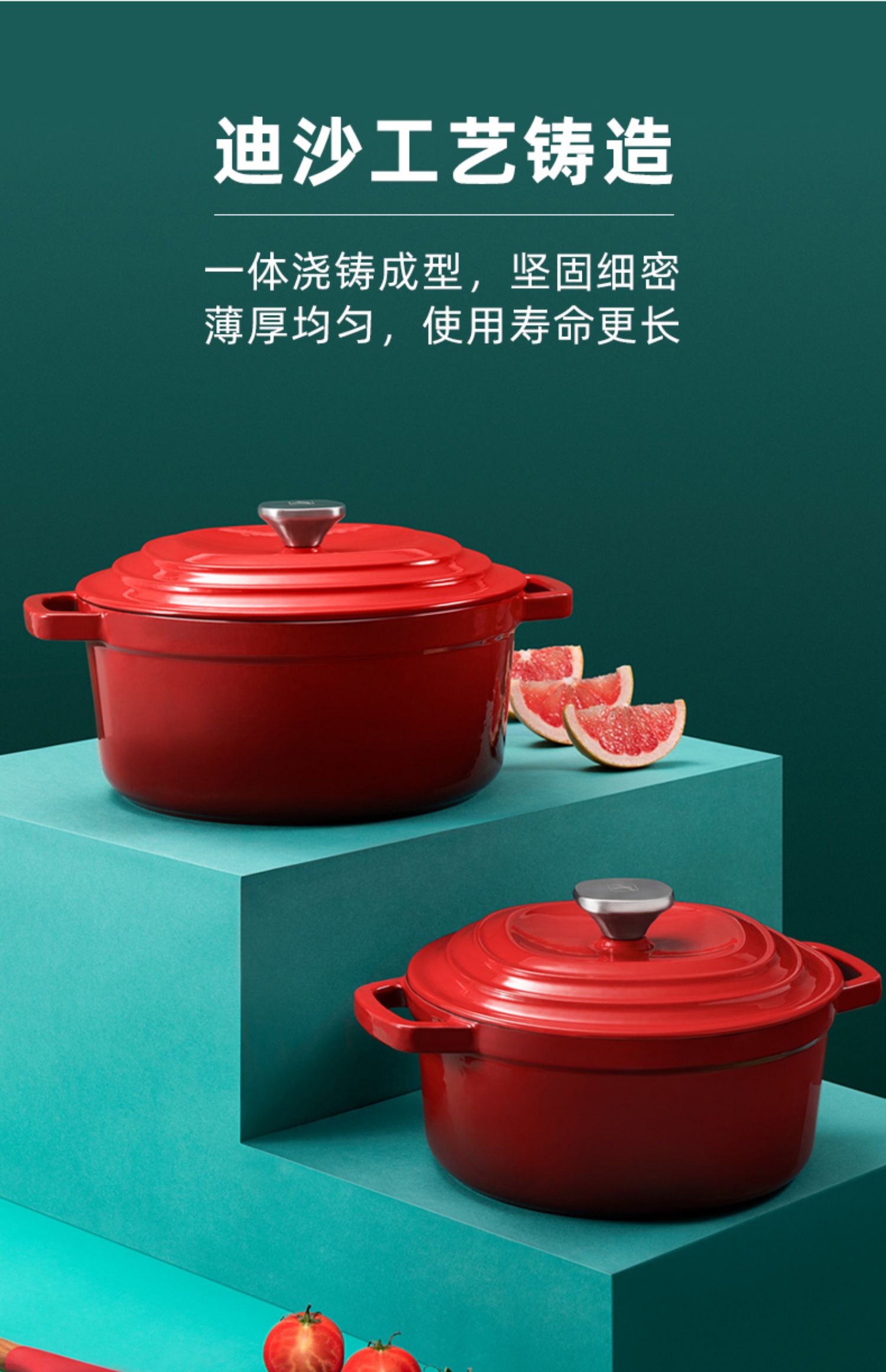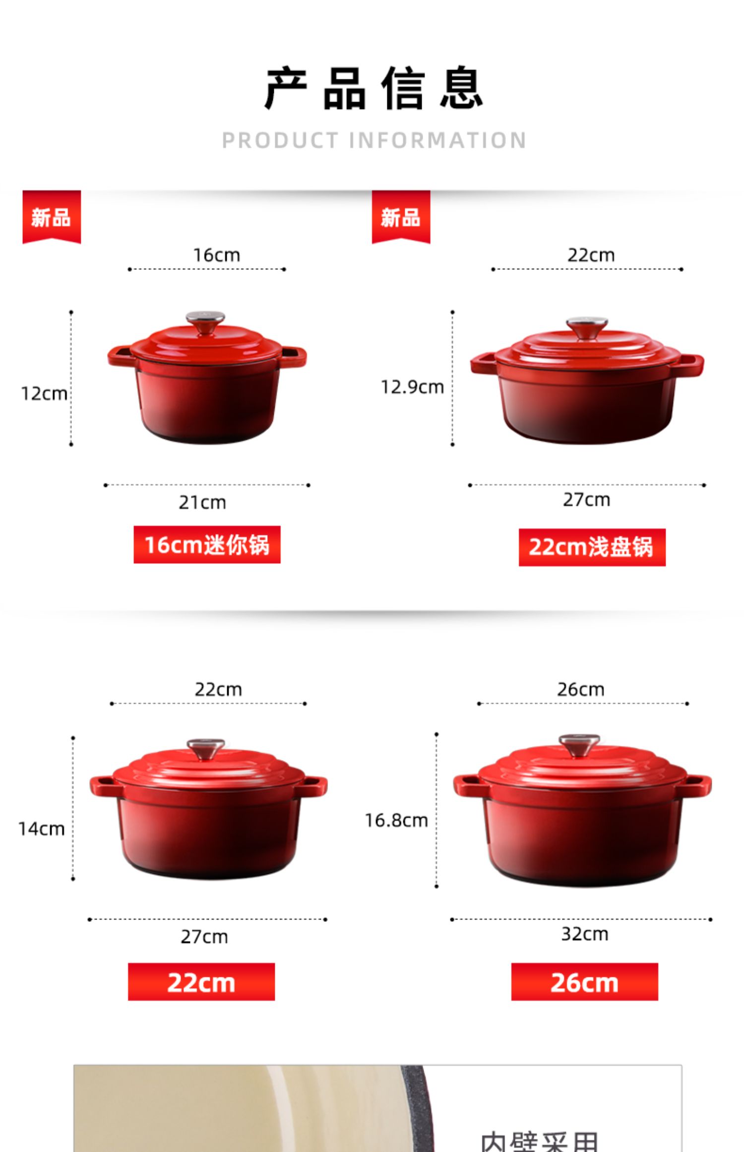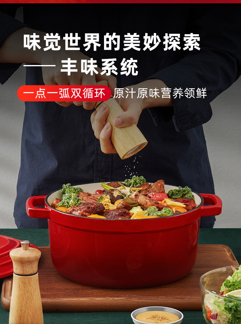 美珑美利 缤彩C+珐琅铸铁锅汤锅提香红26cm