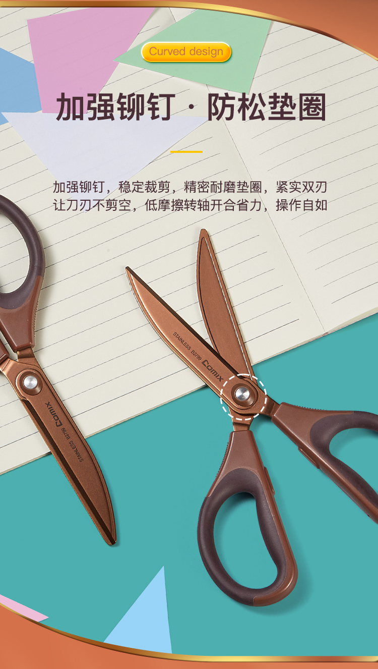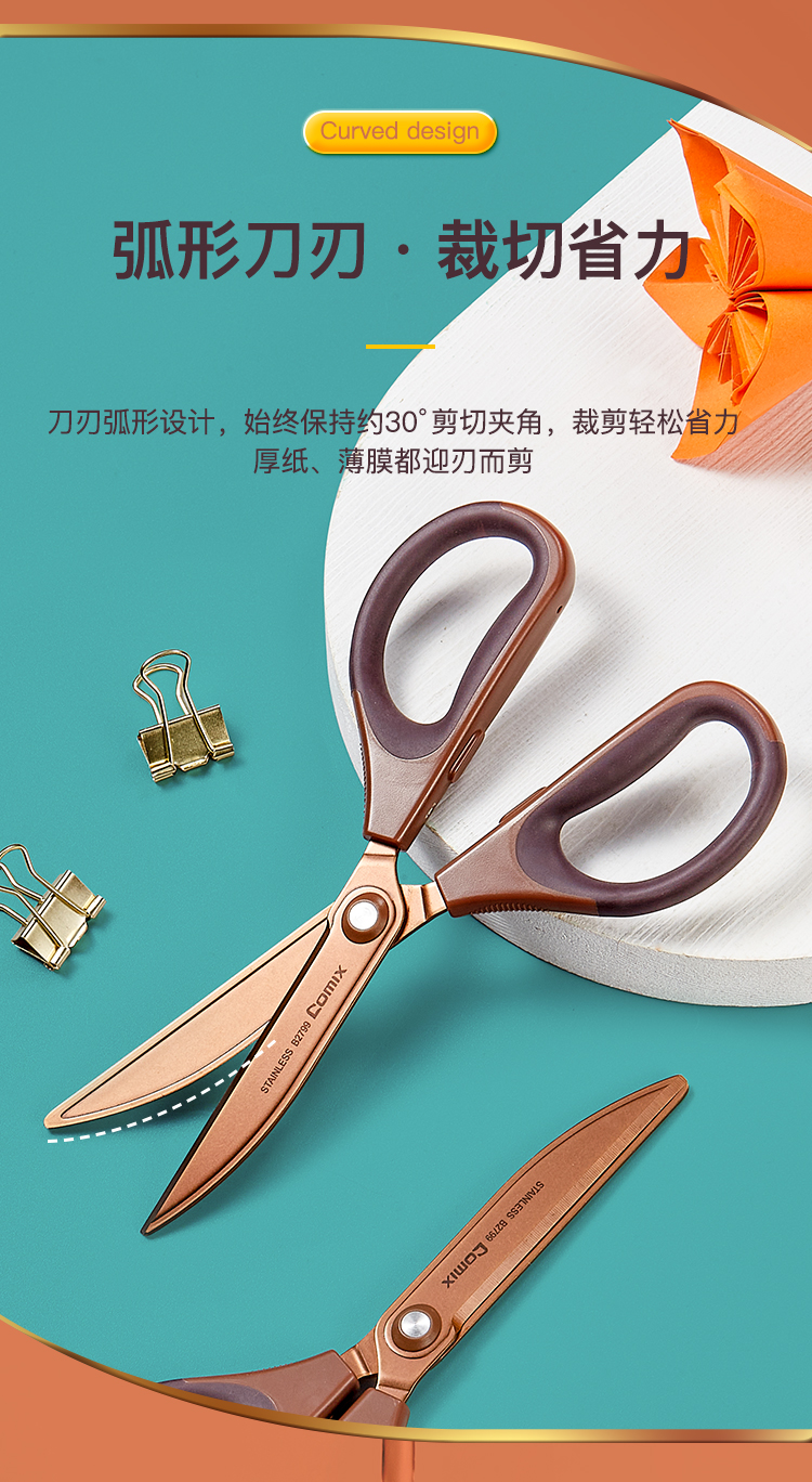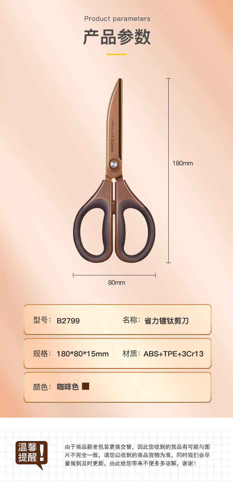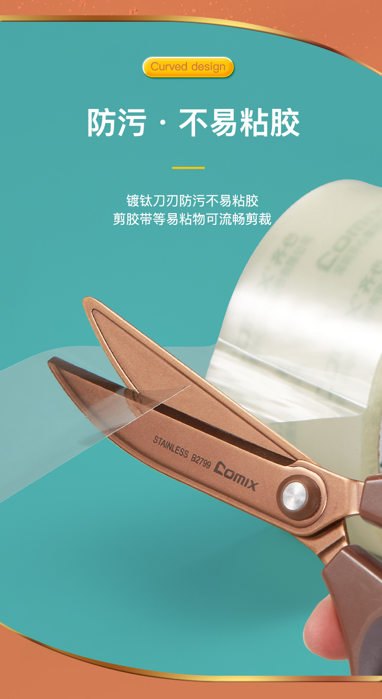 齐心 B2799 办公剪刀(弧形镀钛) 180mm 咖啡色