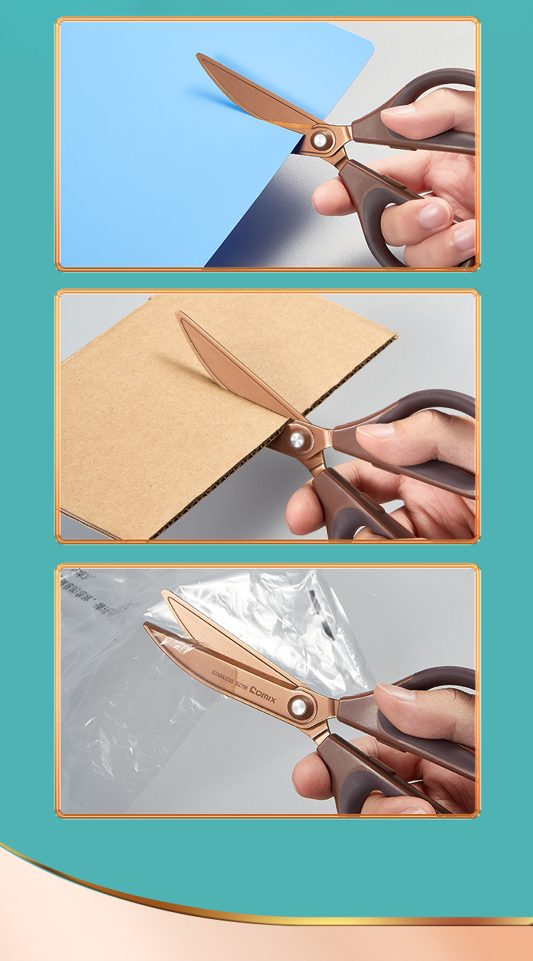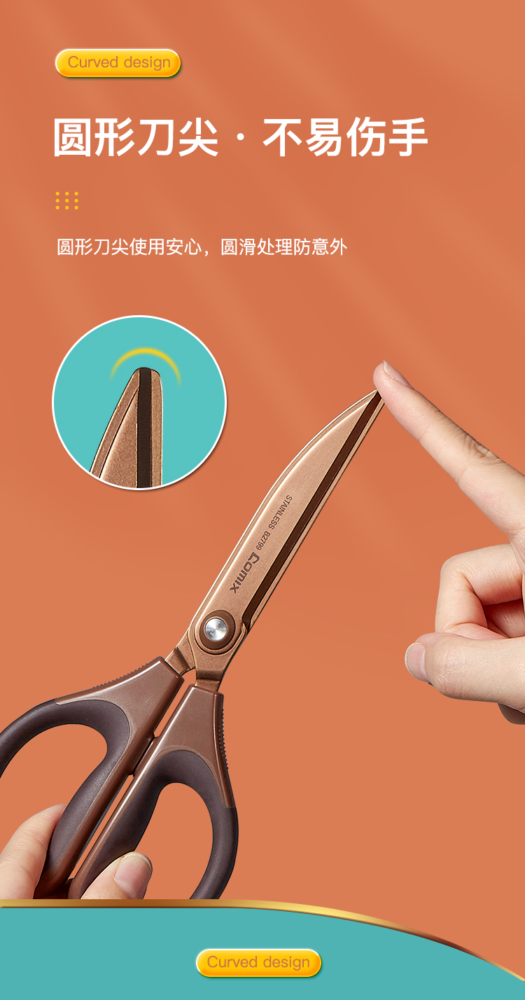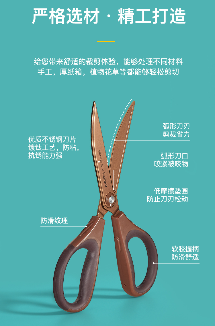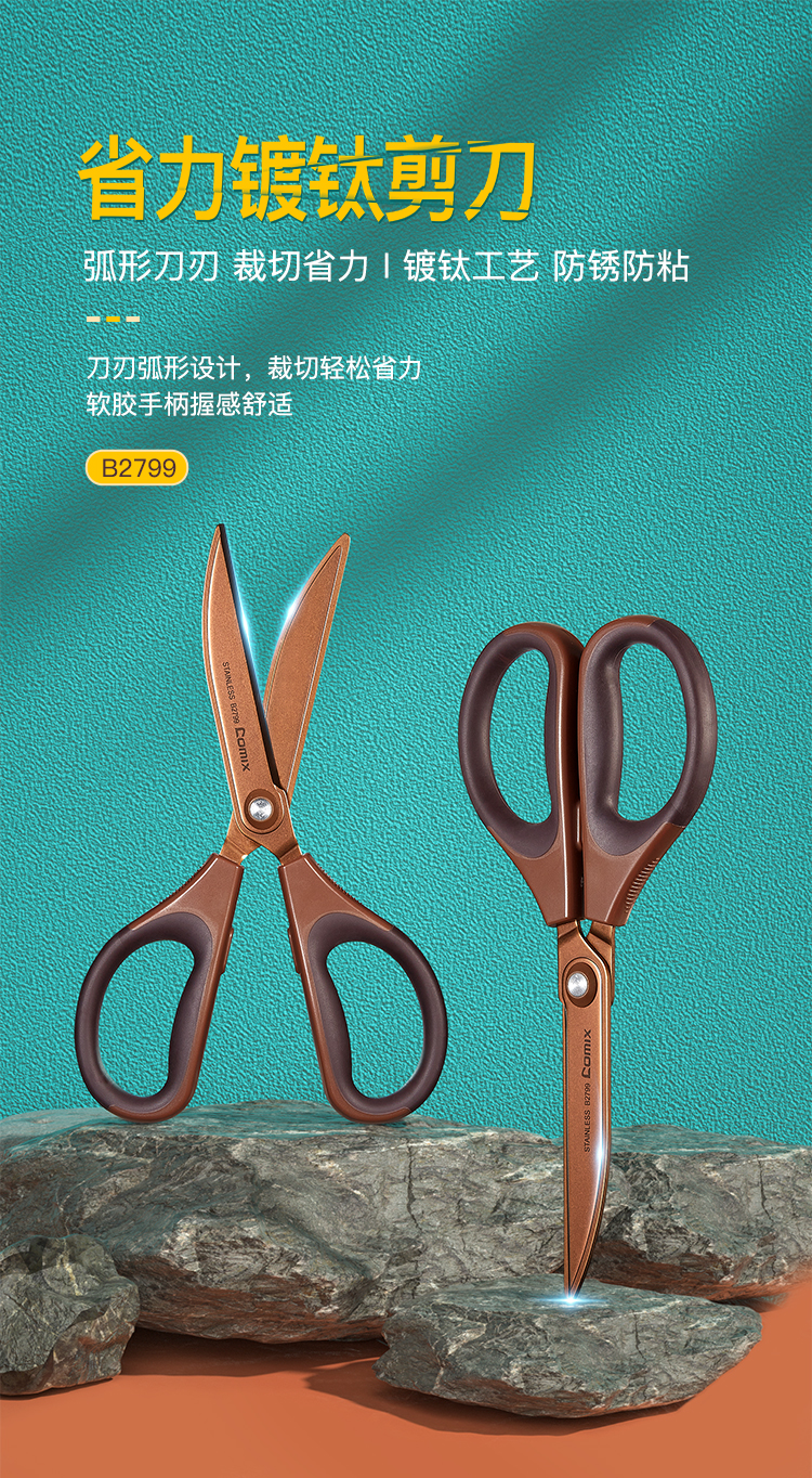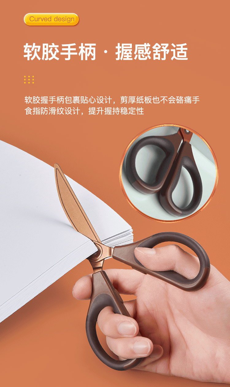 齐心 B2799 办公剪刀(弧形镀钛) 180mm 咖啡色