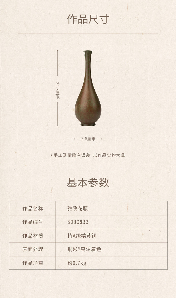 铜师傅 全铜摆件《雅致花瓶》铜工艺品 家居饰品 花瓶