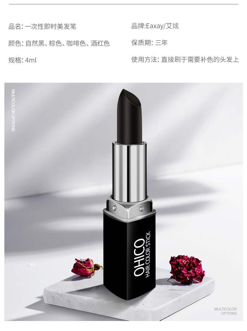 OHICO一次性染发棒遮盖白发口红式染发笔临时补发色多色 商品图4