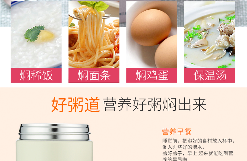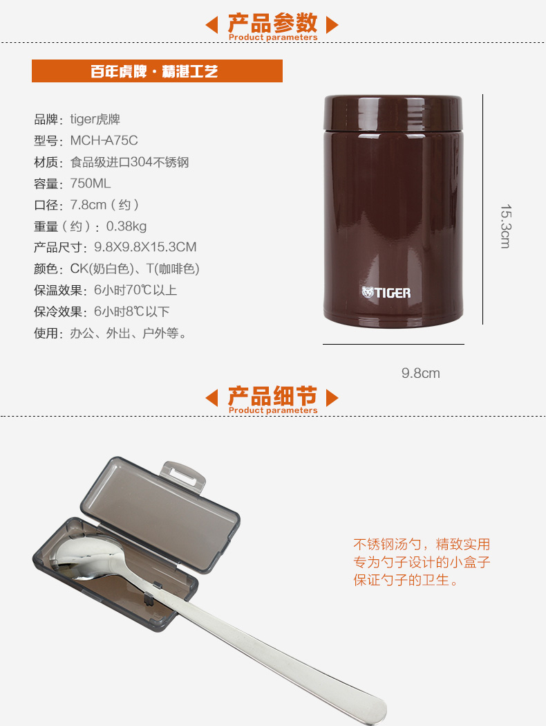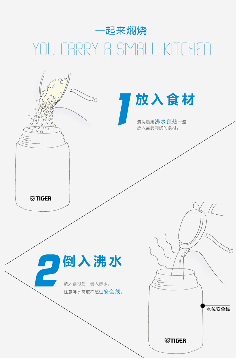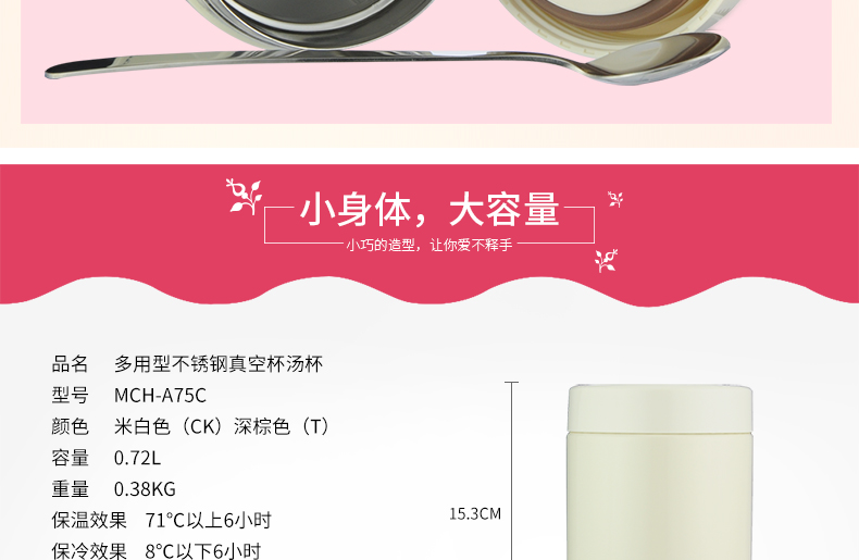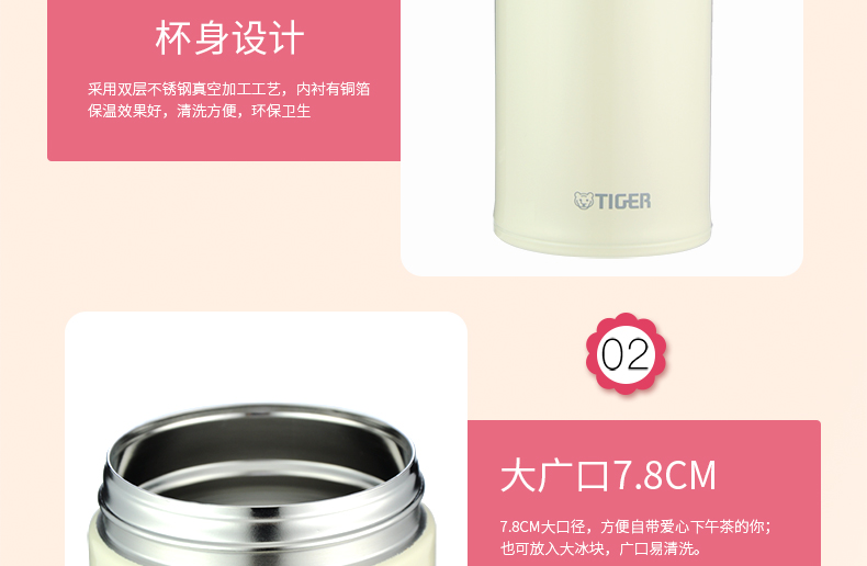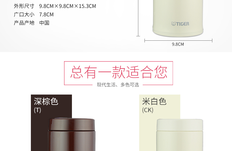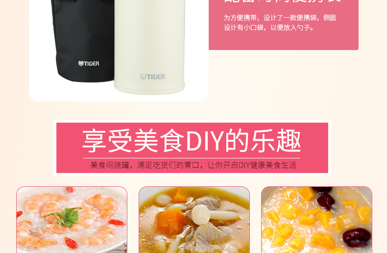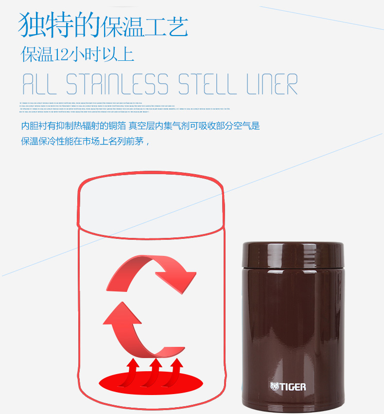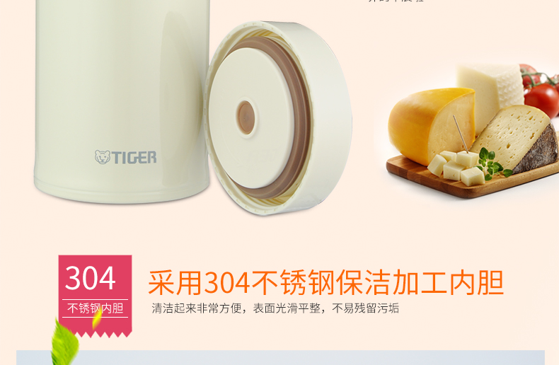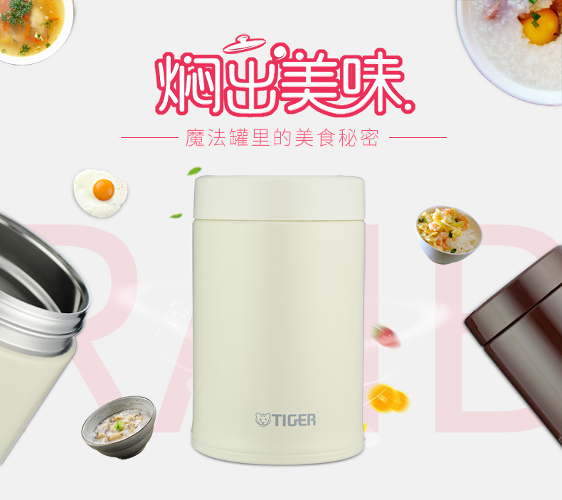 日本虎牌Tiger焖烧杯 多用不锈钢真空装汤杯750ml(米白)