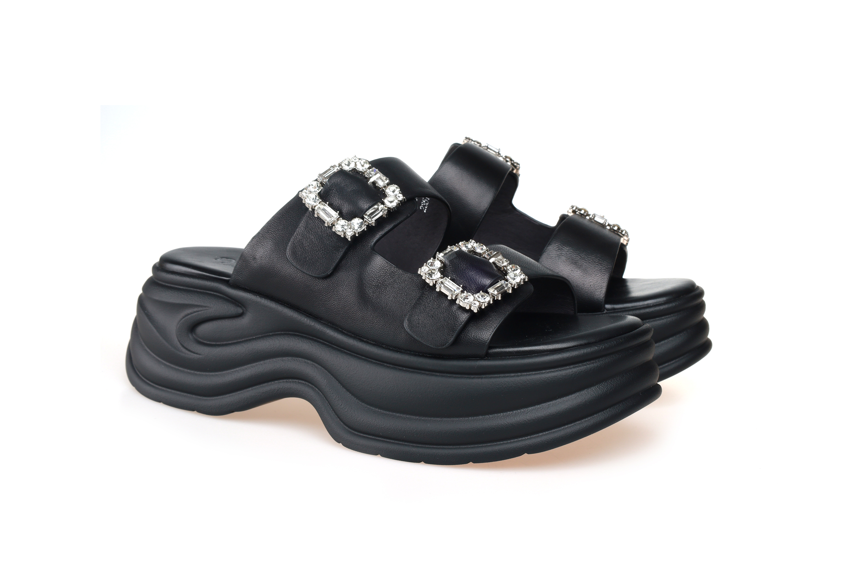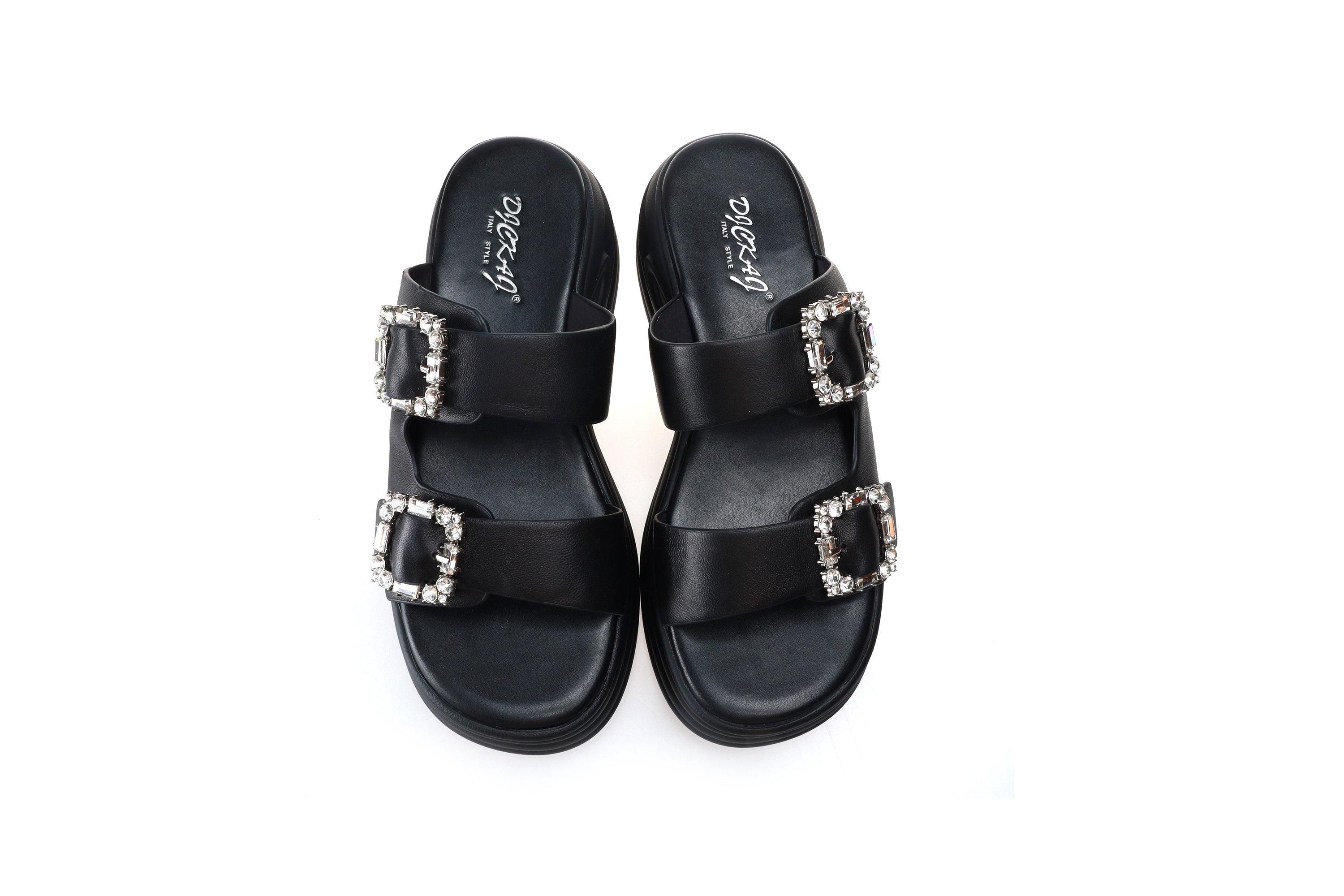 豪麟名鞋奥莱迪嘉女装羊皮革时尚凉拖DJMEO31WL209黑色 原价1660元