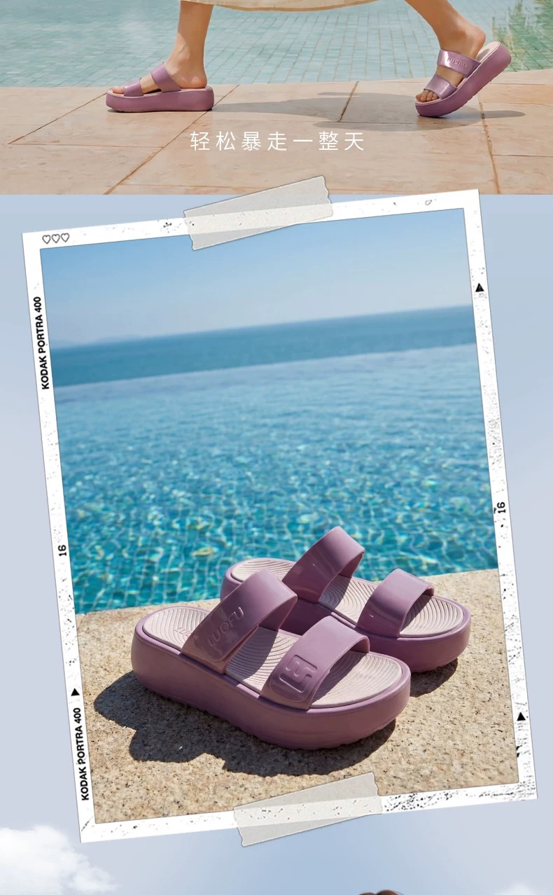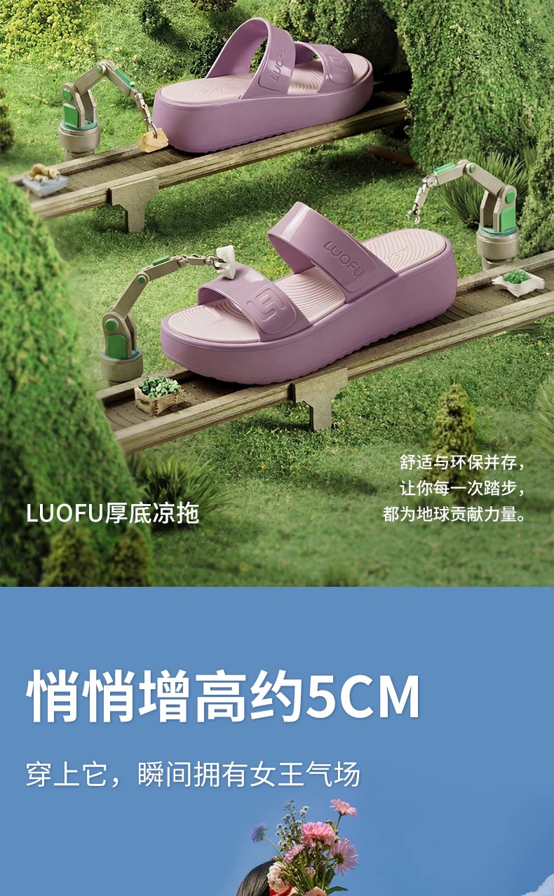 【凉鞋】罗敷凉拖鞋女休闲时尚防滑厚底外穿女士一字拖【E7227】