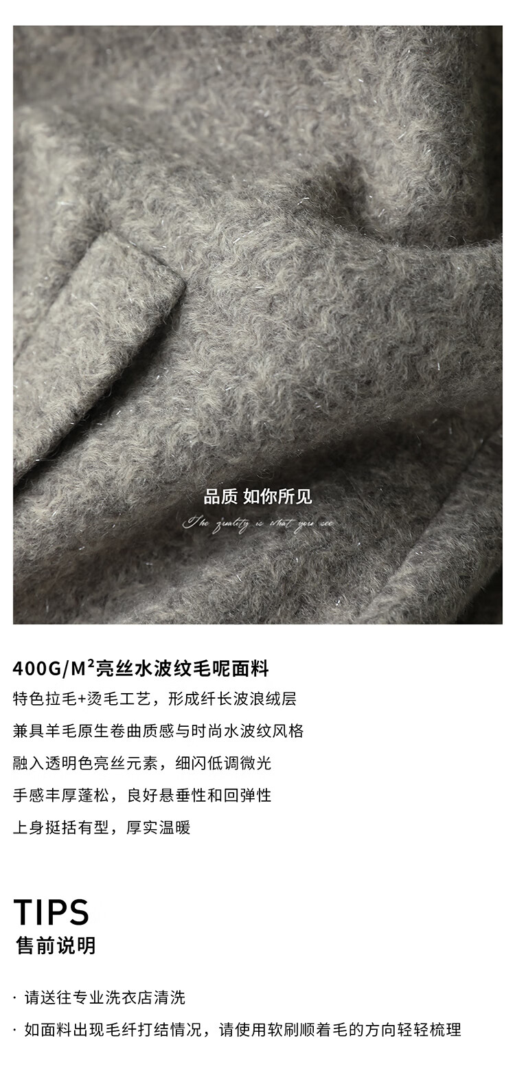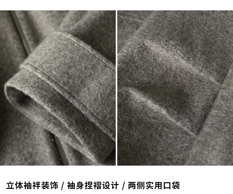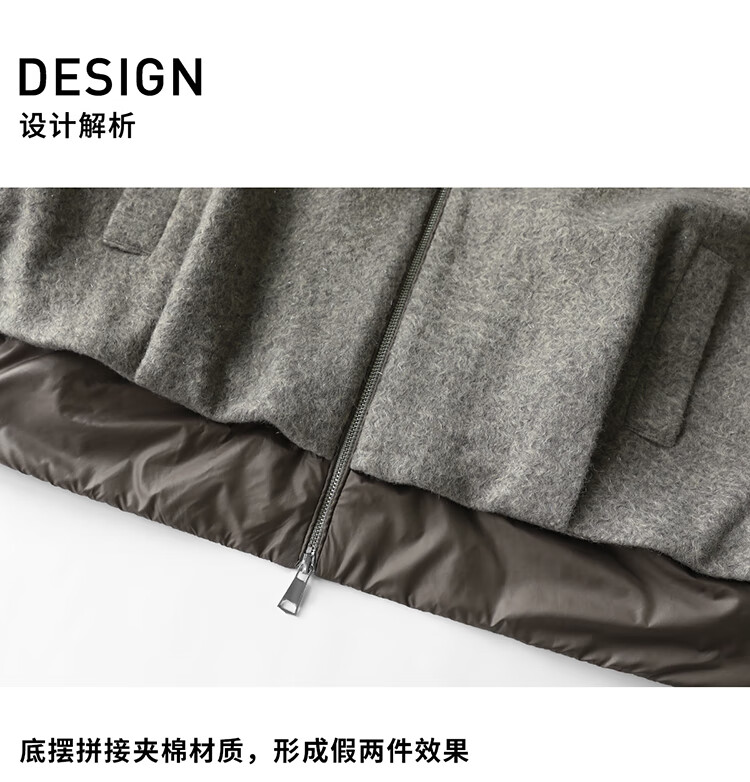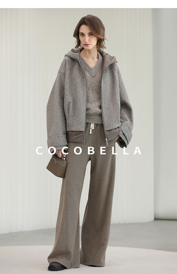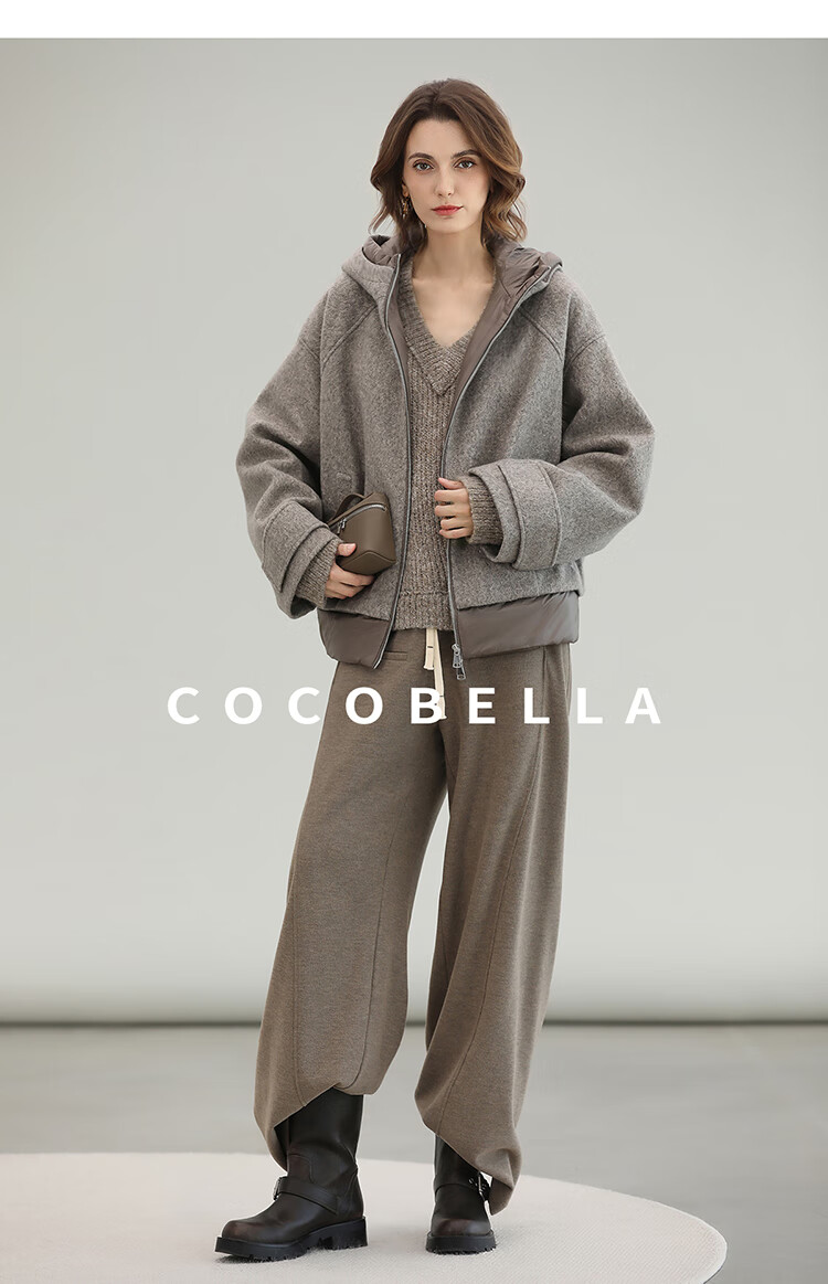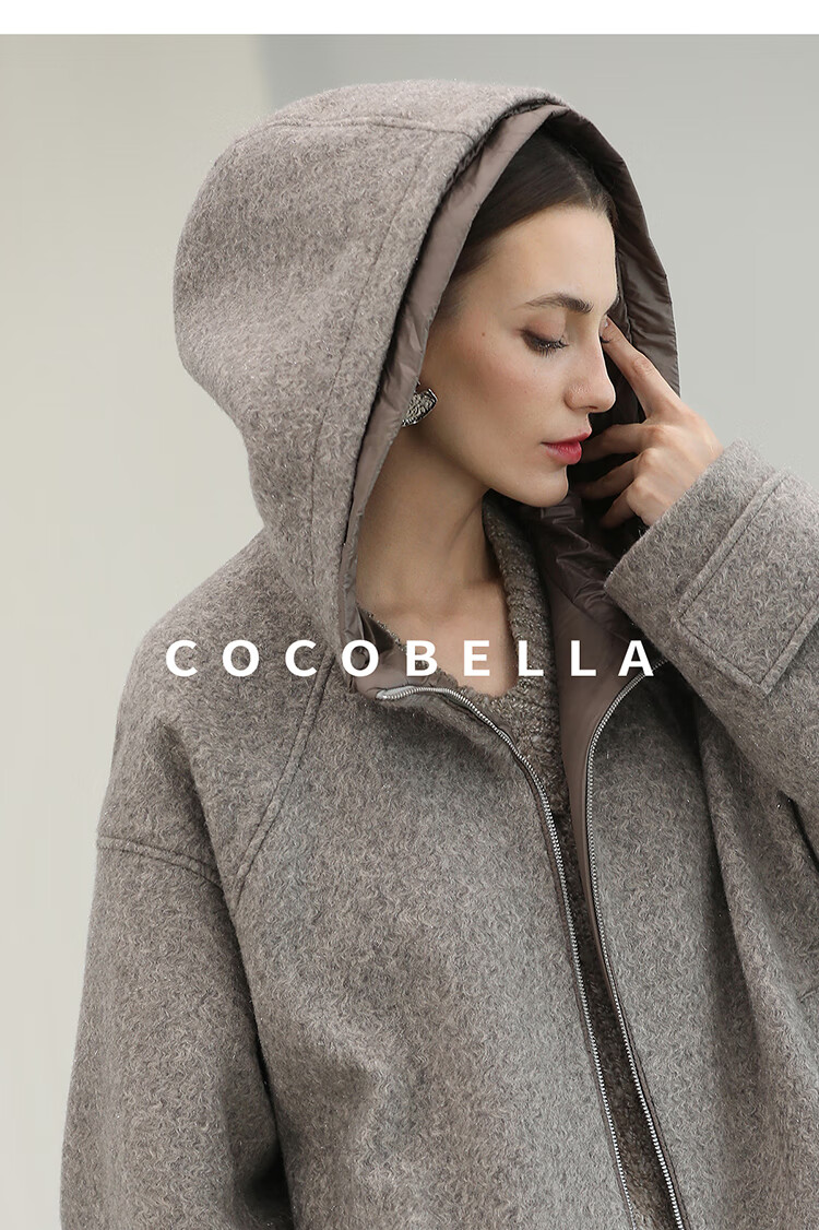 COCOBELLA假两件连帽毛呢外套女秋冬仿水波纹短款呢子大衣WL3205