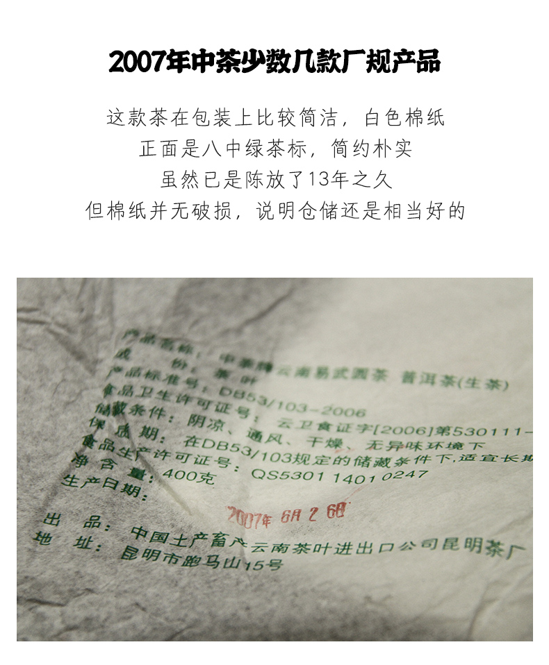 中粮-中茶 2007年易武圆茶(普洱生茶)400克/饼/云南干仓直发