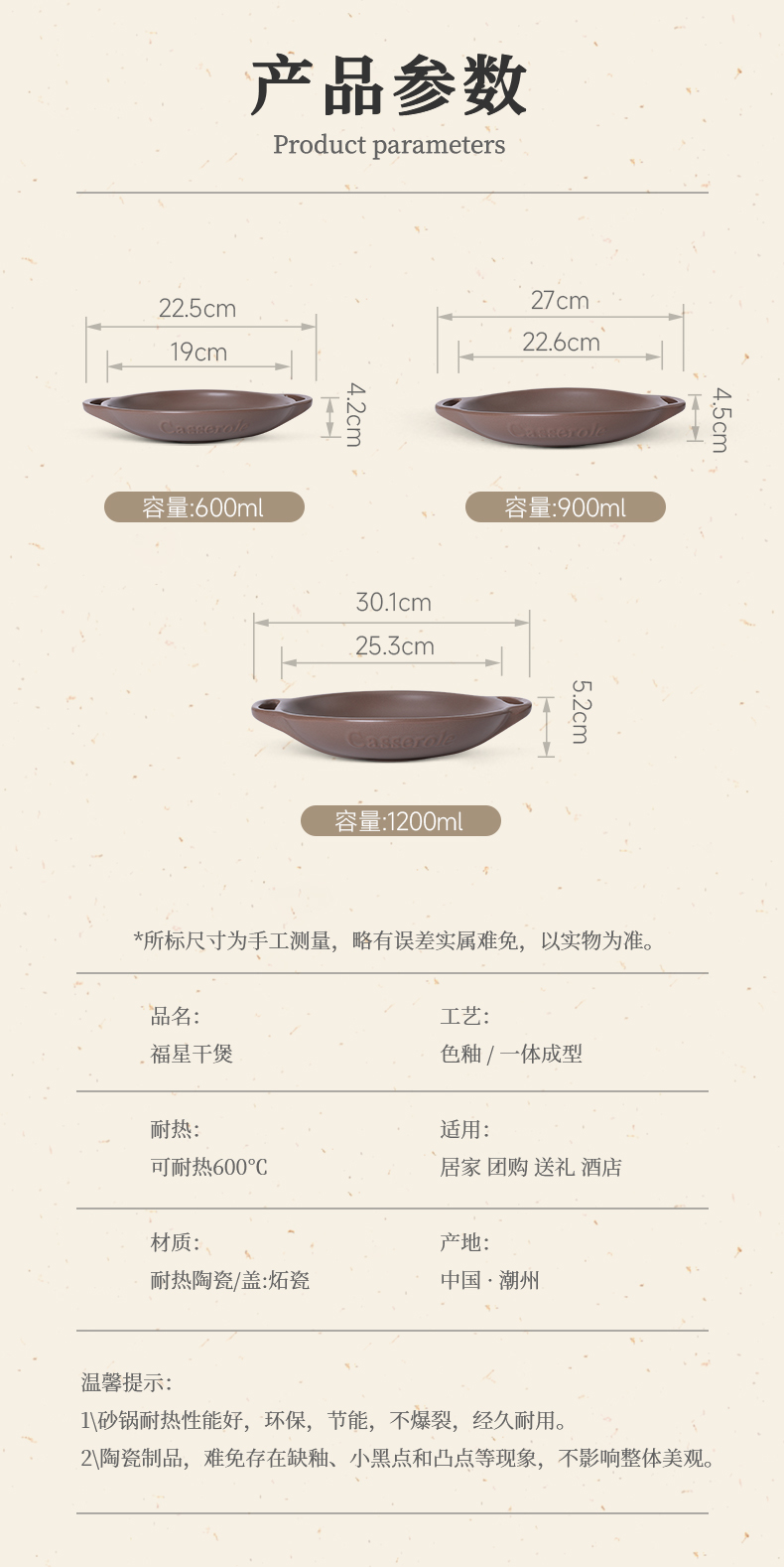 【福星干煲】陶煲王法式福星干煲陶瓷酒精锅耐高温明火干锅锅家用菜锅烤盘