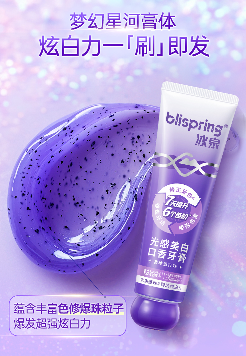 优选丨拍1发7【冰泉光感口香牙膏】专利证书加持 梦幻星河膏体 内含丰富色修因子 深度清洁口腔