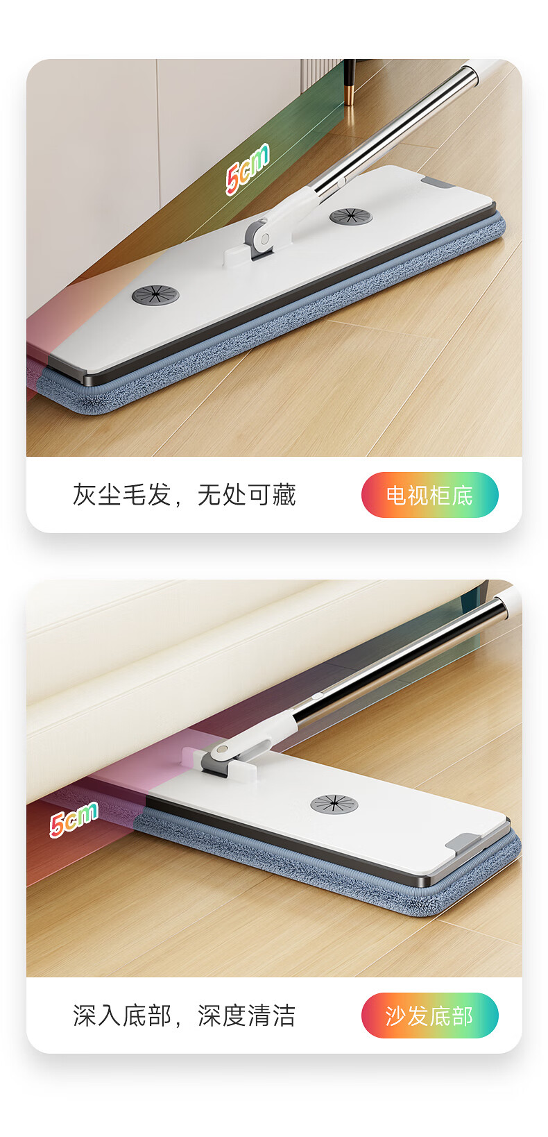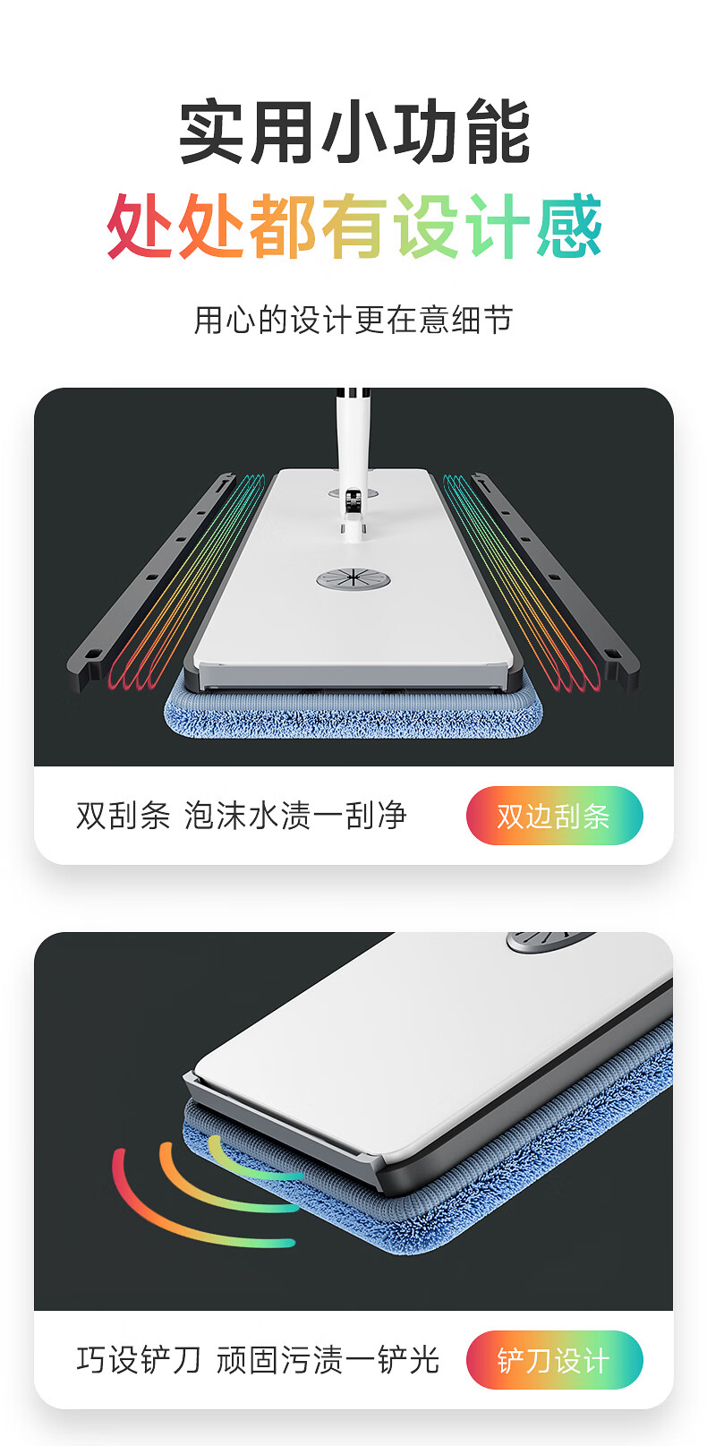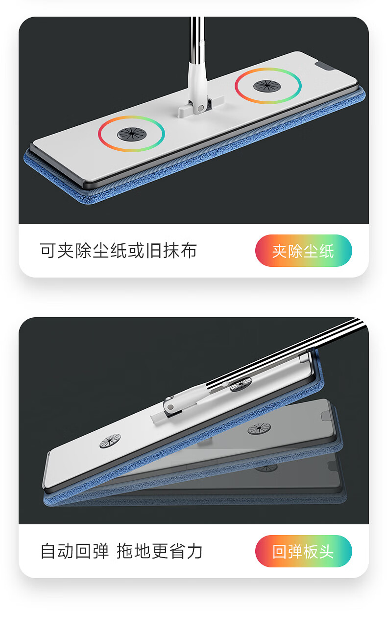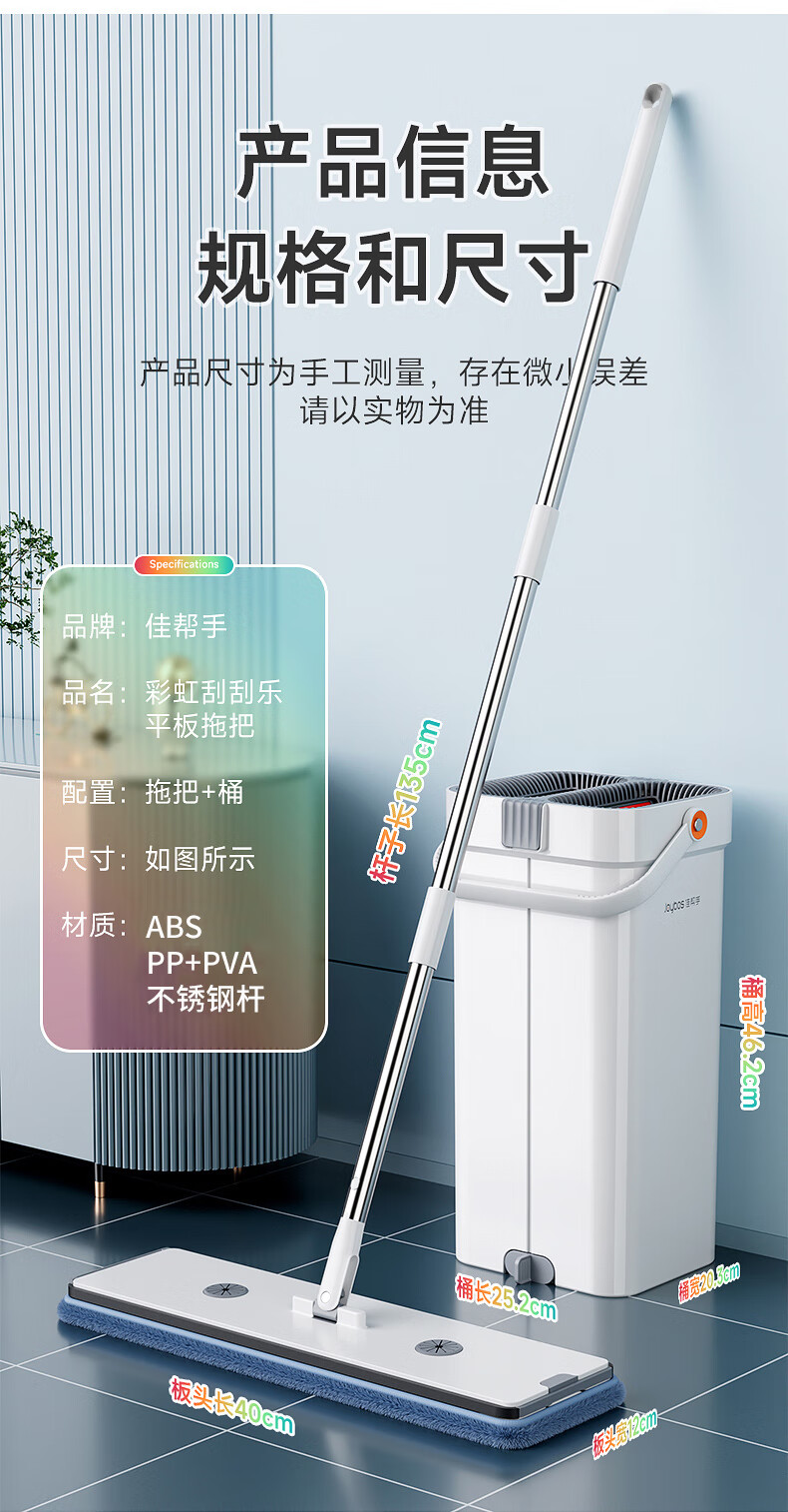 佳帮手 拖把 扫除道方形彩虹刮刮乐塑板标准直柄款-佳灰2布(0.4mm杆)新款JBS-PBTB-GF1S1-4JGY2P