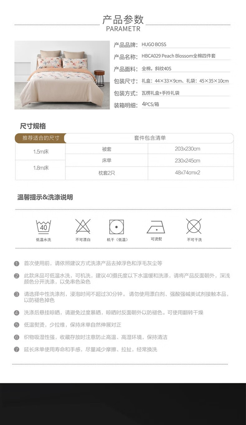 Hugo Boss Peach Blossom 全棉四件套 203×230cm