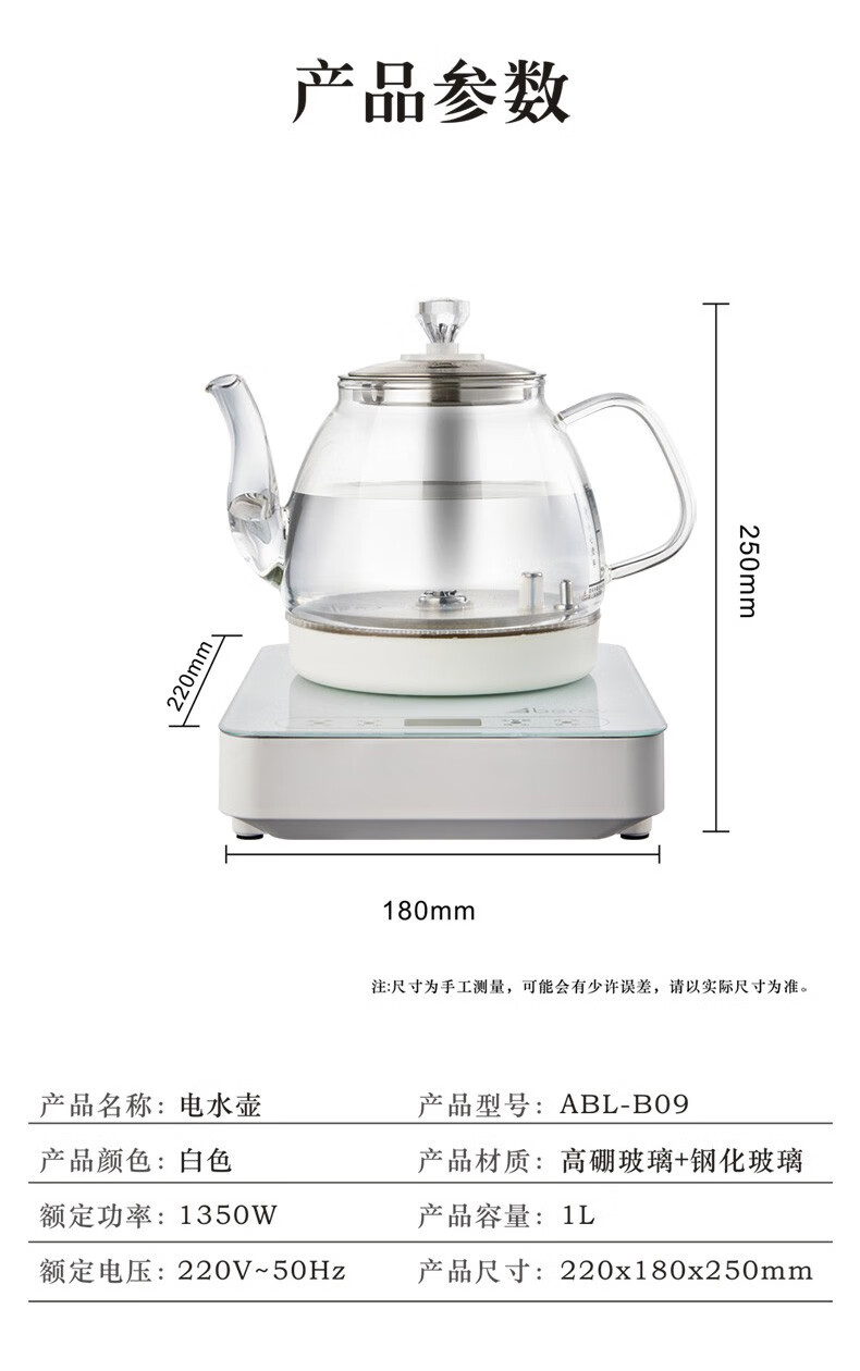 艾贝丽(Abereve)电水壶 1350W大功率烧水壶ABL-B09