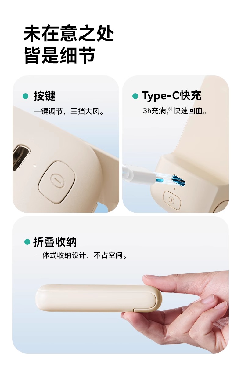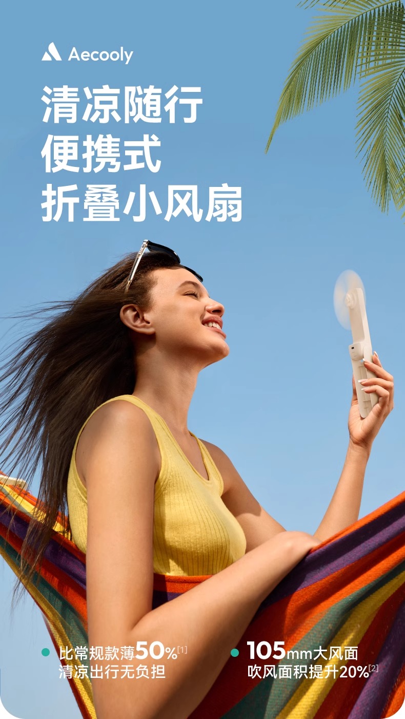 严选 | Aecooly艾酷力手持折叠风扇 超强续航 三挡风速 随心切换