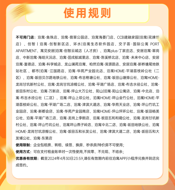 1元抢购100元租金券【已租不能用、同住人不能用】