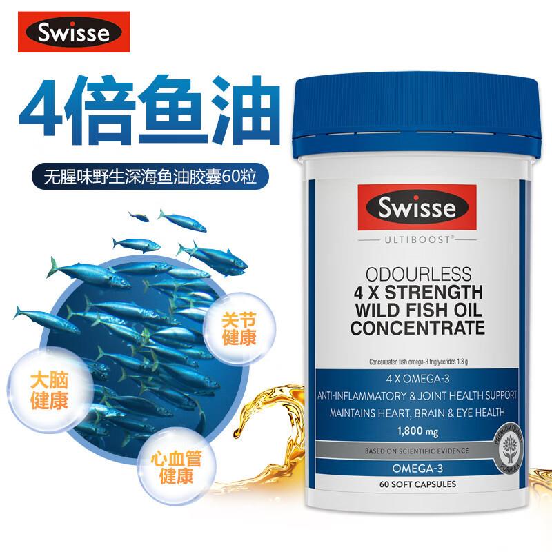 【保税仓】Swisse四倍浓缩深海鱼油胶囊60粒1800mg