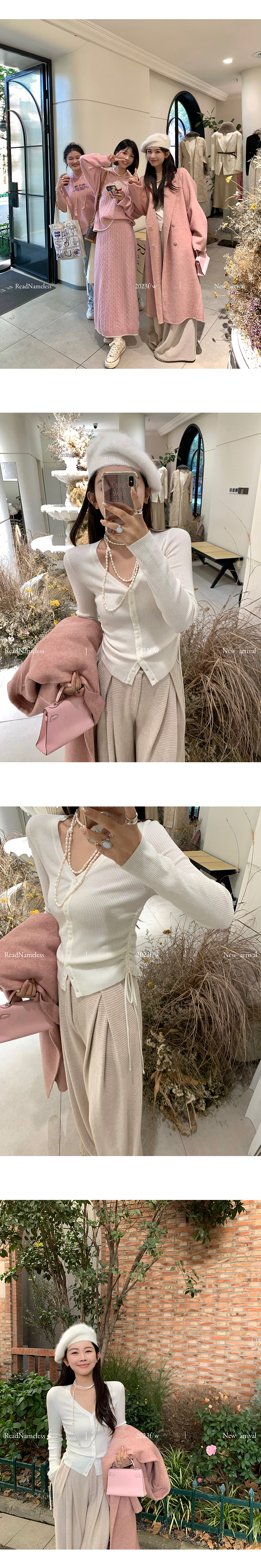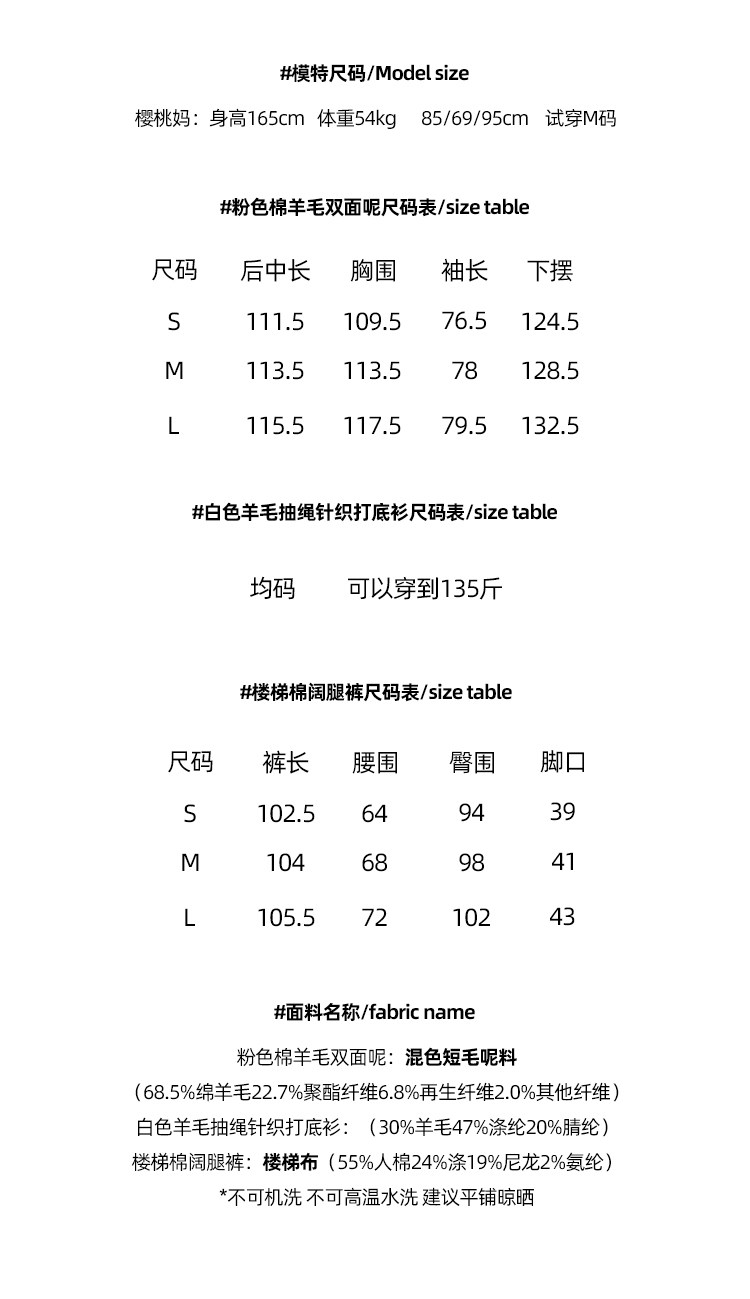 Read Nameless /粉色棉羊毛双面呢+白色羊毛抽绳针织打底衫+楼梯棉杏色阔腿裤