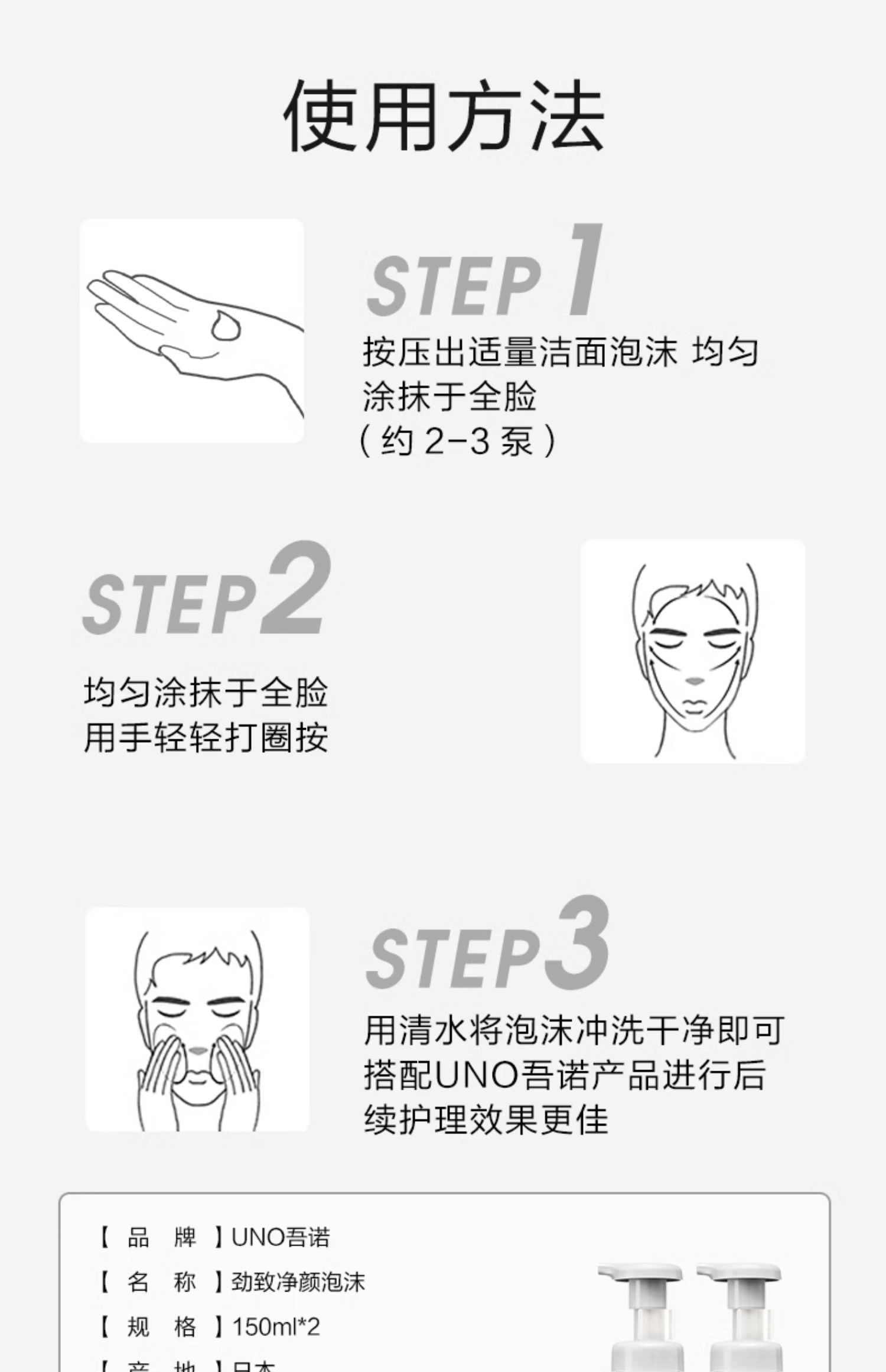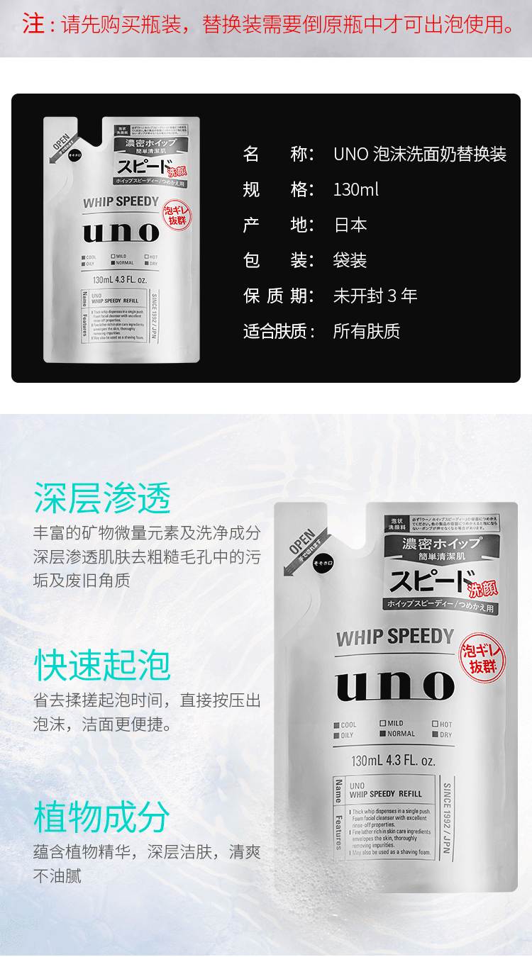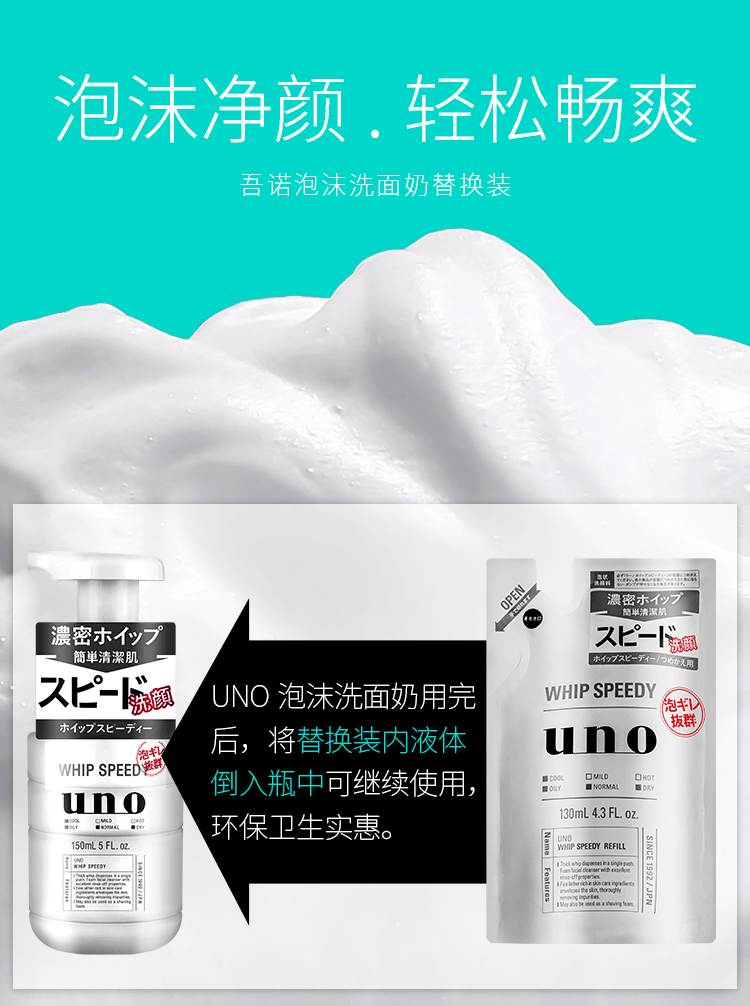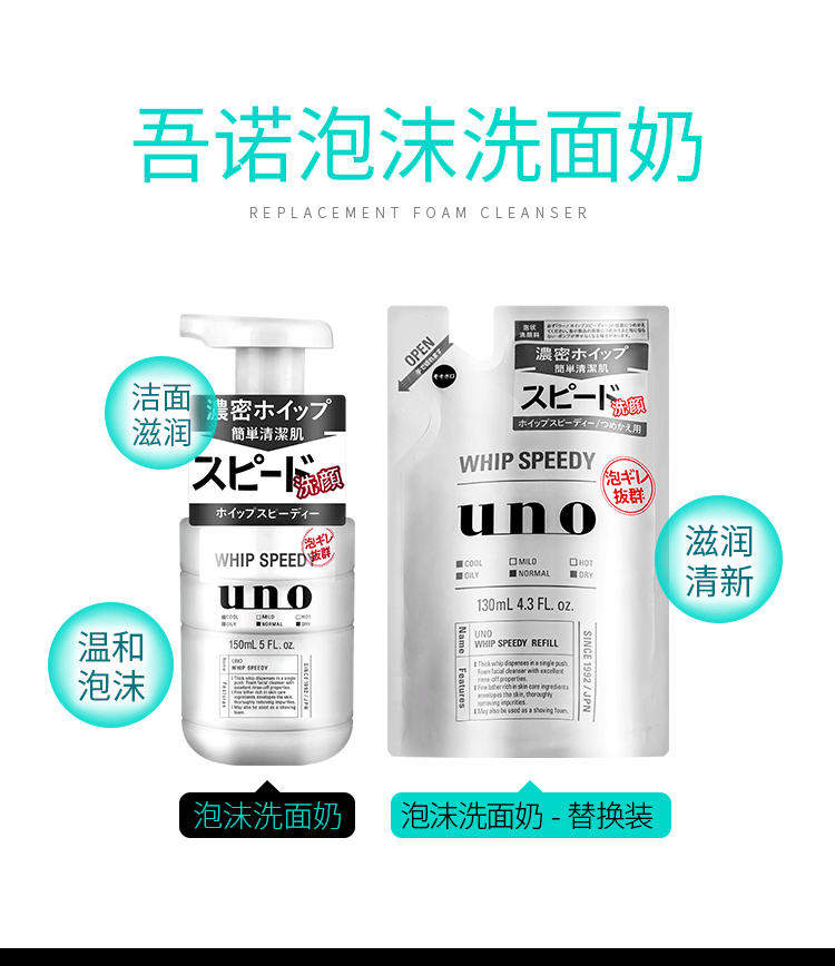 UNO 吾诺 男士泡沫洁面150ml/替换装130ml