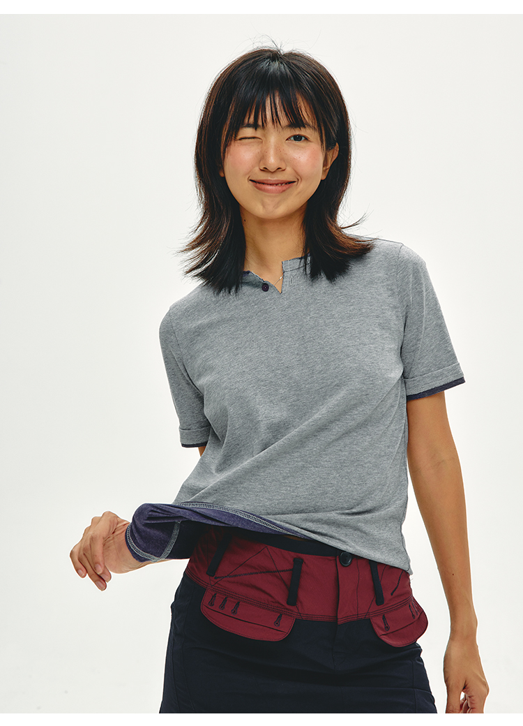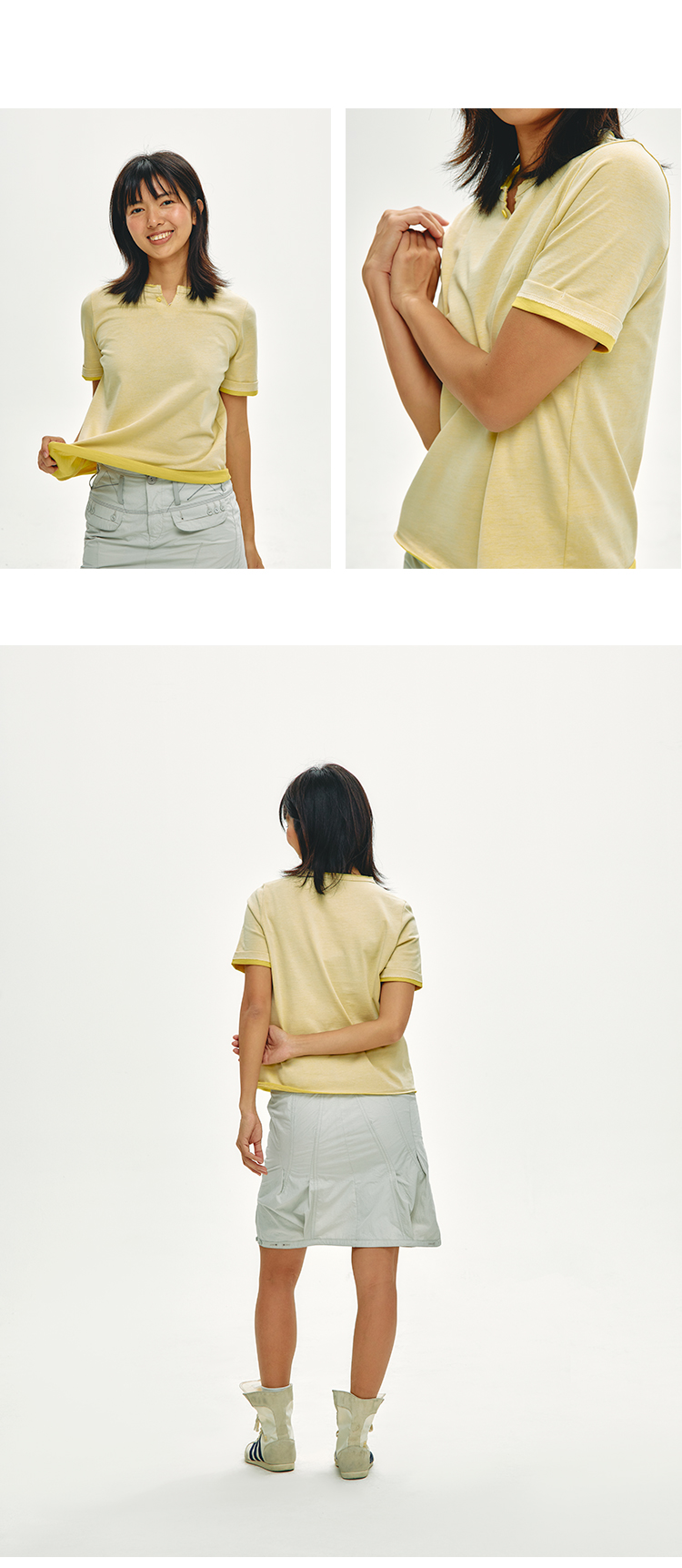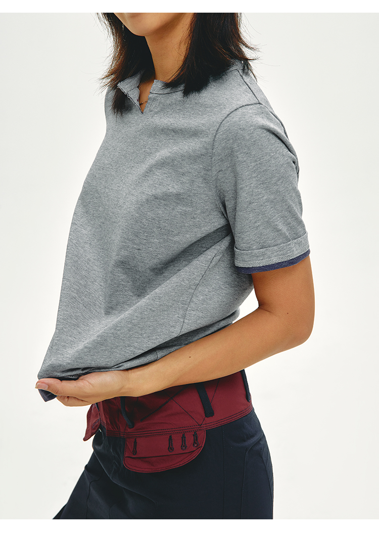 CryingCenter 小v领方块双色卷边短袖tee 哭喊中心