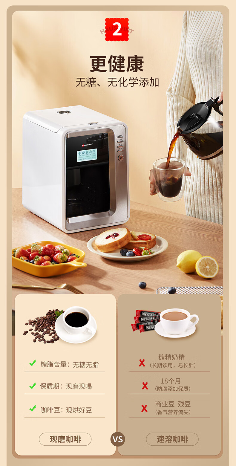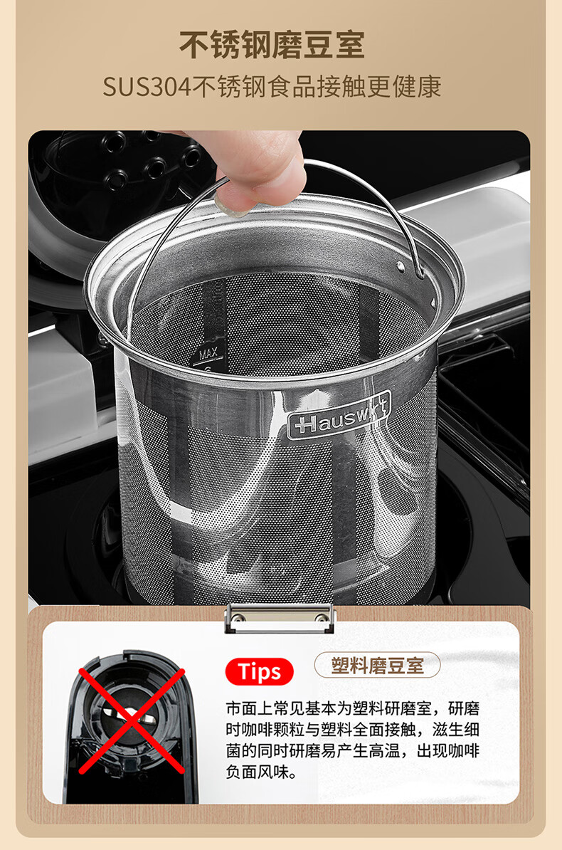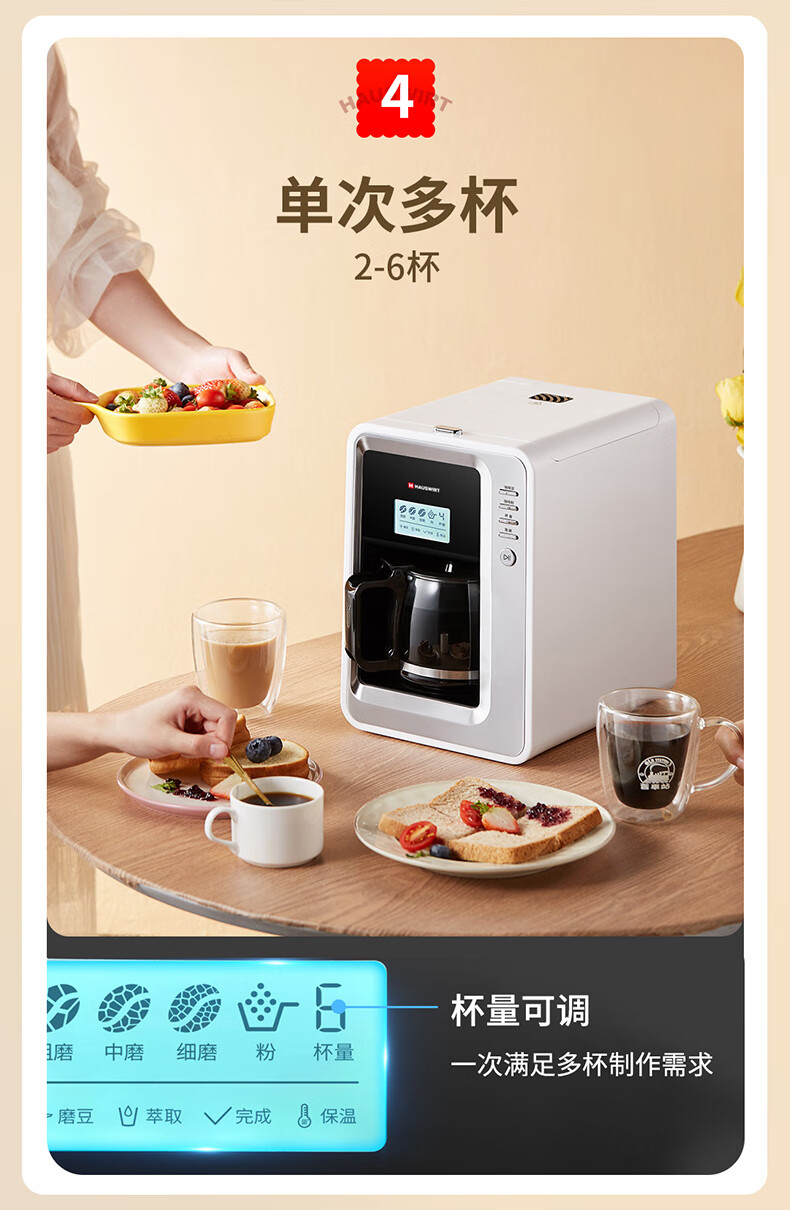 海氏(Hauswirt)全自动美式咖啡机豆粉一体适合办公室家用带咖啡壶HC-66 心选到家