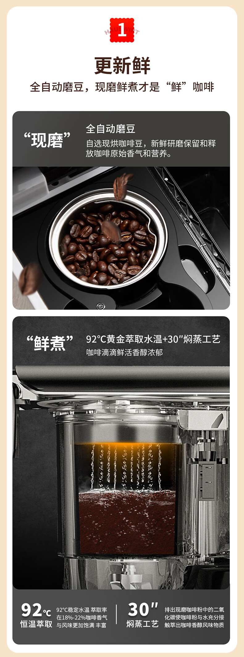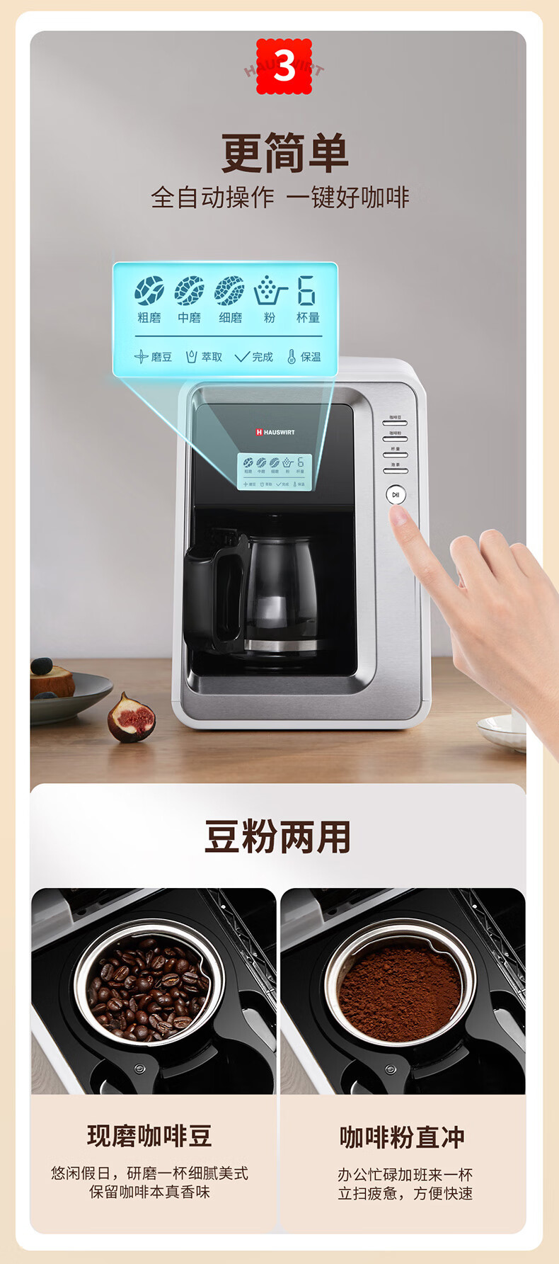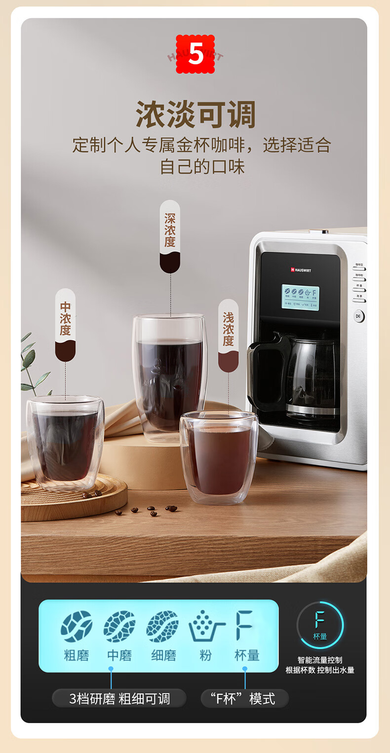海氏(Hauswirt)全自动美式咖啡机豆粉一体适合办公室家用带咖啡壶HC-66 心选到家