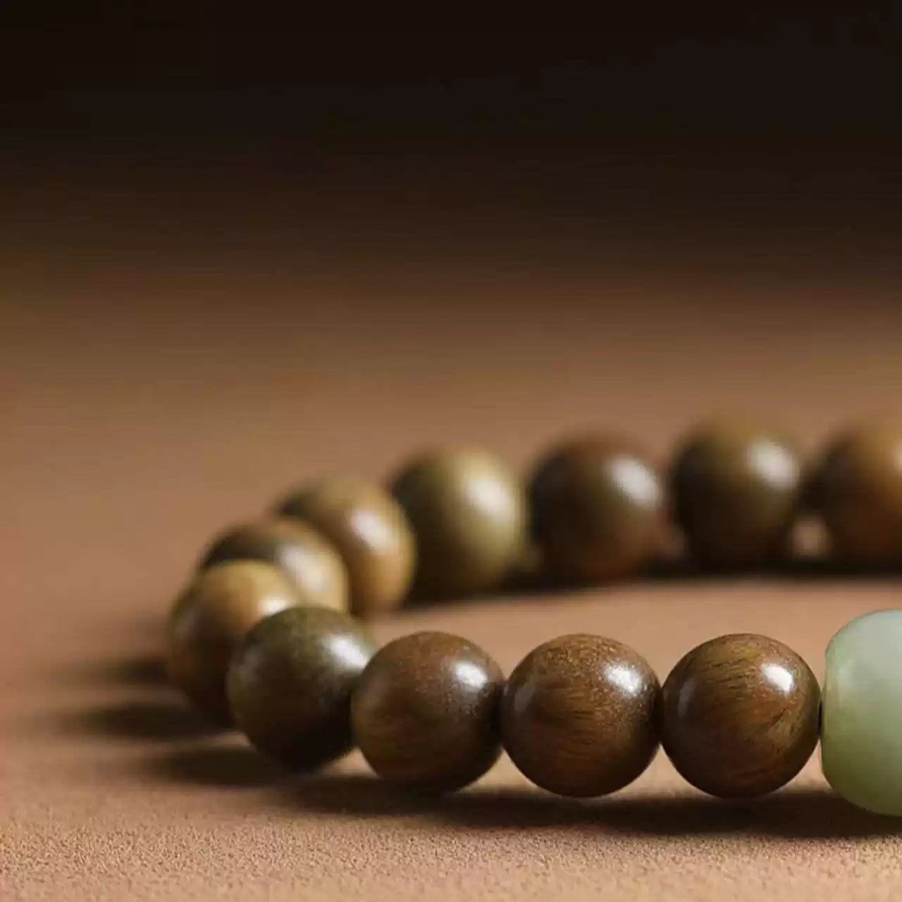 【品名】渡舟·绿檀木东陵玉单圈手串