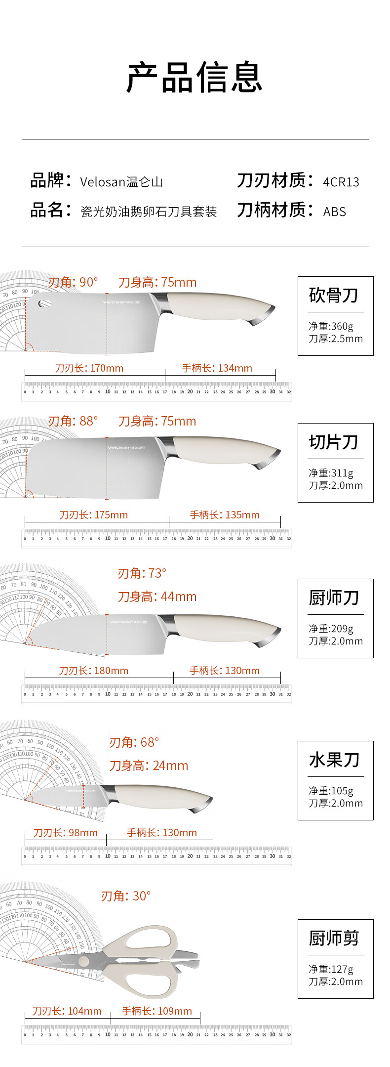 Velosan温仑山瓷光奶油刀具套装六件套-VE075