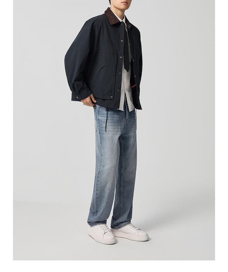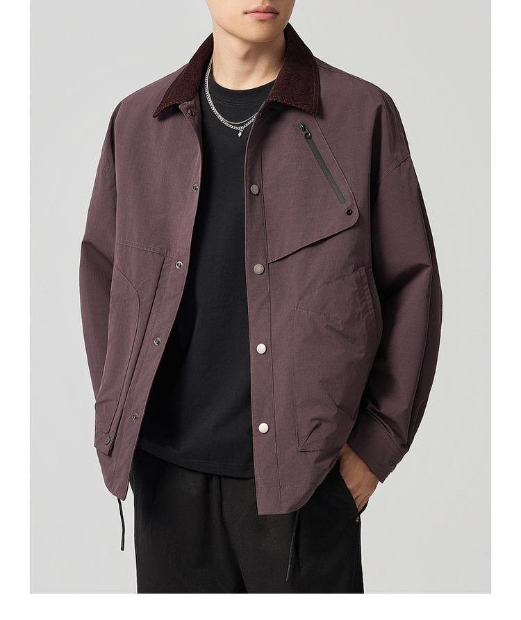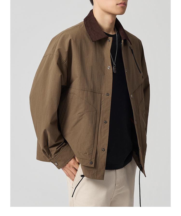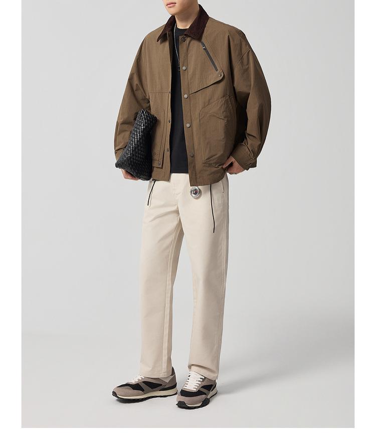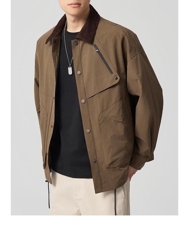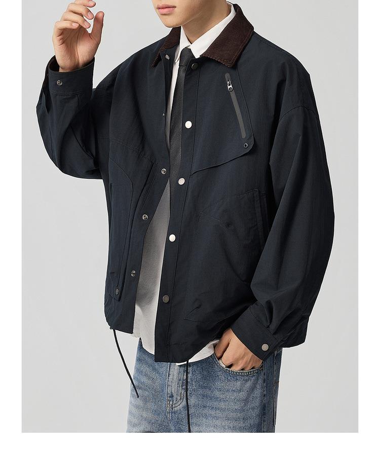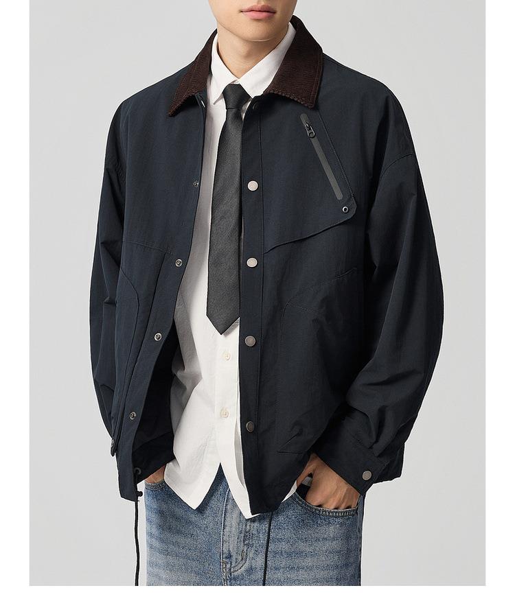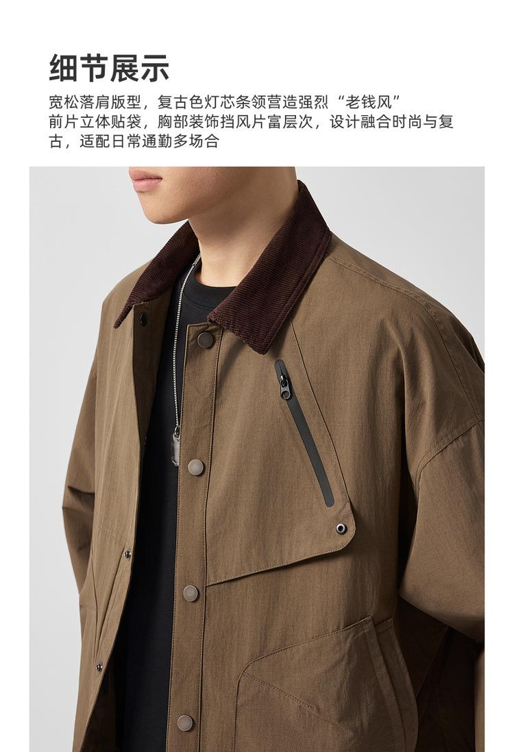 【老钱风翻领外套】男2025秋新款复古撞色休闲夹克男81388