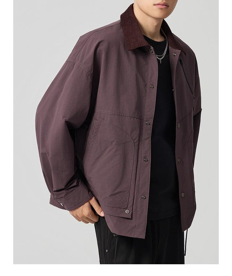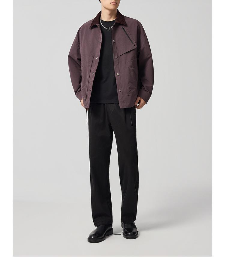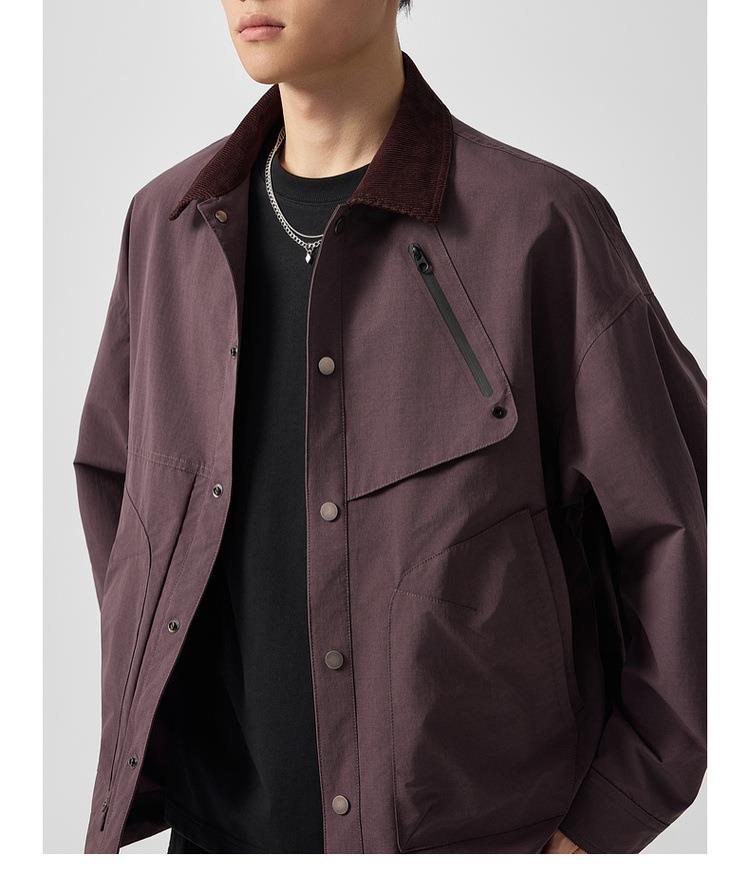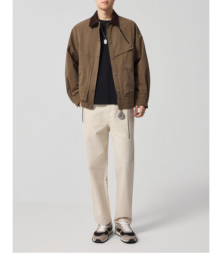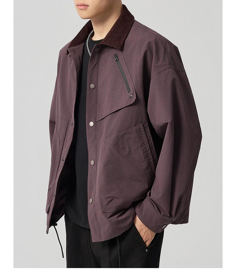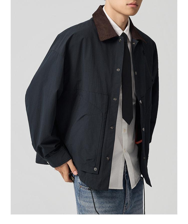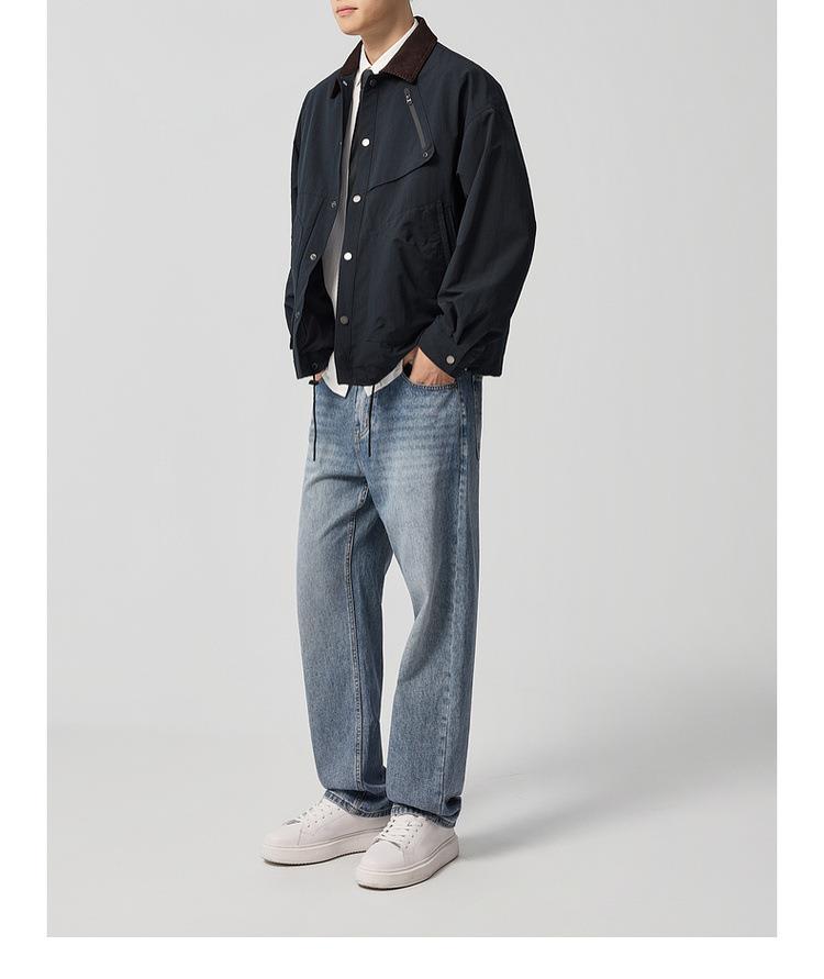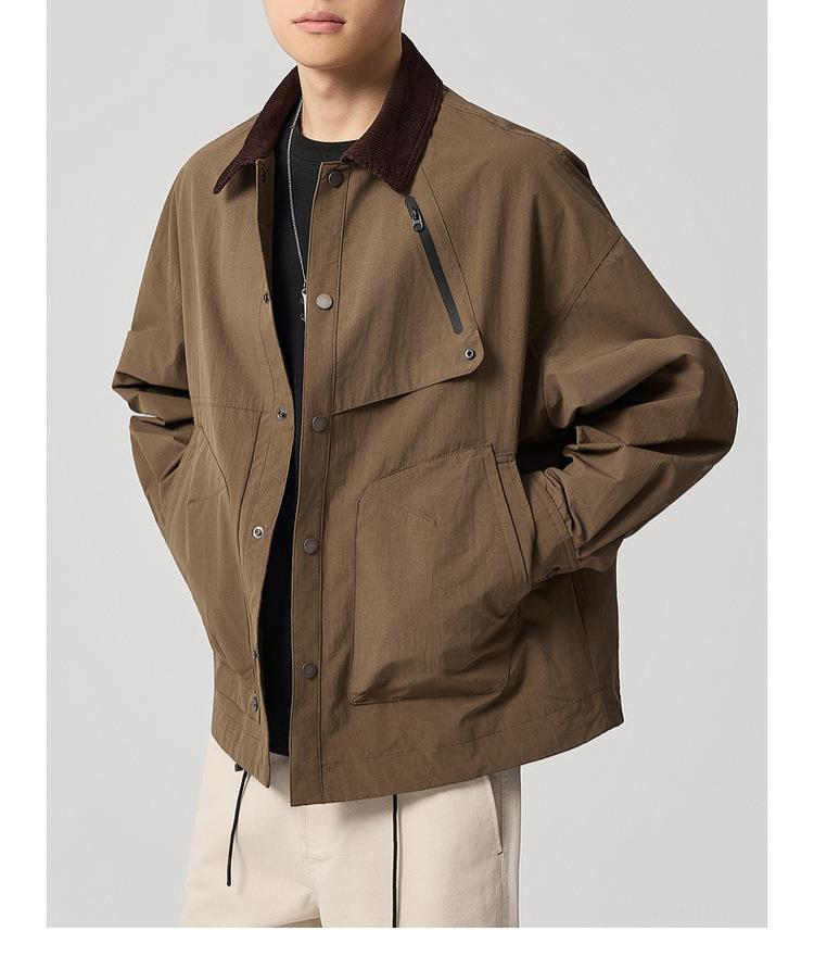 【老钱风翻领外套】男2025秋新款复古撞色休闲夹克男81388