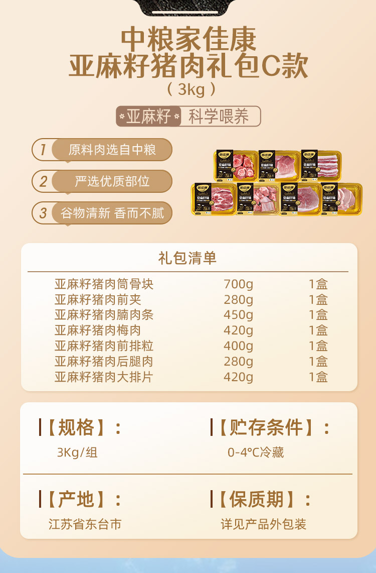 中粮家佳康亚 麻籽猪肉锦上添花礼包3000g【实物/礼券】