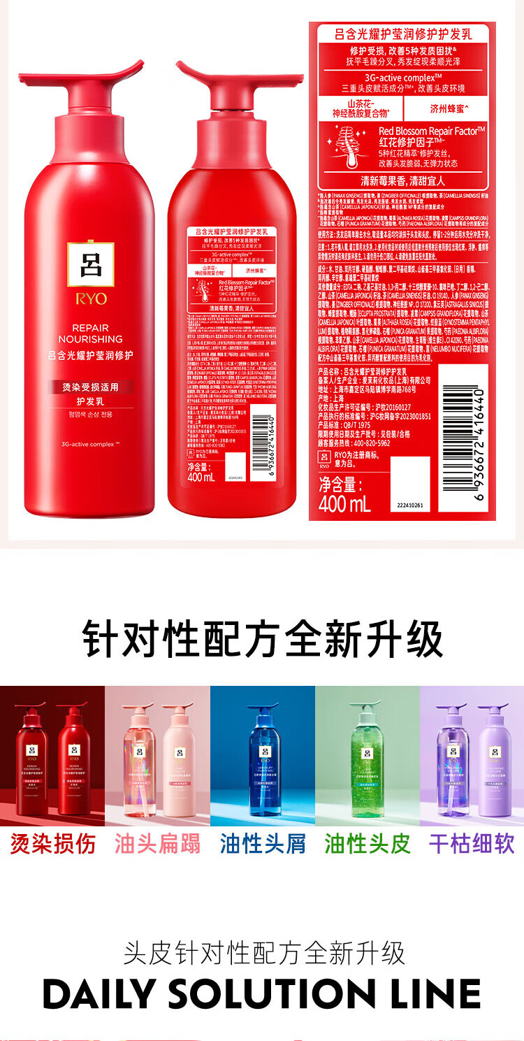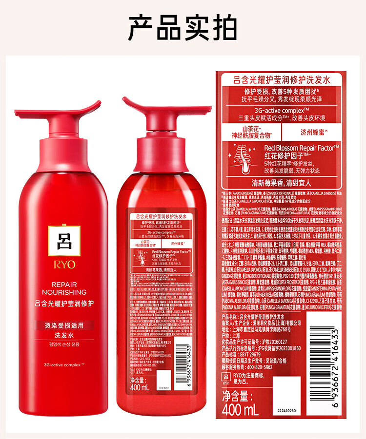 Ryo吕 新升级 含光耀护营润修护红吕洗发水 400ml/瓶