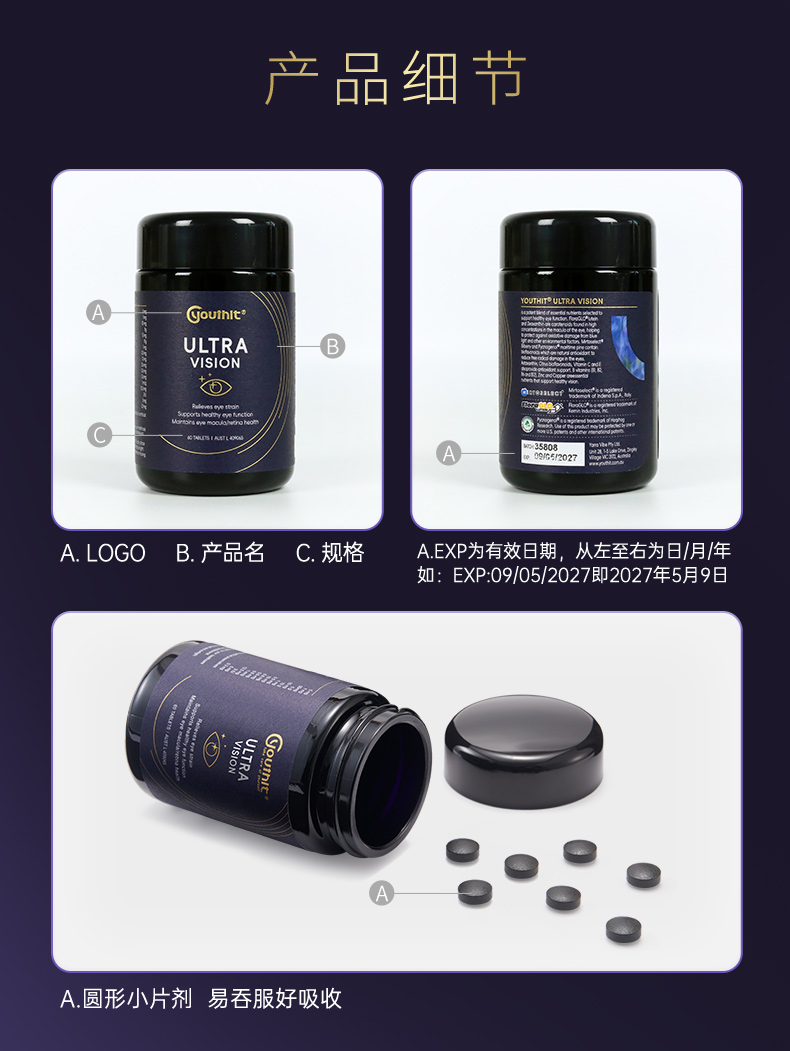 【玫瑰专享2】澳洲进口Youthit优思益黑曜石高端复合护眼片专利叶黄素成人
