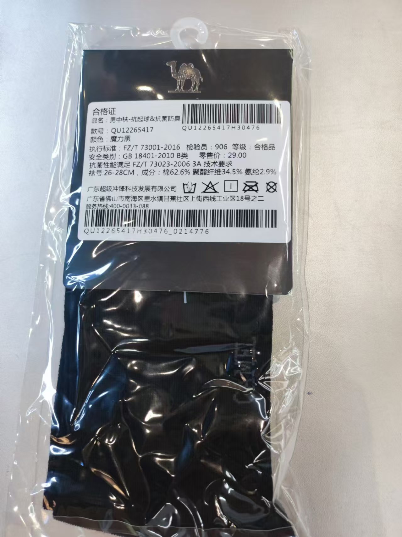 骆驼棉袜子男中帮不臭脚 抗菌防臭抗起球