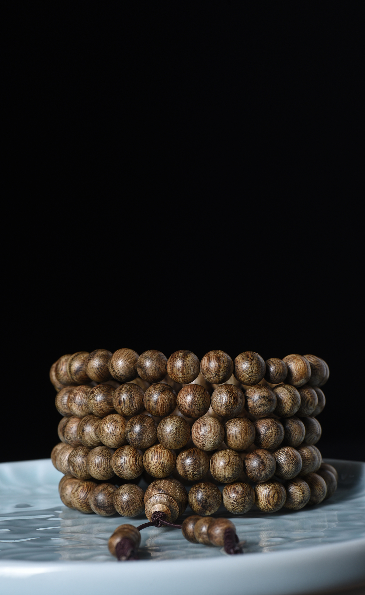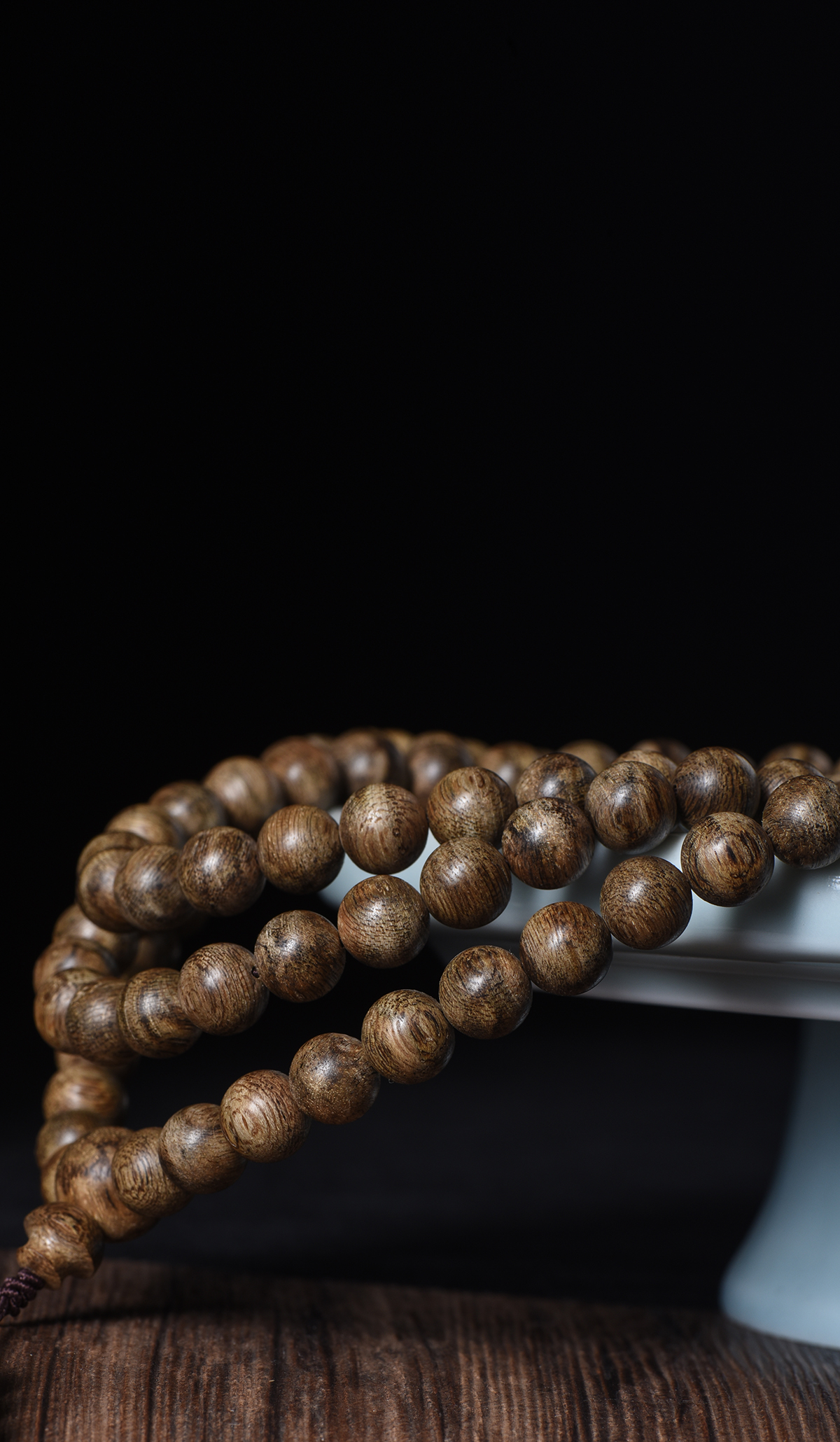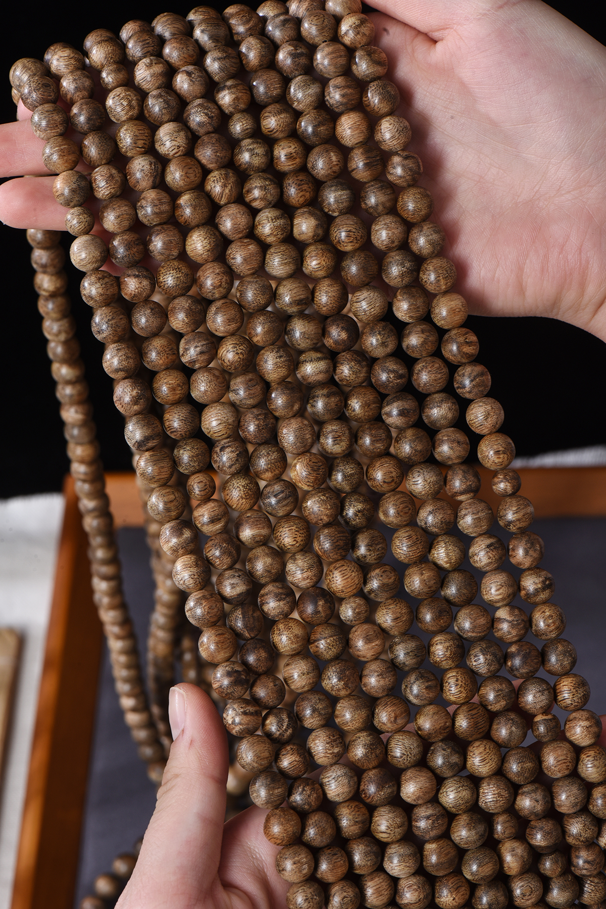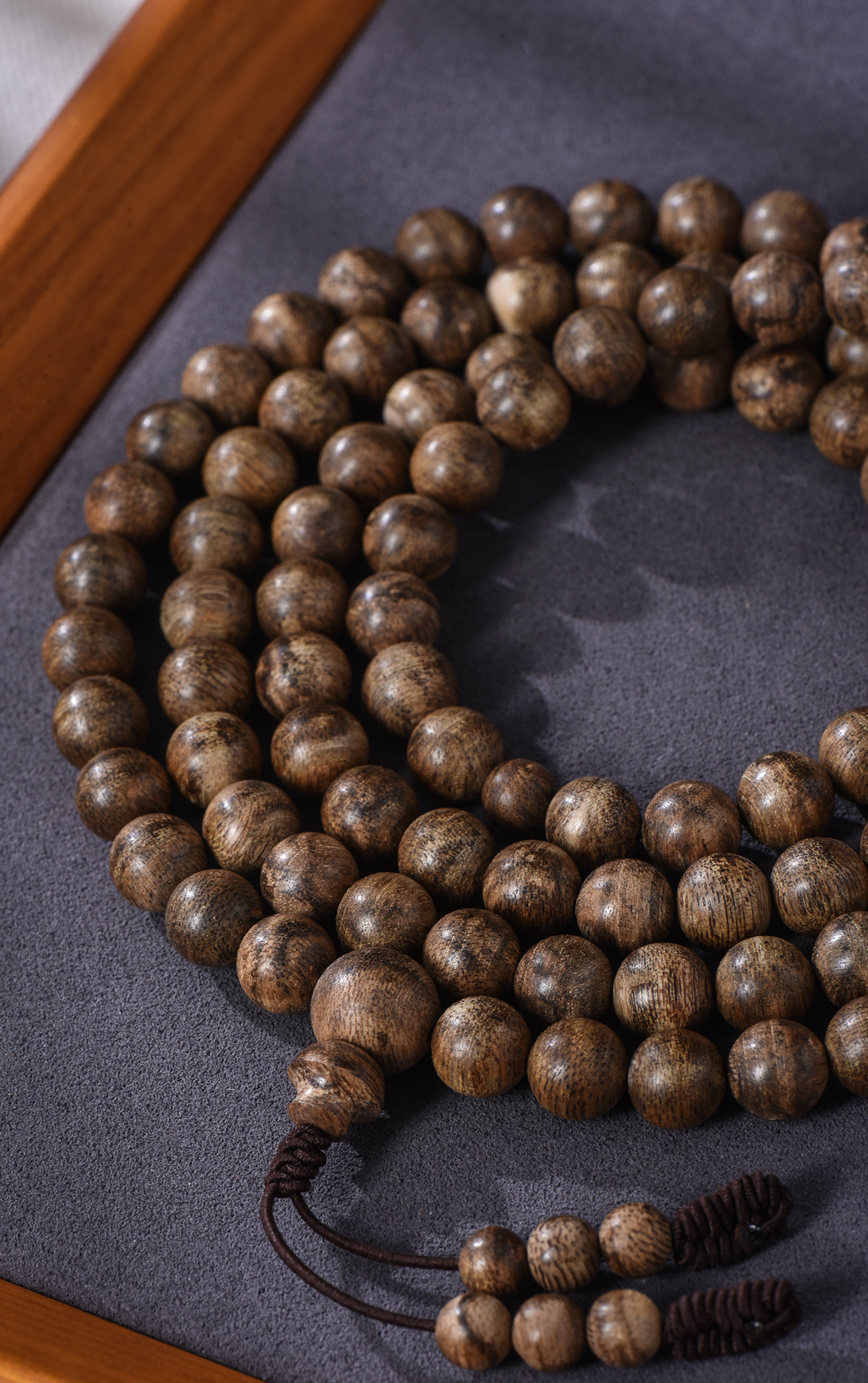 9mm 的珠子,深棕底色交织着天然油脂纹理,上手就是高级感!