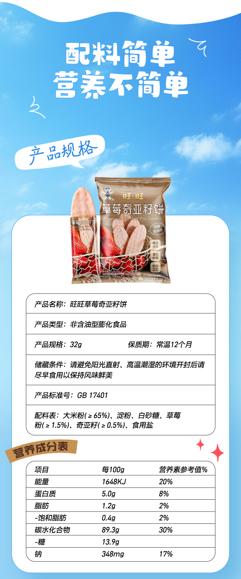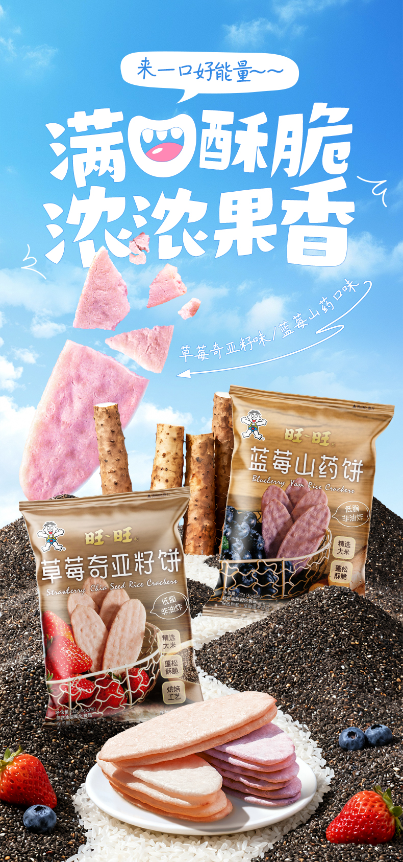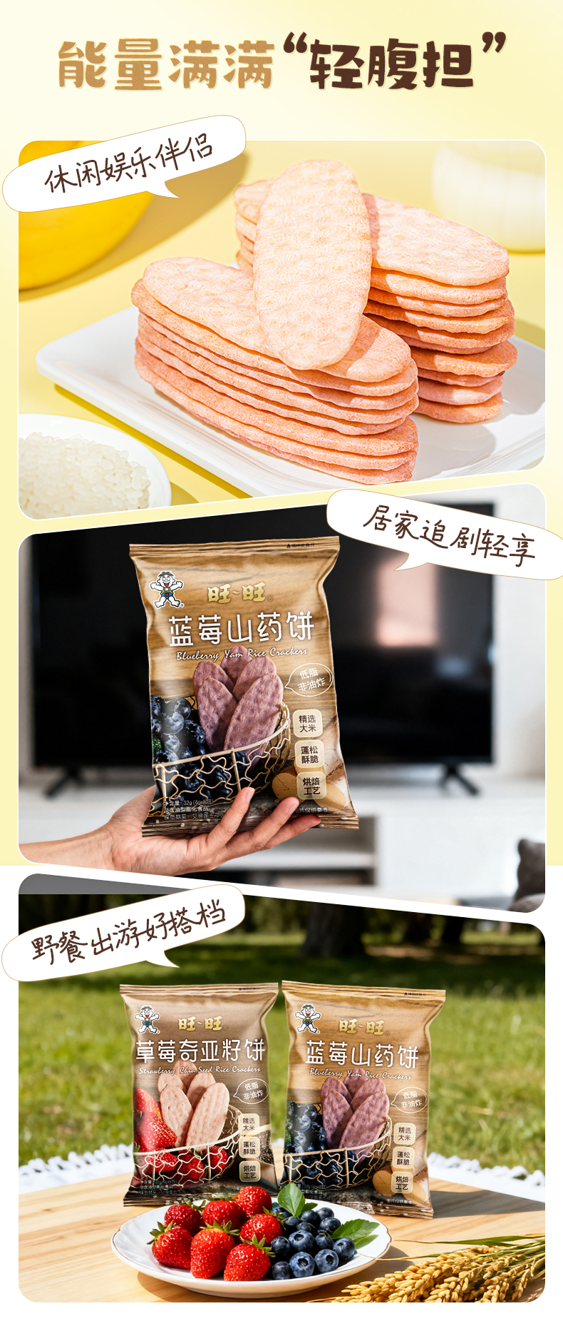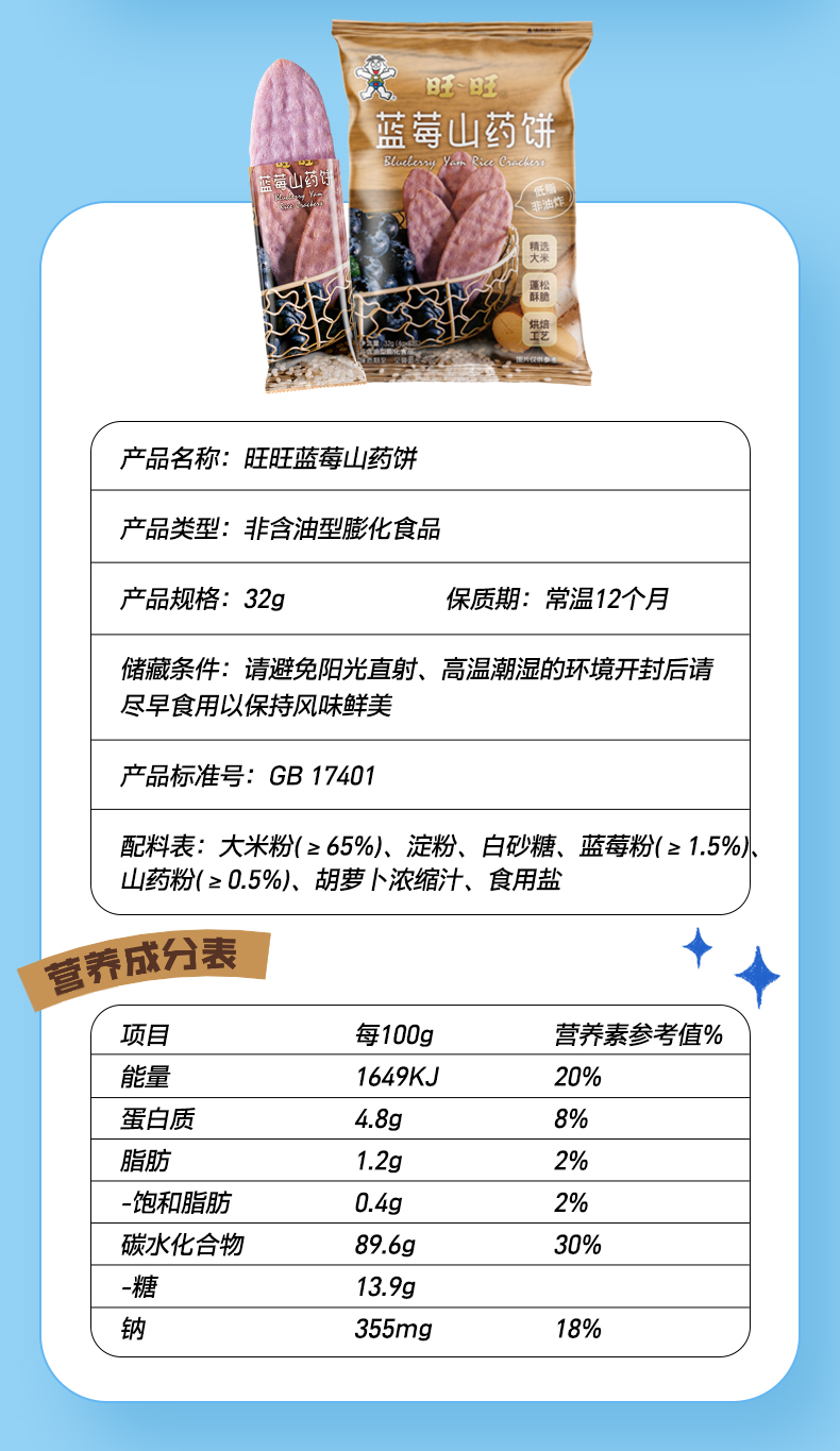 旺旺 低脂非油炸 草莓奇亚籽饼蓝莓山药饼32g