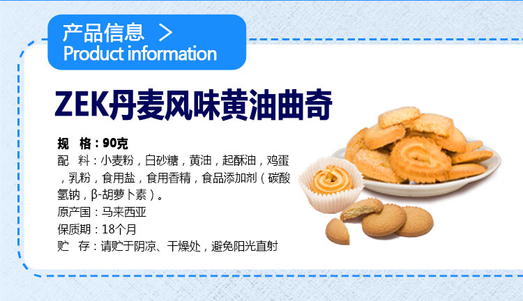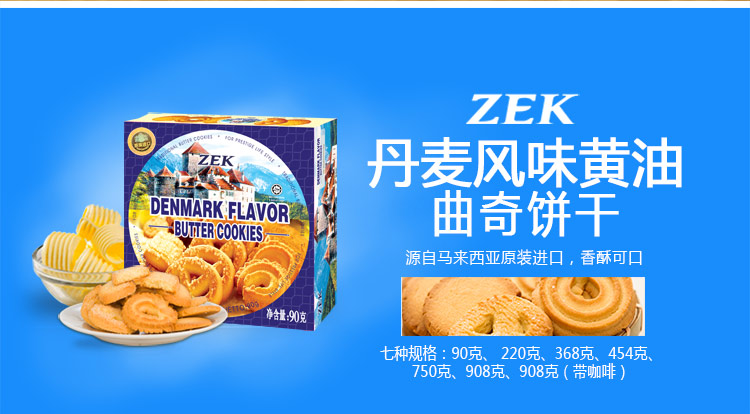 ZEK 丹麦风味葡萄干黄油曲奇饼干90g*4盒